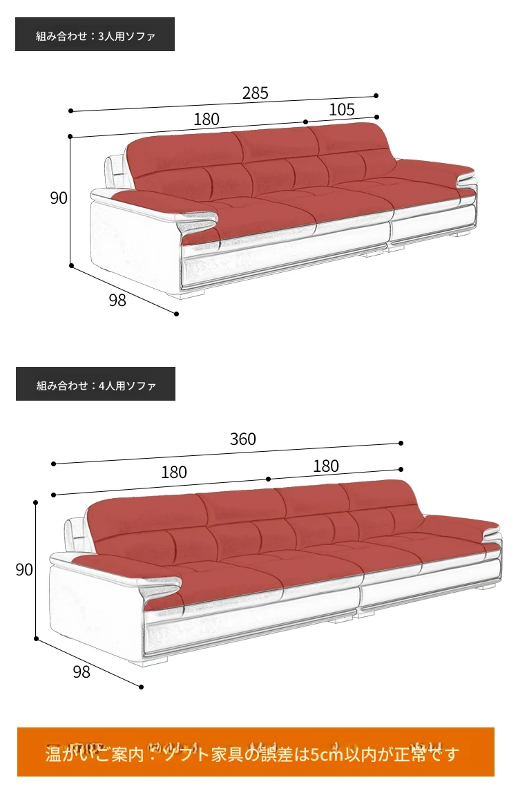 ダブルアームシングル+ダブル+3人掛け【輸入牛革】