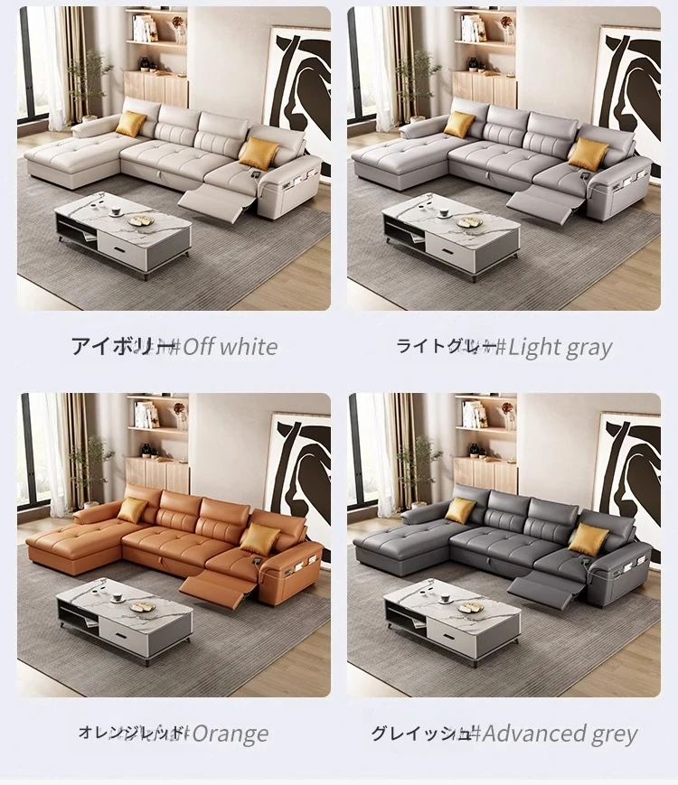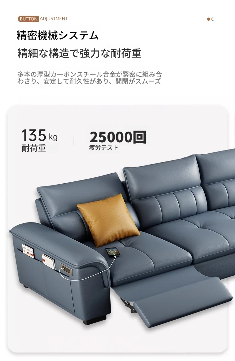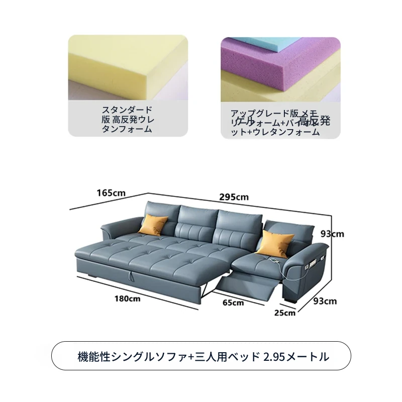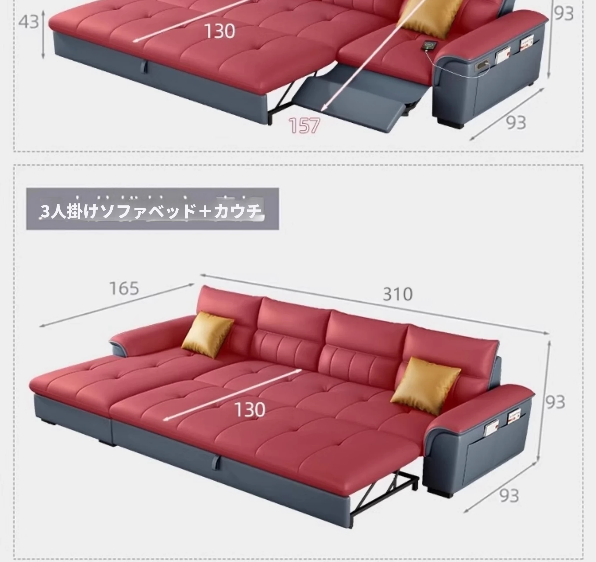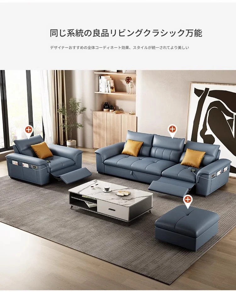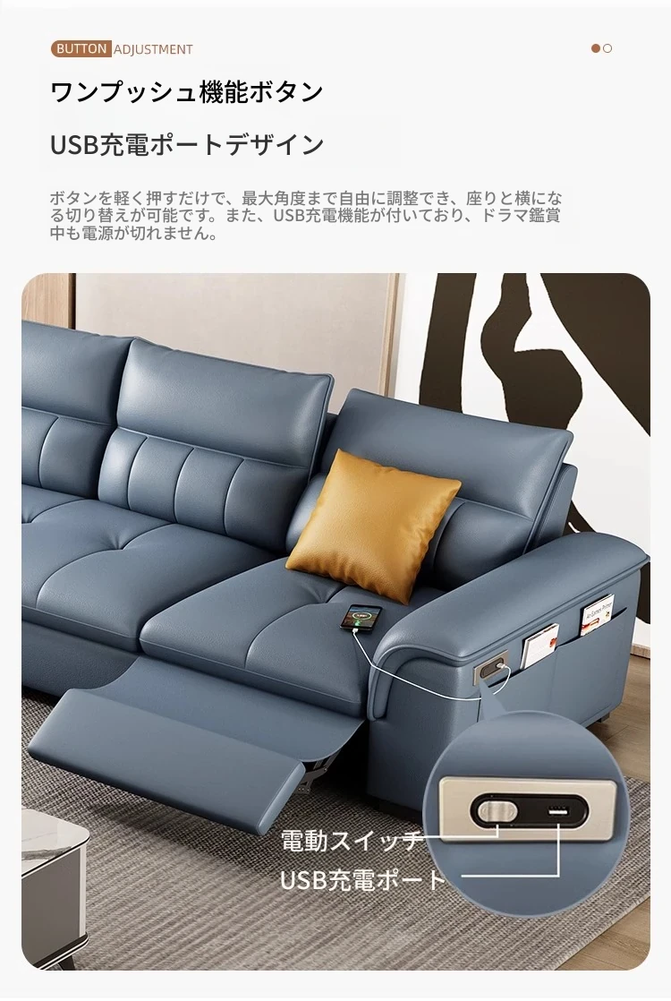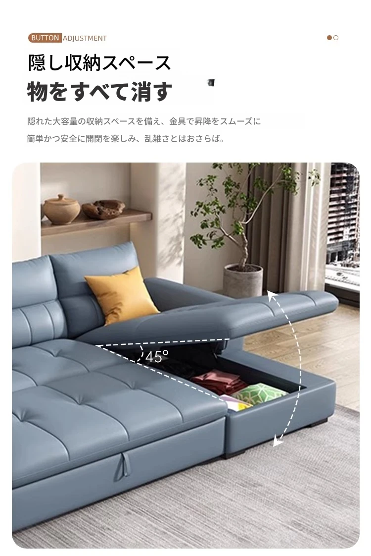 壁に寄り添う高級本革電動多機能ソファベッド - モダン&シンプルデザイン、折りたたみ収納機能付きでお部屋をスッキリ!リビングに最適な2WAYソファです。