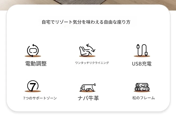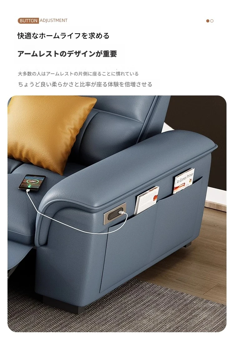 イタリアンスタイルの小象耳ソファ - コンパクトなお部屋に最適!広々とした座面とリクライニング機能、電動操作で自由自在にリラックス。高級本革使用で、優雅なひとときをお楽しみください。