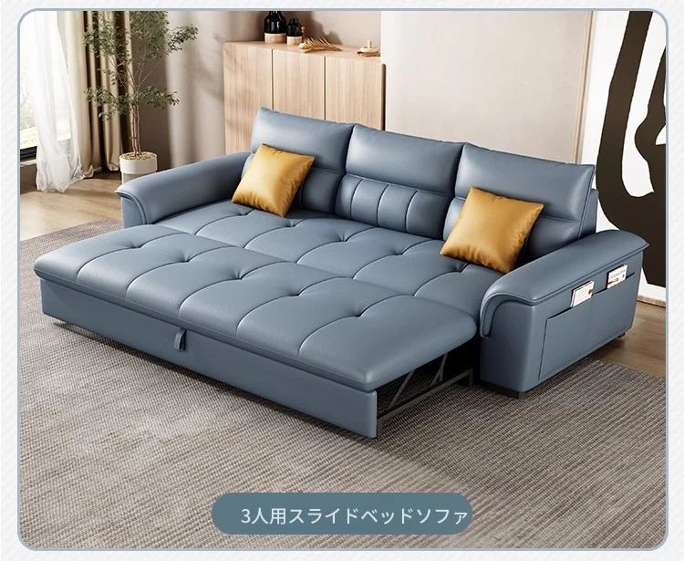 多機能小型リビング用直置きソファベッド|オフィスにも最適!高級本革使用の3人掛けソファで快適な空間を実現!
