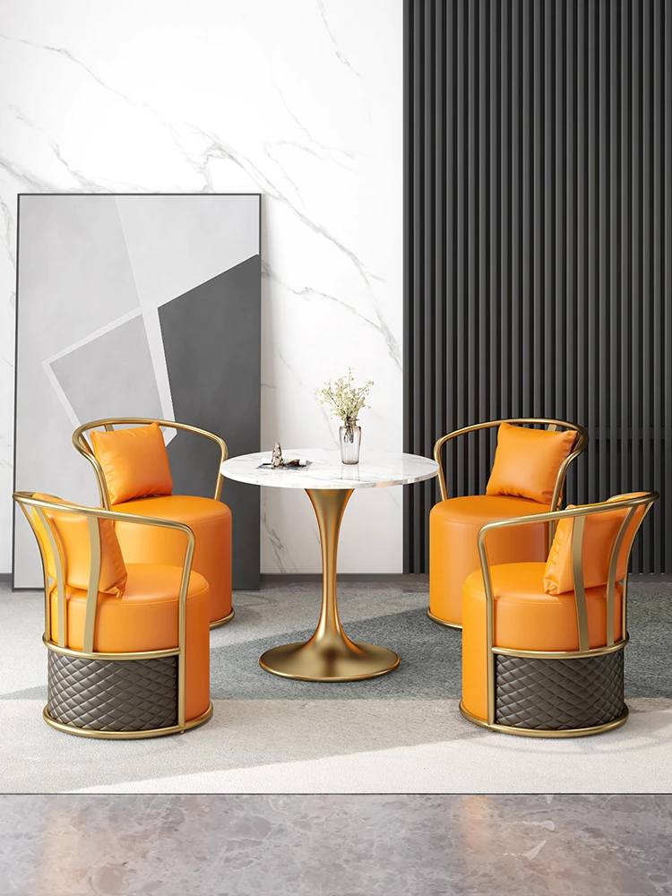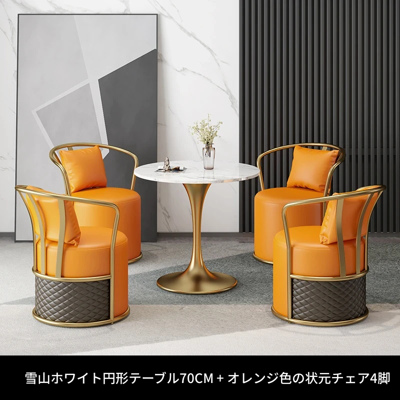 70雪山白の丸テーブル+4脚のオレンジの状元椅 【在庫あり】
