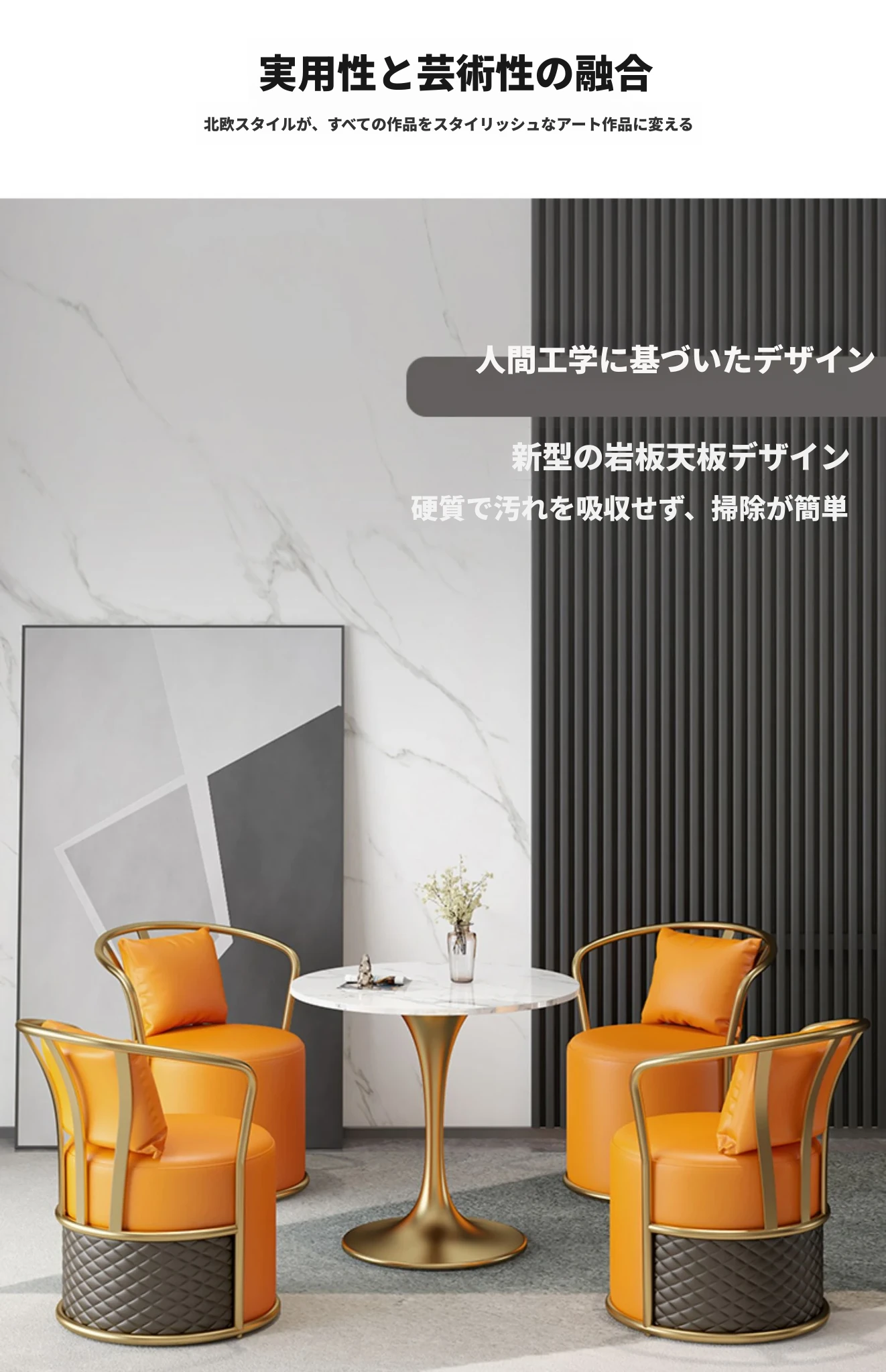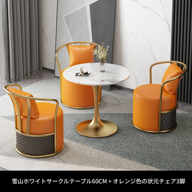 70雪山白の丸テーブル+3脚のオレンジの状元椅 【在庫あり】