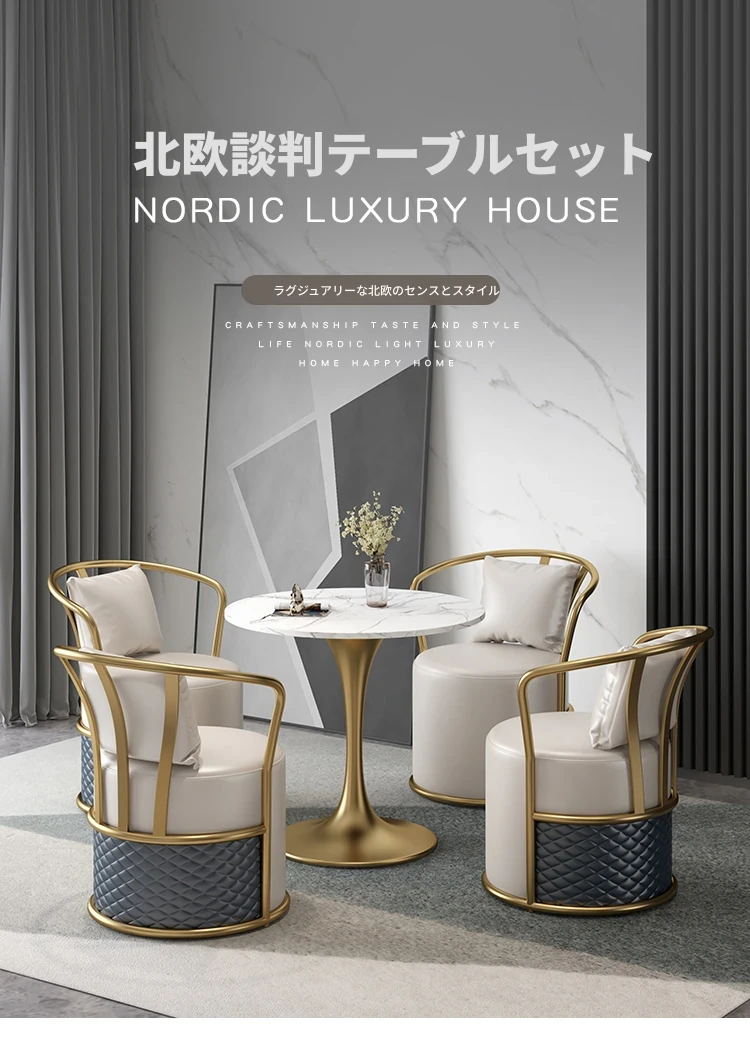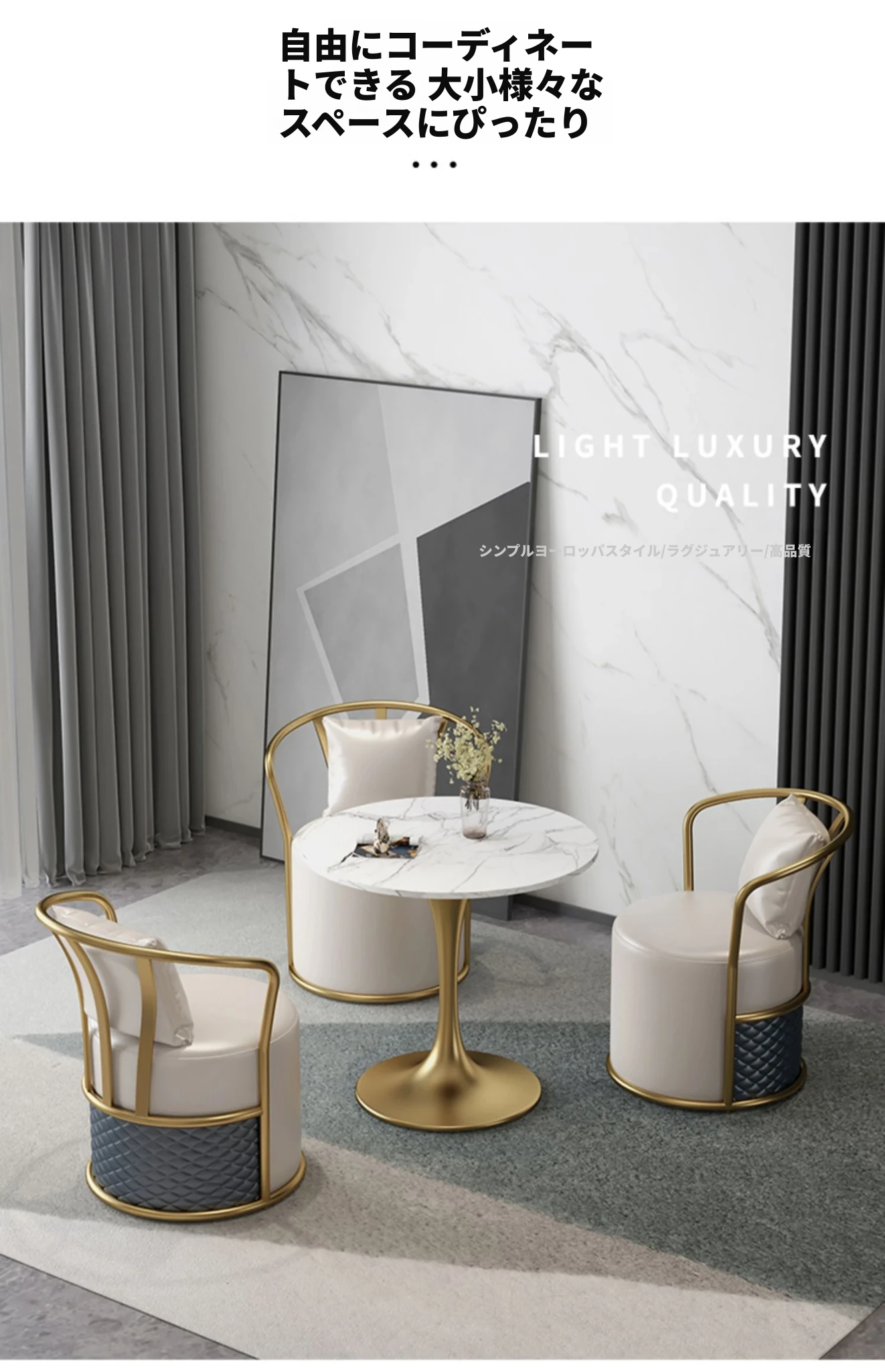 70雪山白の丸テーブル+3脚のコーヒー色の状元椅 【在庫あり】
