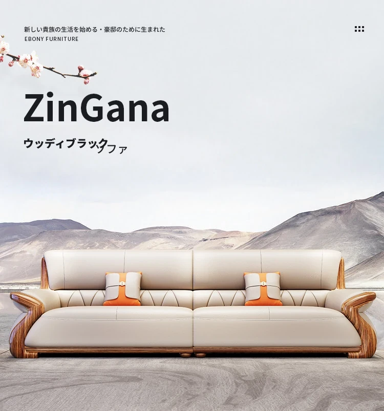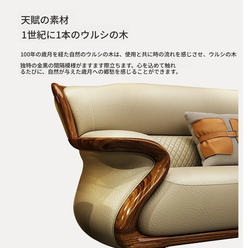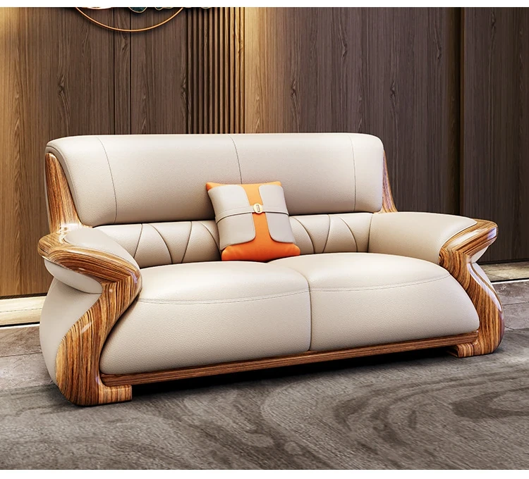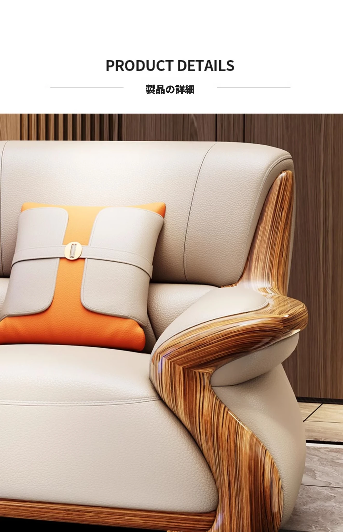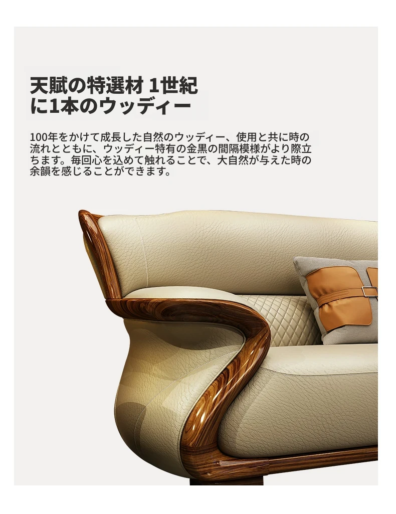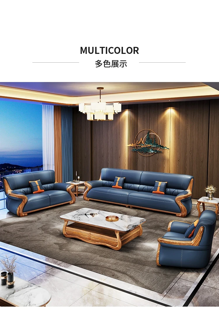 ウッドグレインレザーソファ1234組合 - 新中式デザインの高品質無垢材使用、モダンでシンプルな厚皮家具。リビングルームにぴったりの新作コンボ!