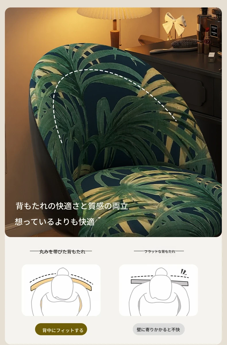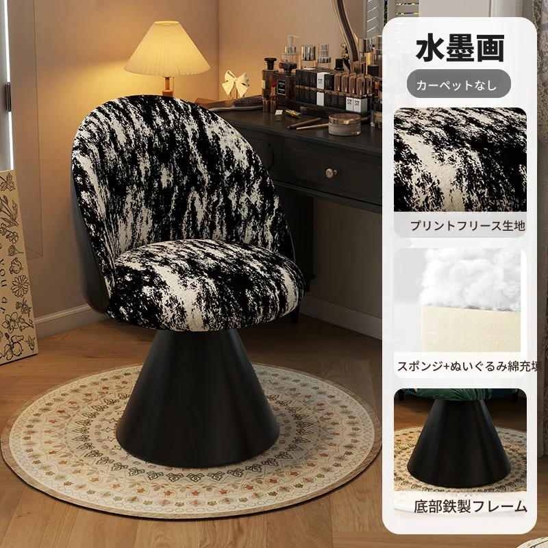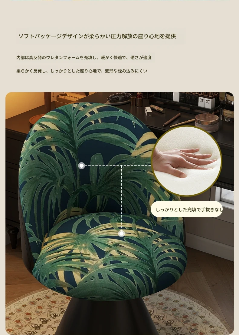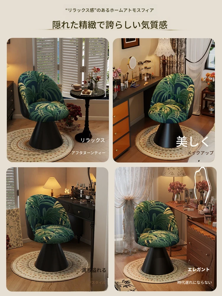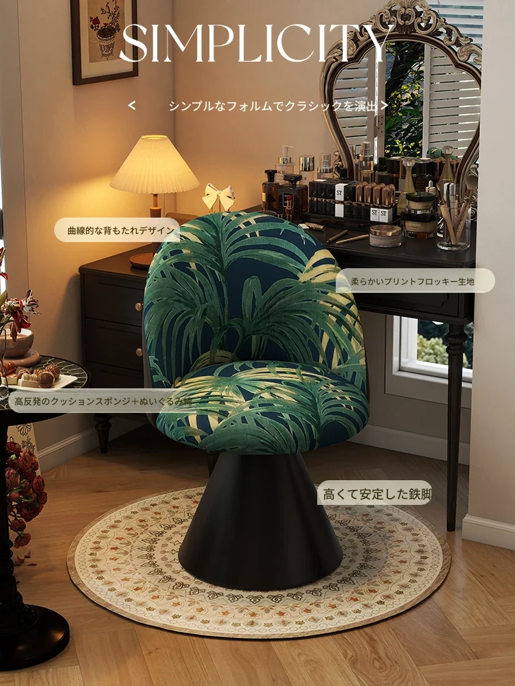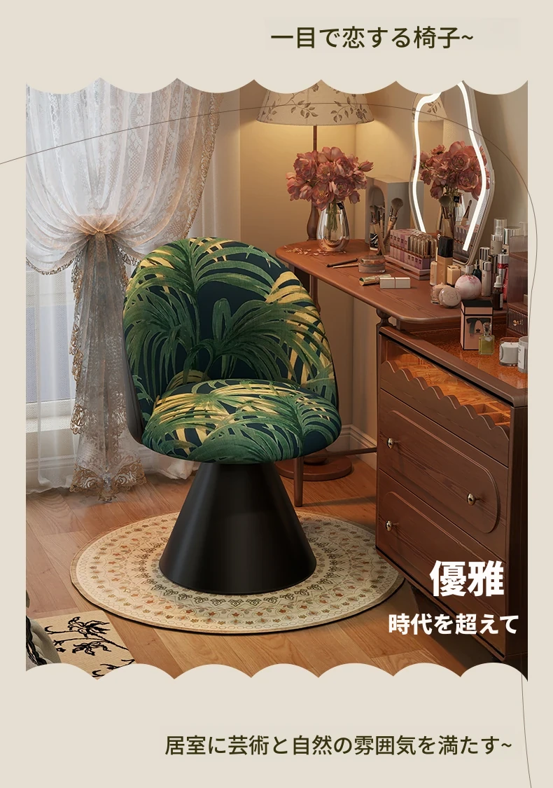 北欧スタイルの高級化粧椅子 - 回転式背もたれ付き、洗練されたデザインの寝室用化粧台椅子。自宅でのビューティータイムを贅沢に演出!