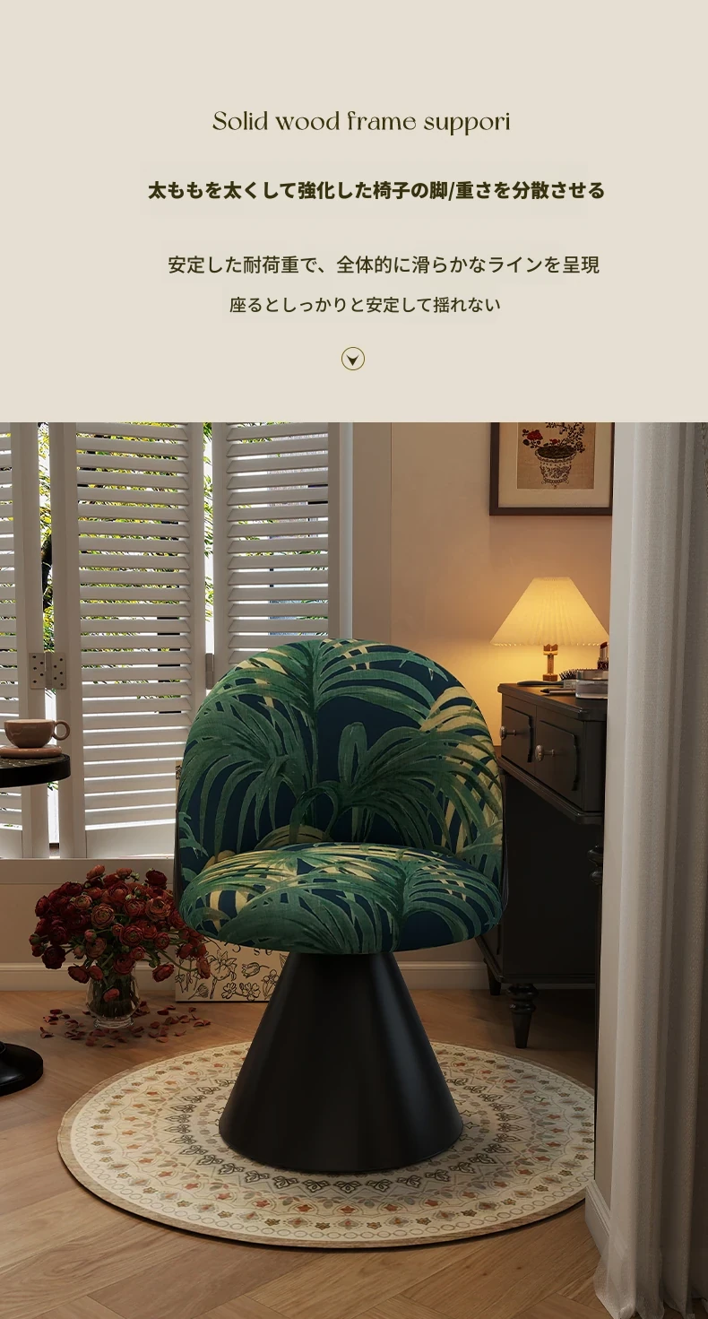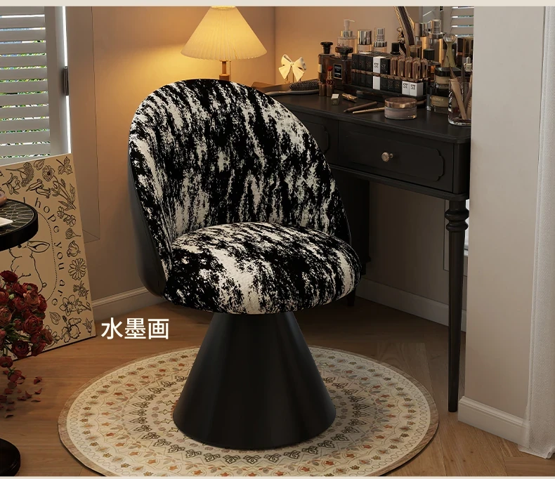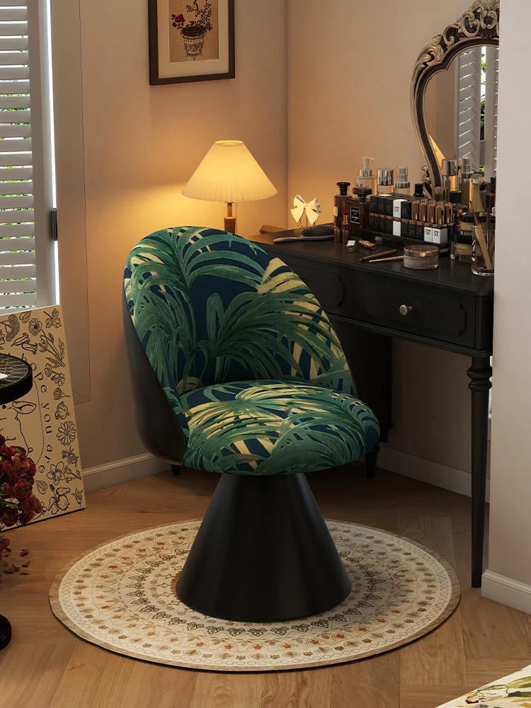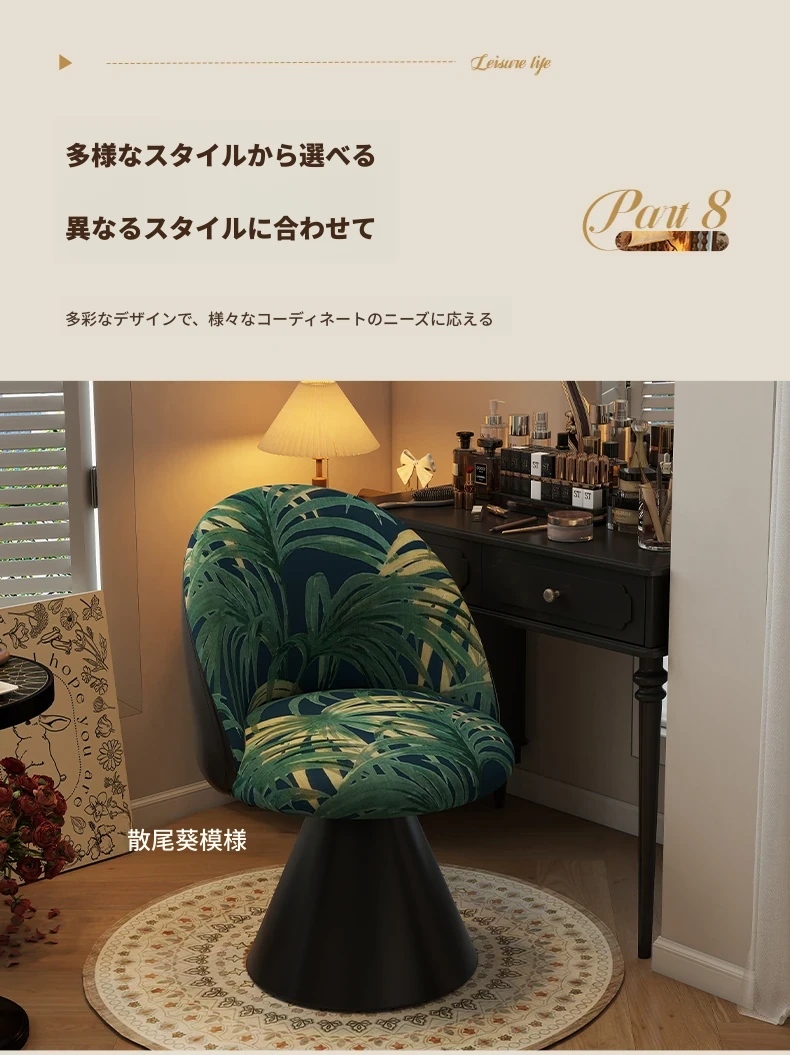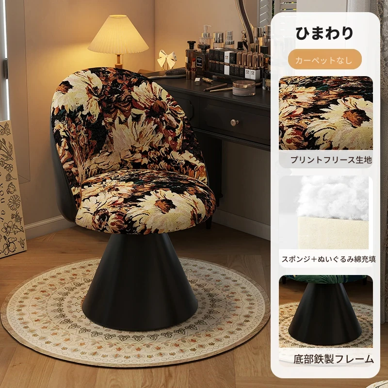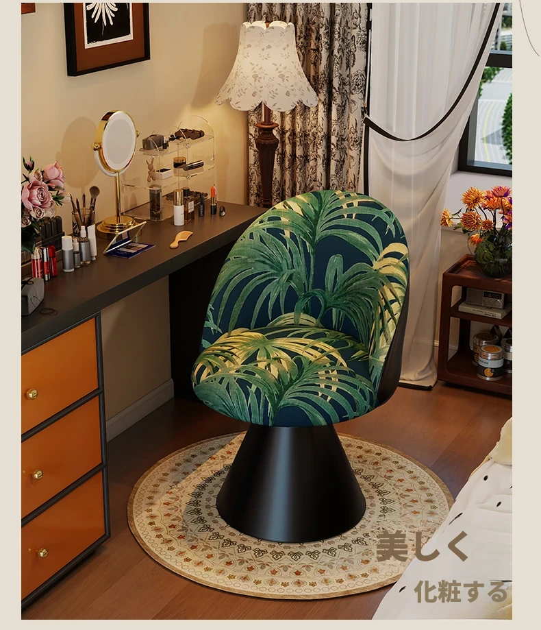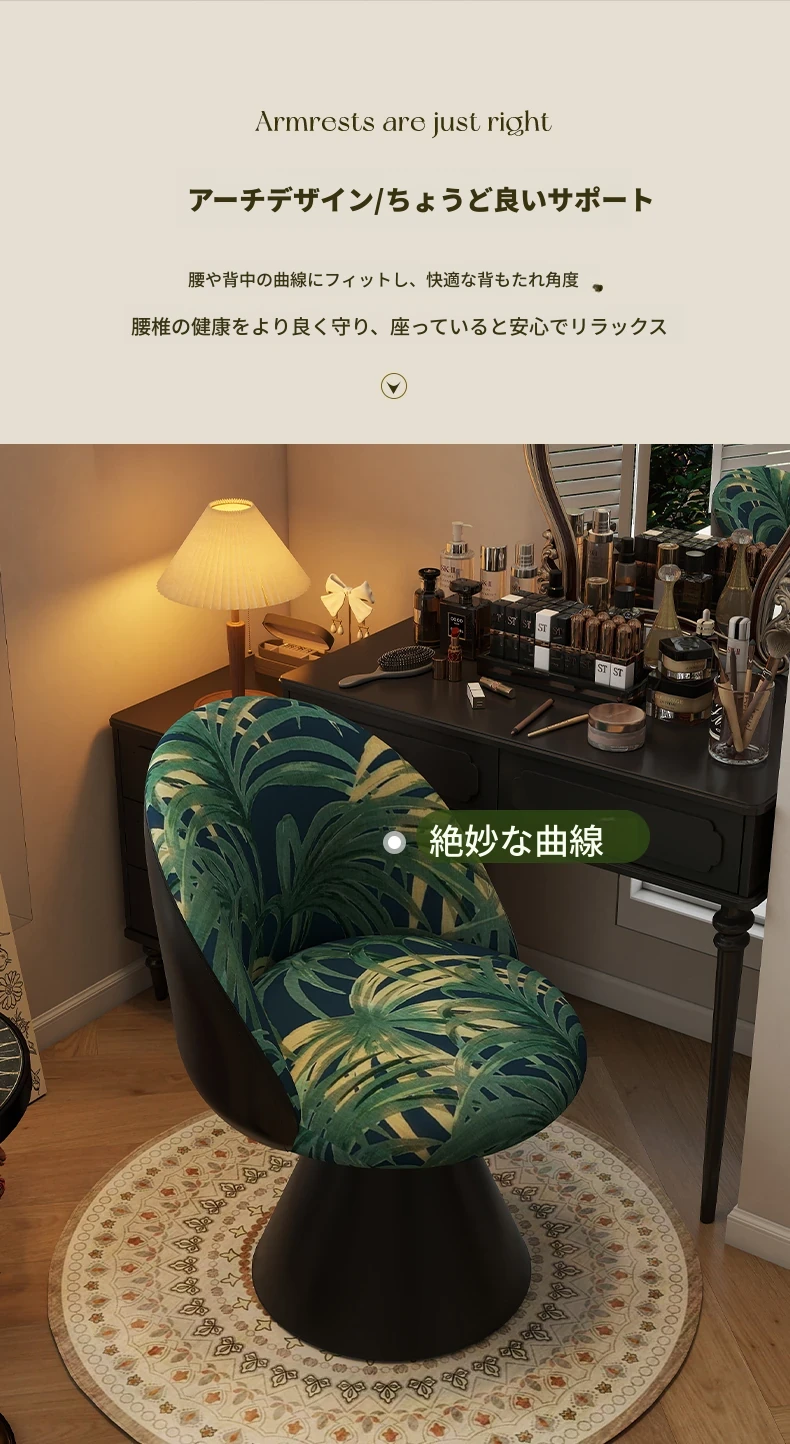 北欧スタイルの高級化粧椅子 - 回転式背もたれ付き、洗練されたデザインの寝室用化粧台椅子。自宅でのビューティータイムを贅沢に演出!