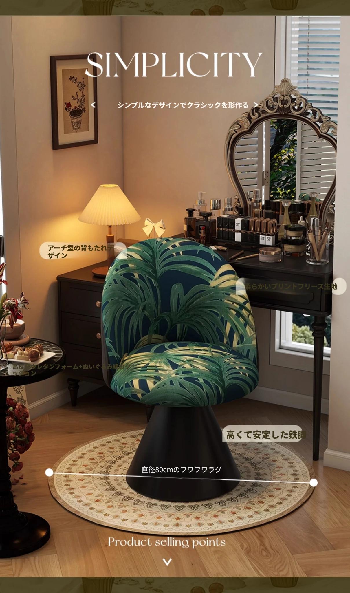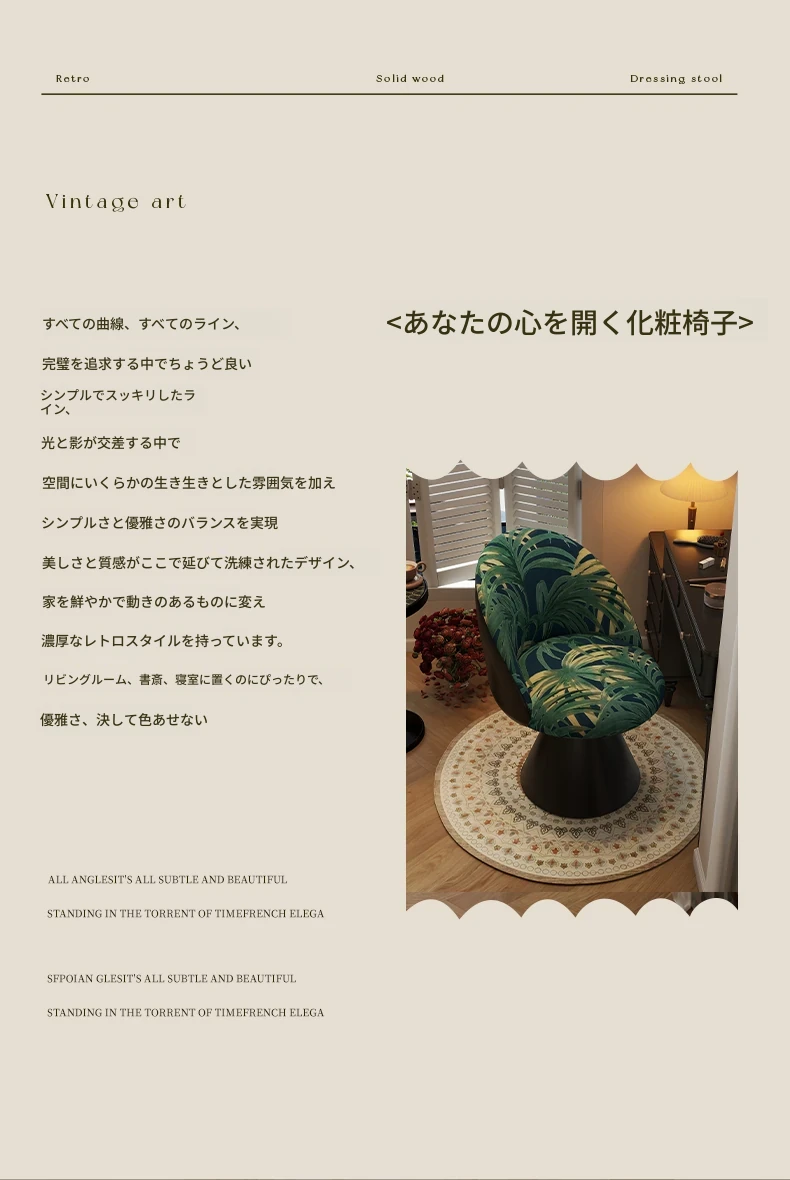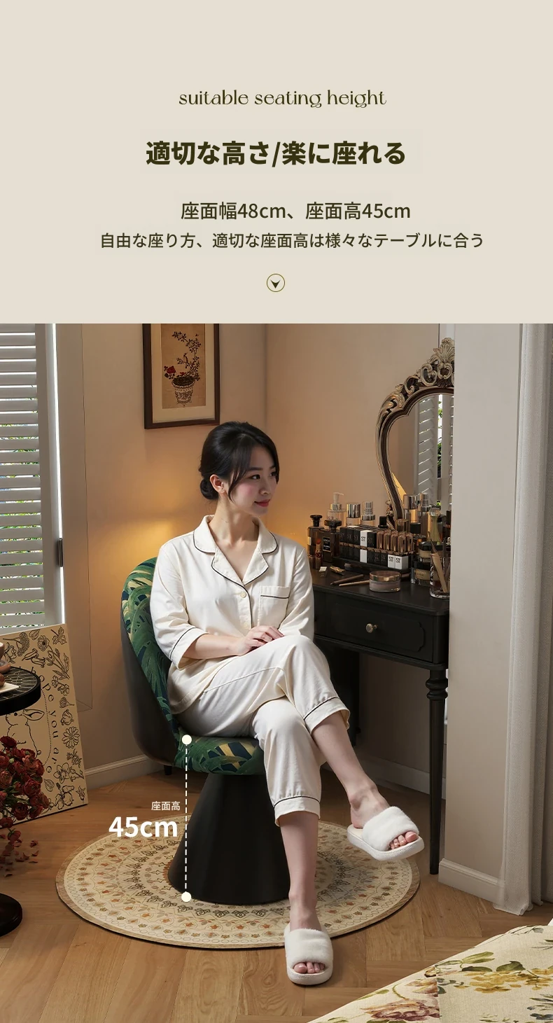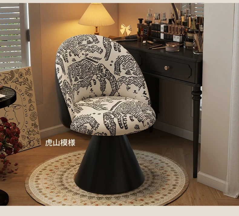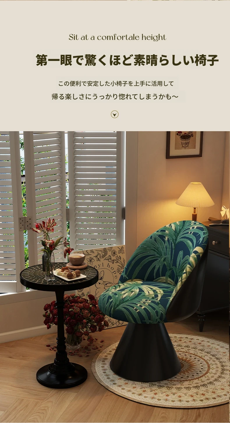 北欧スタイルの高級化粧椅子 - 回転式背もたれ付き、洗練されたデザインの寝室用化粧台椅子。自宅でのビューティータイムを贅沢に演出!