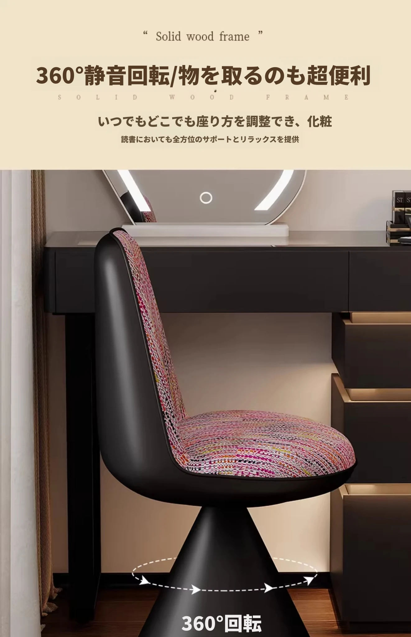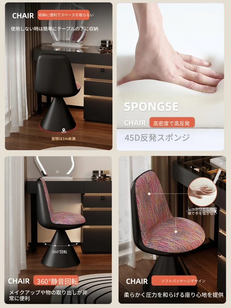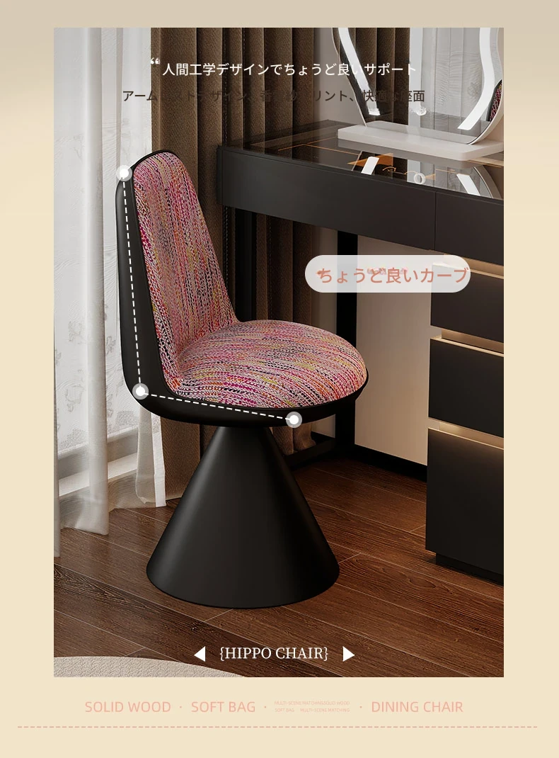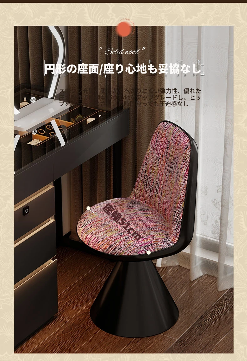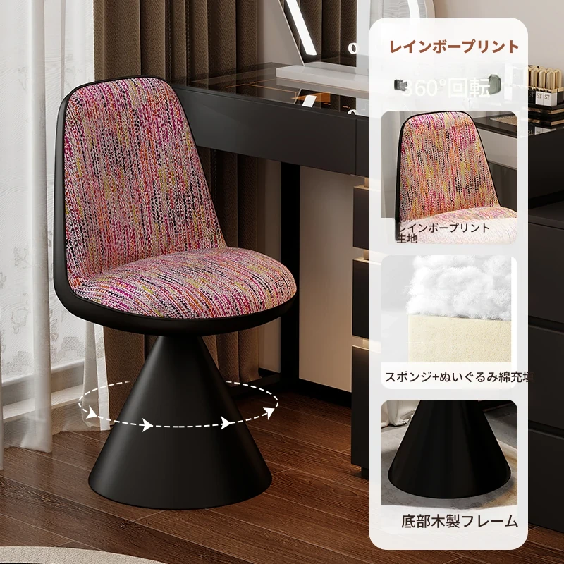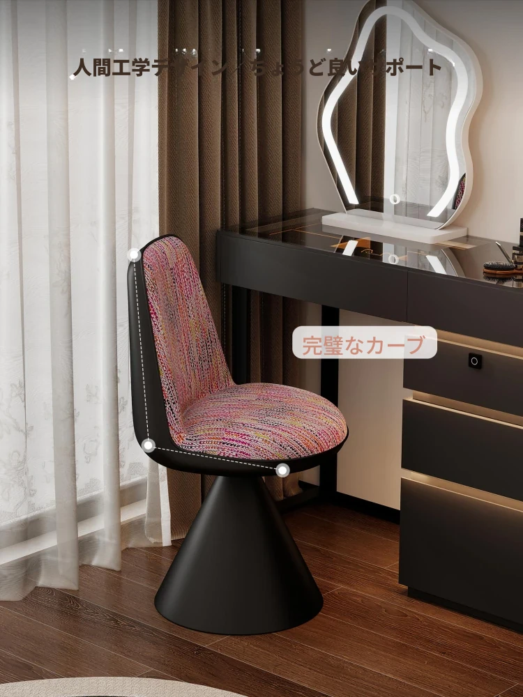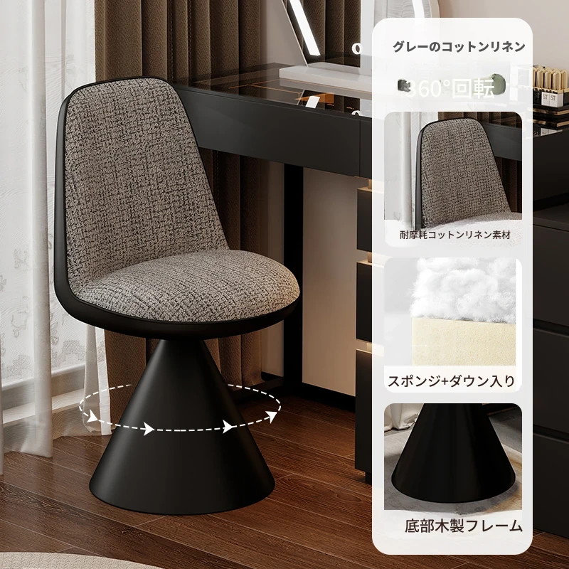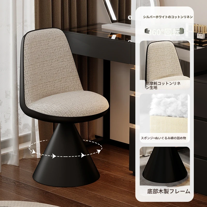 北欧スタイルの高級化粧椅子 - 回転式背もたれ付き、リラックスできるデザイン!寝室にぴったりのライトラグジュアリーなメイクアップスツール。自宅のドレッサーに最適なアイテムです。