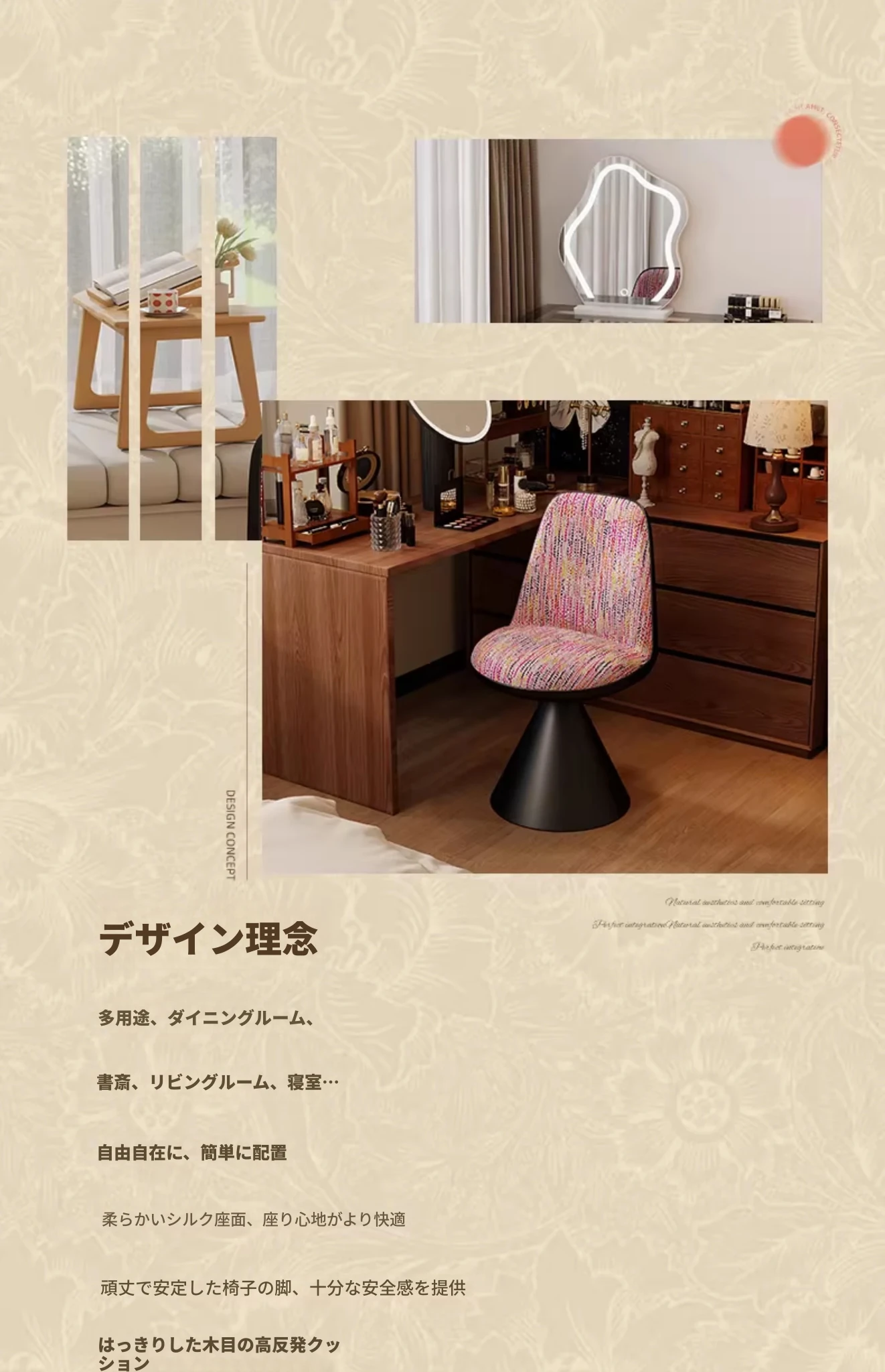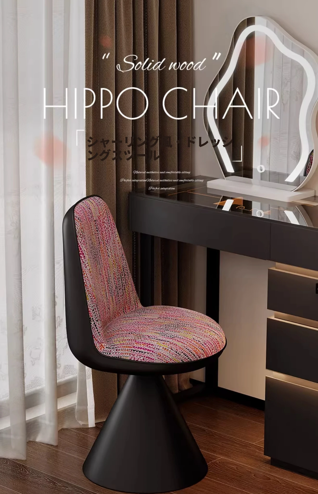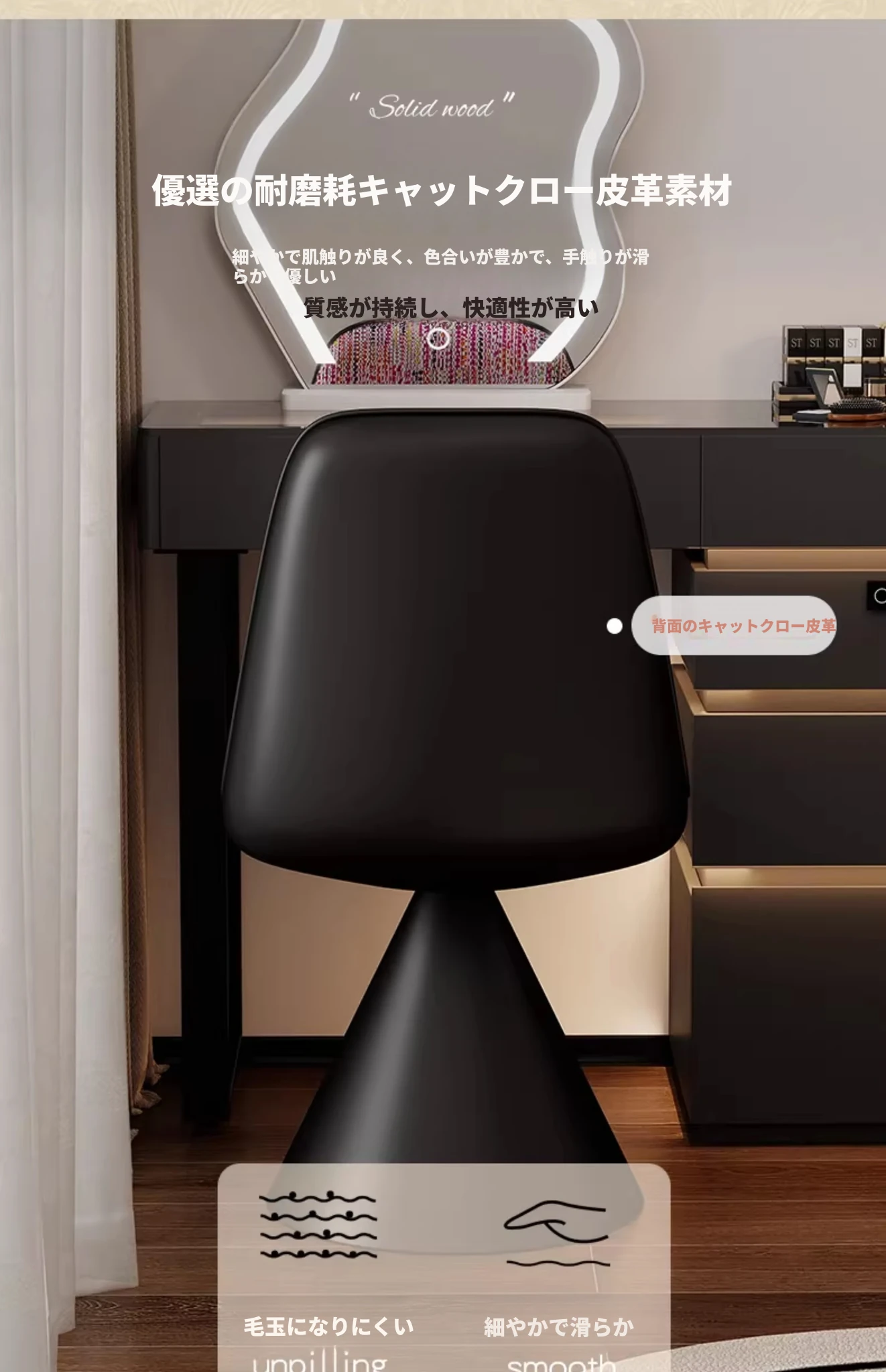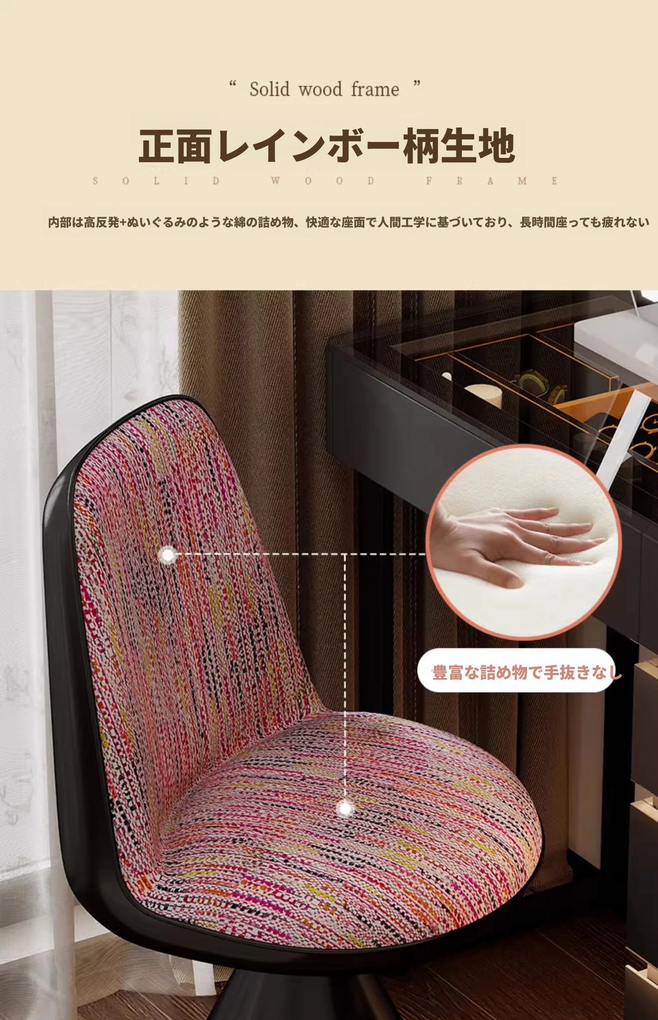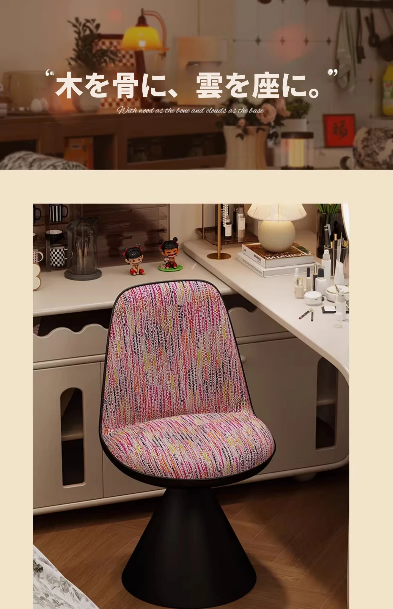 北欧スタイルの高級化粧椅子 - 回転式背もたれ付き、リラックスできるデザイン!寝室にぴったりのライトラグジュアリーなメイクアップスツール。自宅のドレッサーに最適なアイテムです。