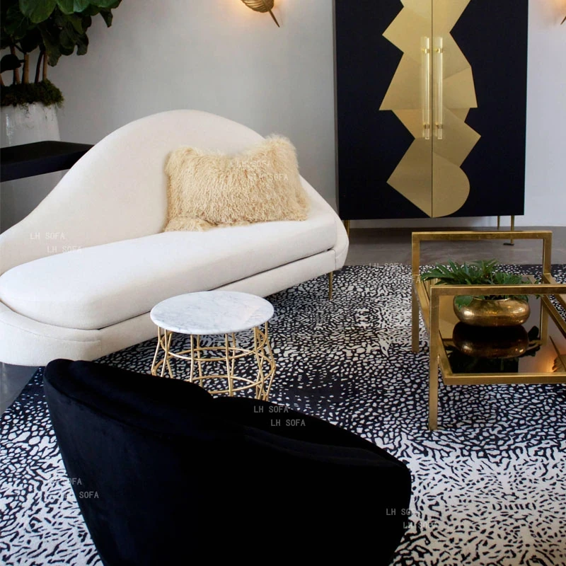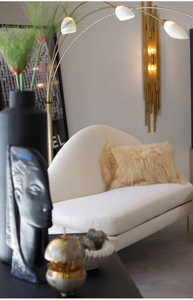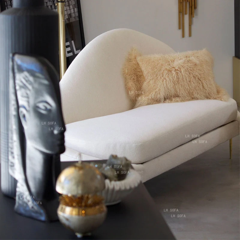 北欧モダンの高級感あふれる貴妃椅子|アメリカンスタイルの布製ソファ|曲線美の小型シンプルデザイン|金属フレームのリラックスチェアで、スタイリッシュな空間を演出!