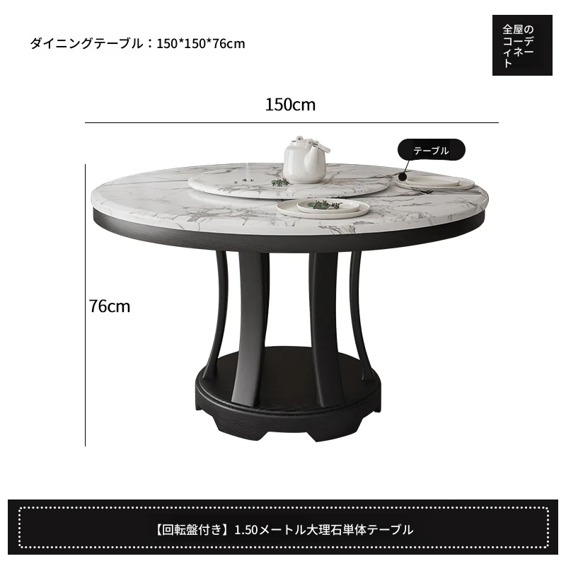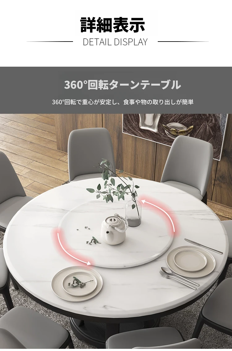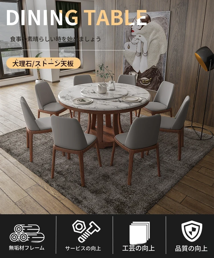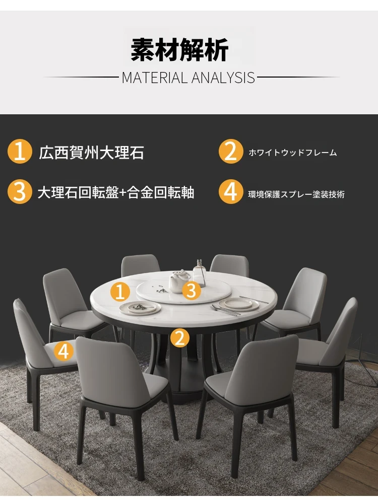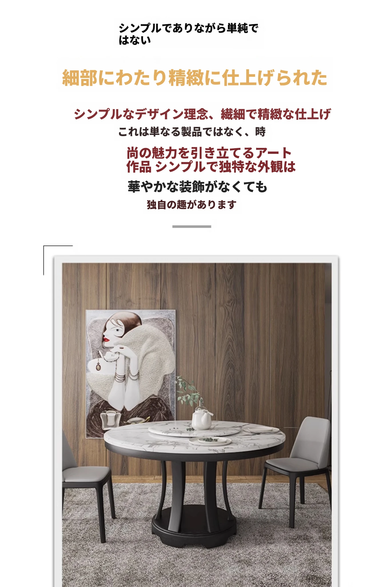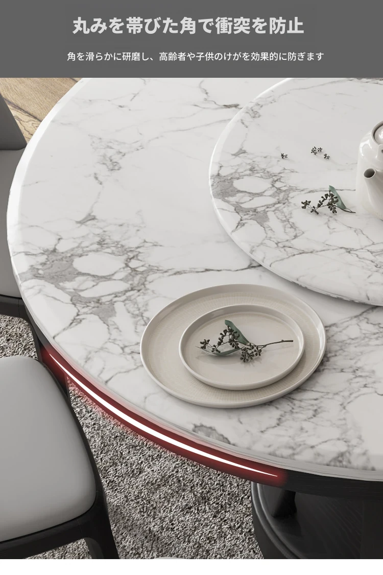 北欧モダンデザインの大理石製ダイニングテーブルセット|回転式・実木製・コンパクトサイズ|小さな家でもおしゃれに|家族や友人との楽しい食卓を演出!