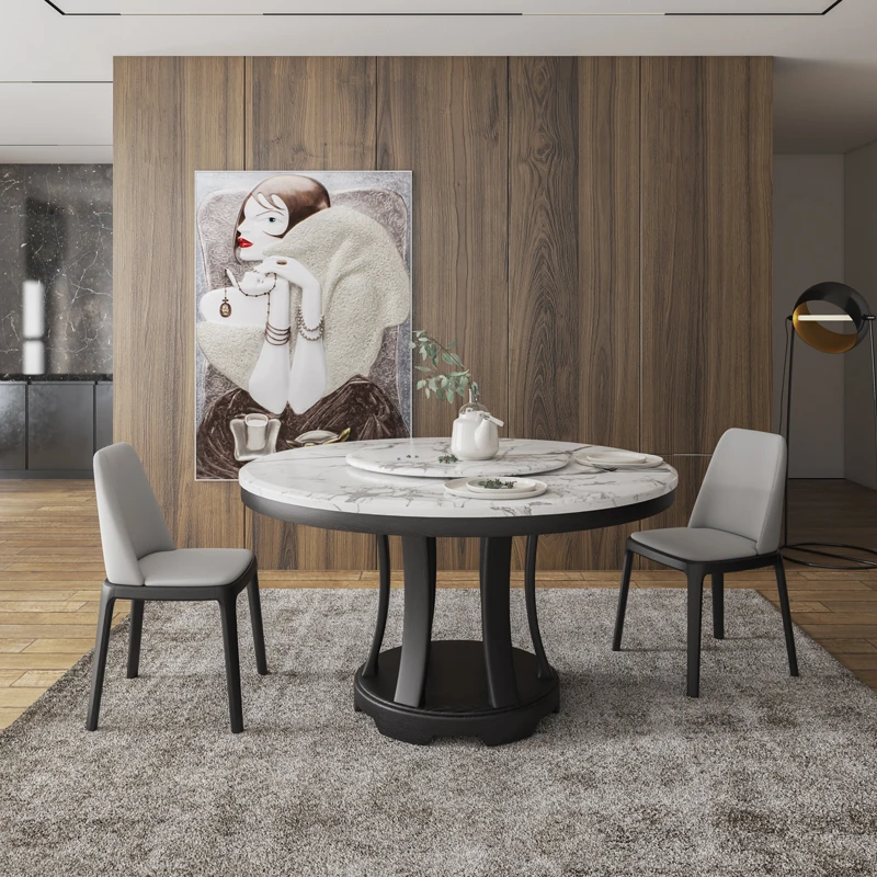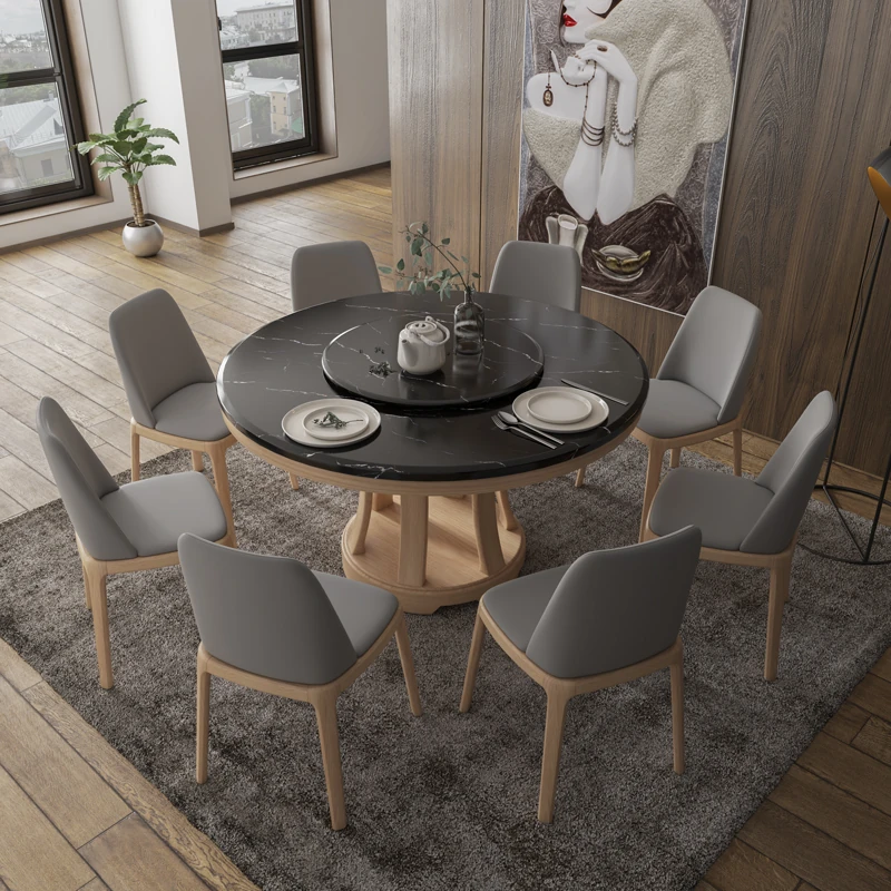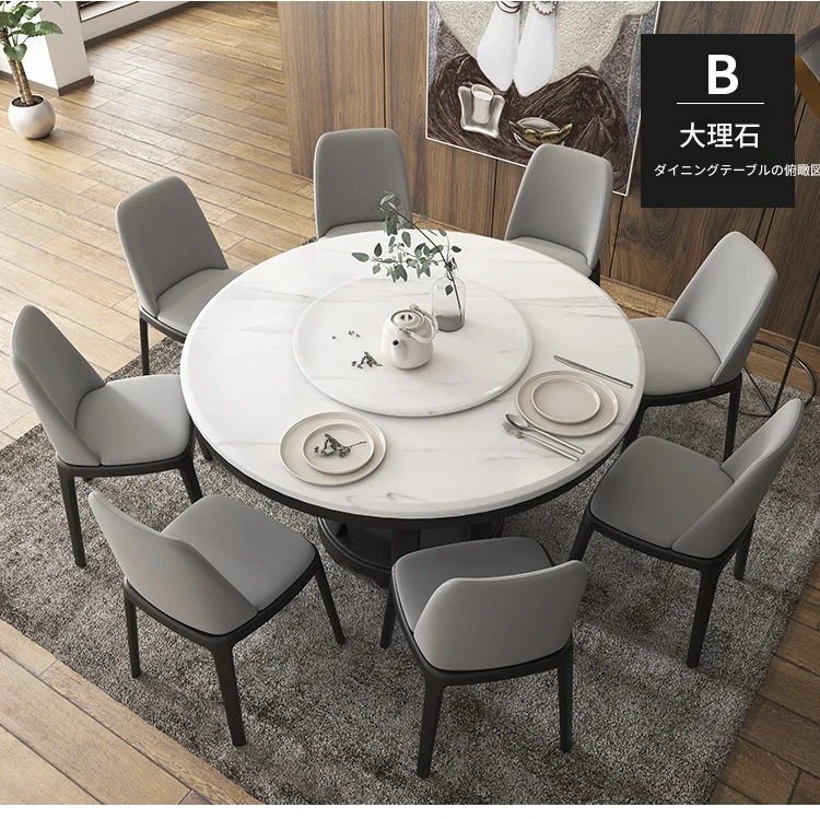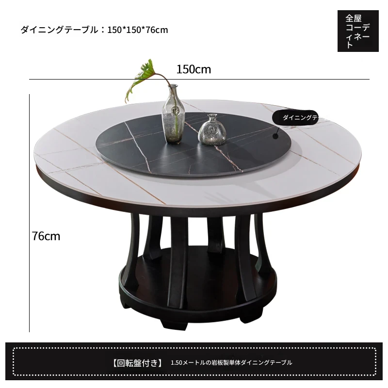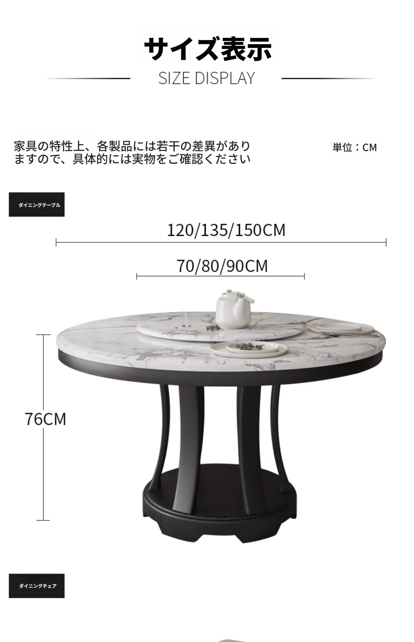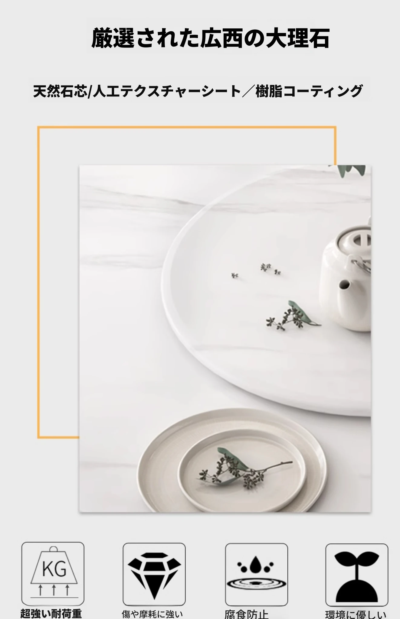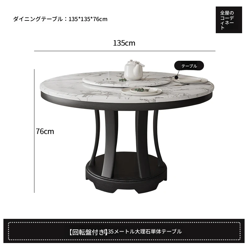 北欧モダンデザインの大理石製ダイニングテーブルセット|回転式・実木製・コンパクトサイズ|小さな家でもおしゃれに|家族や友人との楽しい食卓を演出!