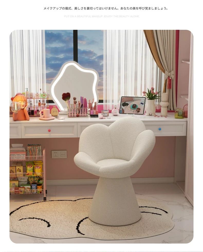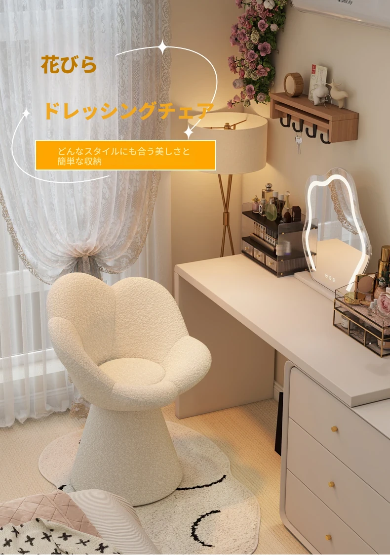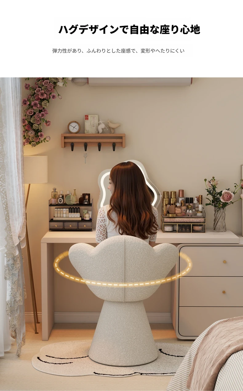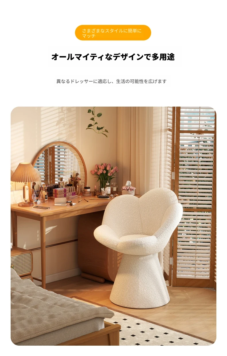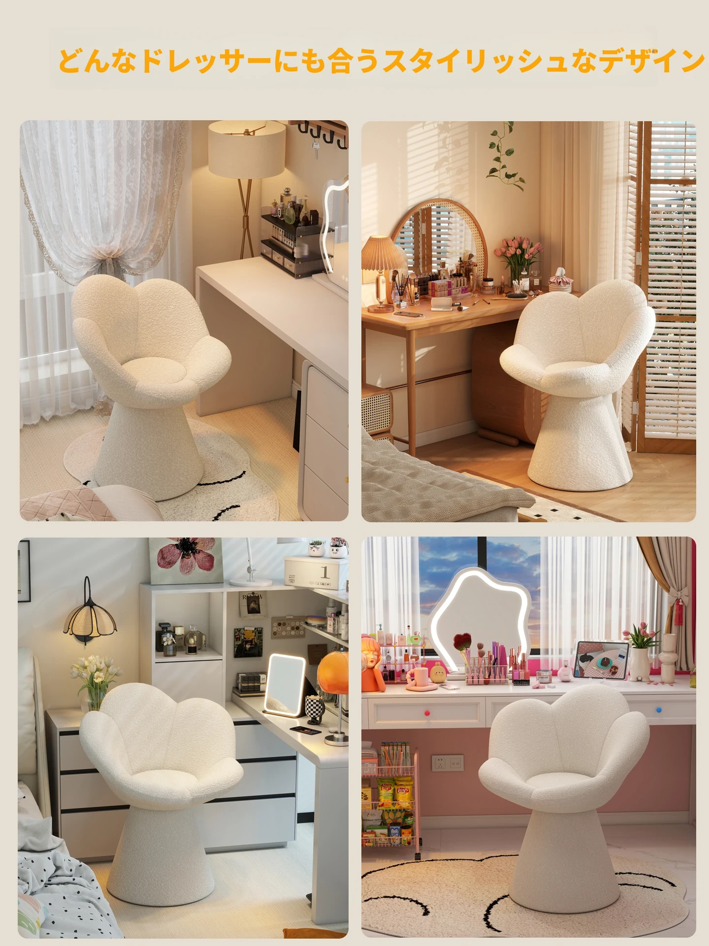 花びら型の椅子|現代的でシンプルなデザインのドレッシングチェア|コンパクトな小部屋に最適|クリーミーな風合いで高級感漂うネイル用スツール|おしゃれなインテリアを演出!