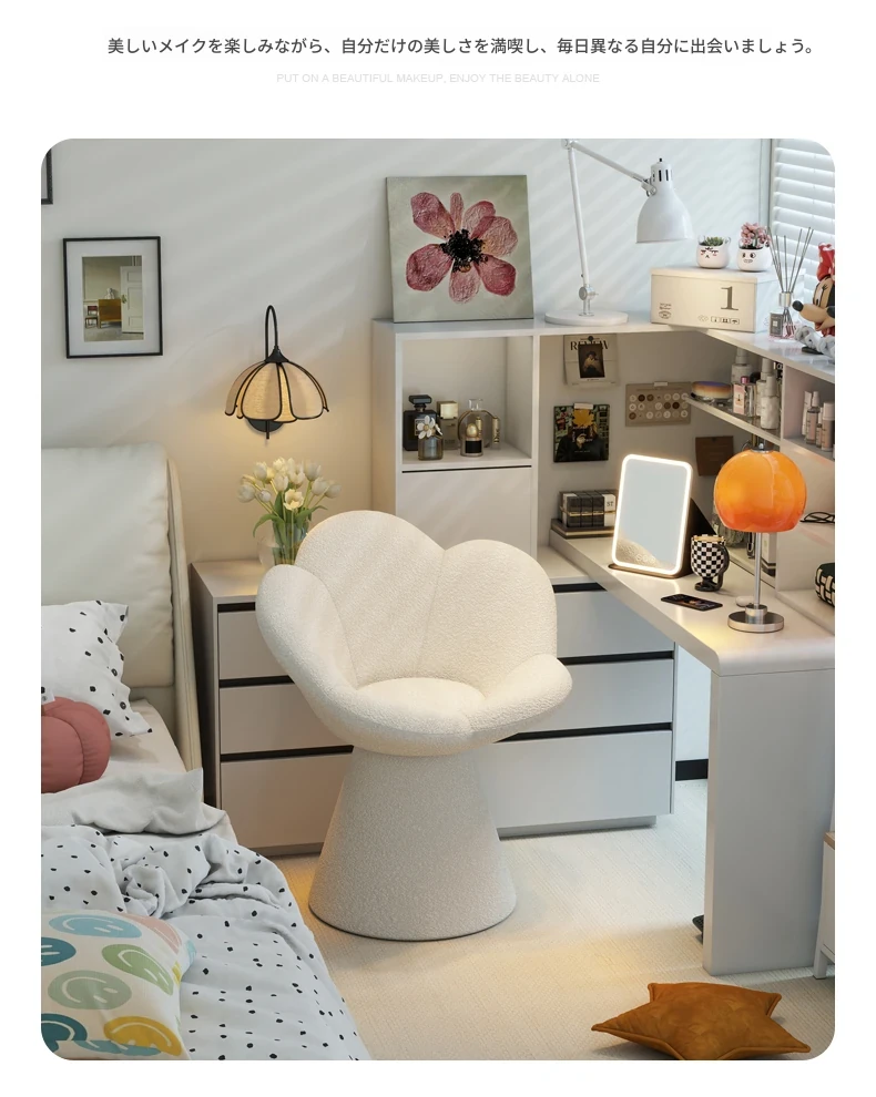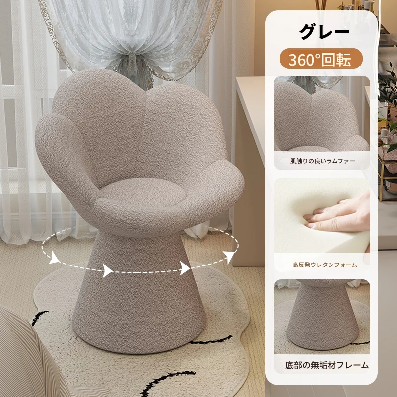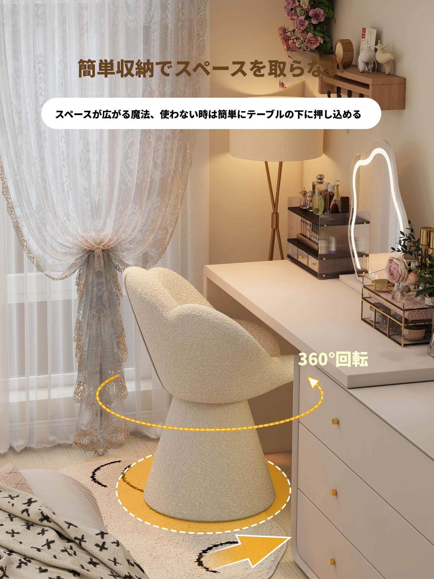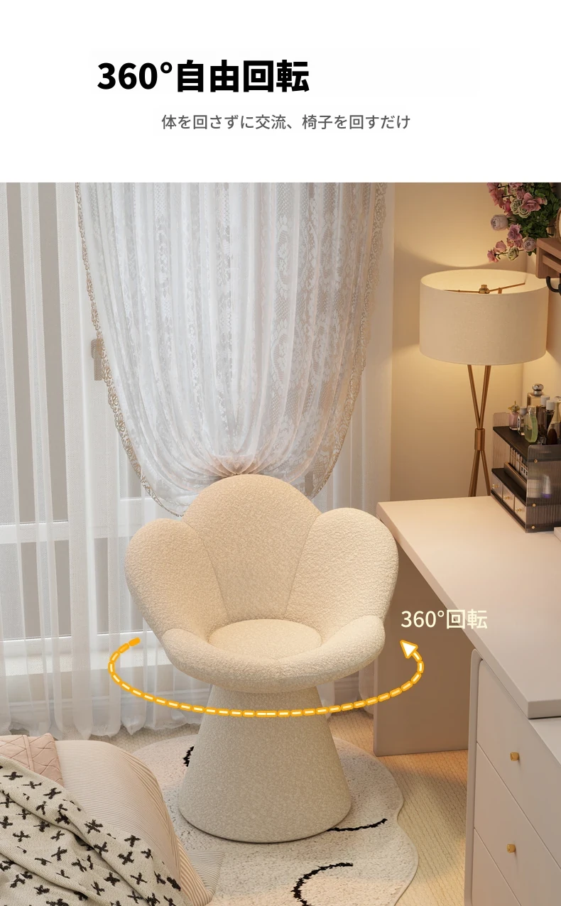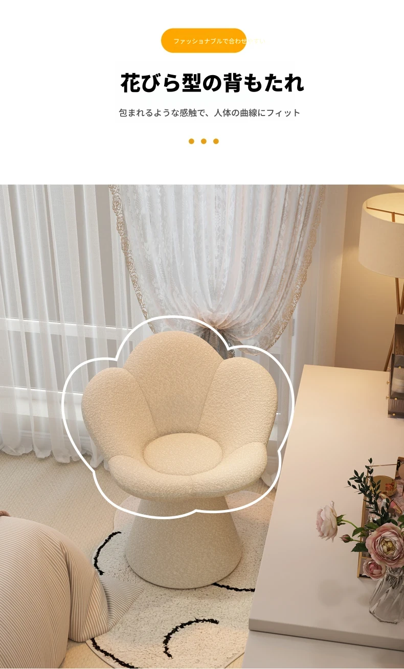 花びら型の椅子|現代的でシンプルなデザインのドレッシングチェア|コンパクトな小部屋に最適|クリーミーな風合いで高級感漂うネイル用スツール|おしゃれなインテリアを演出!