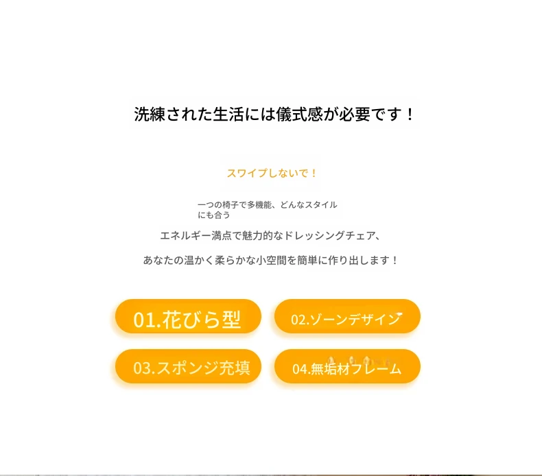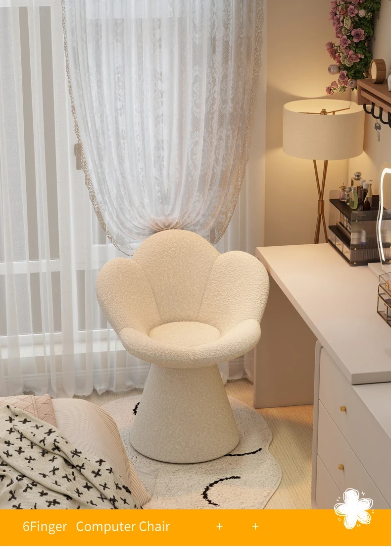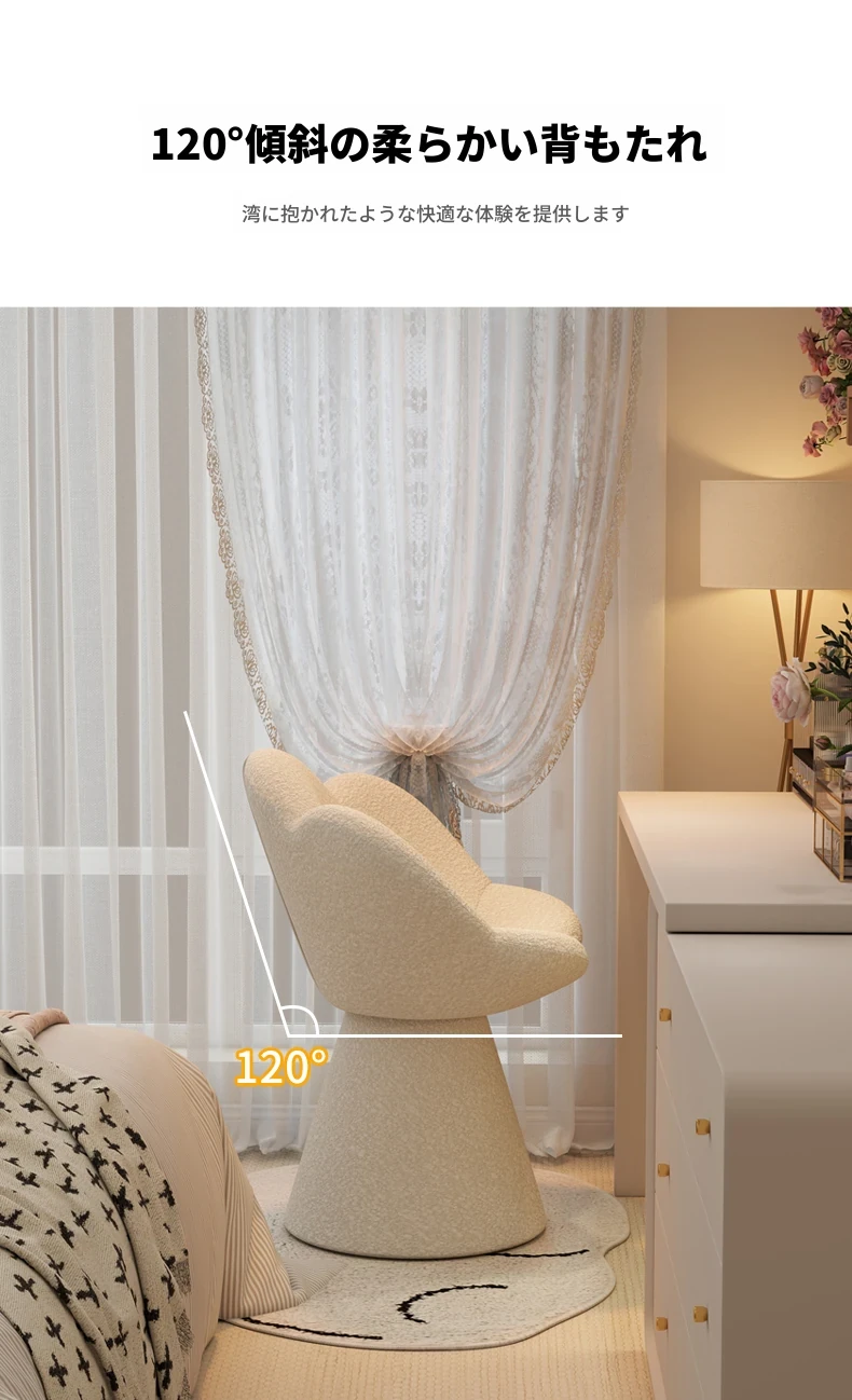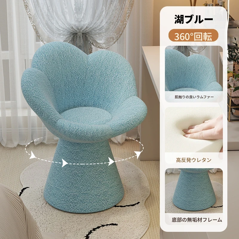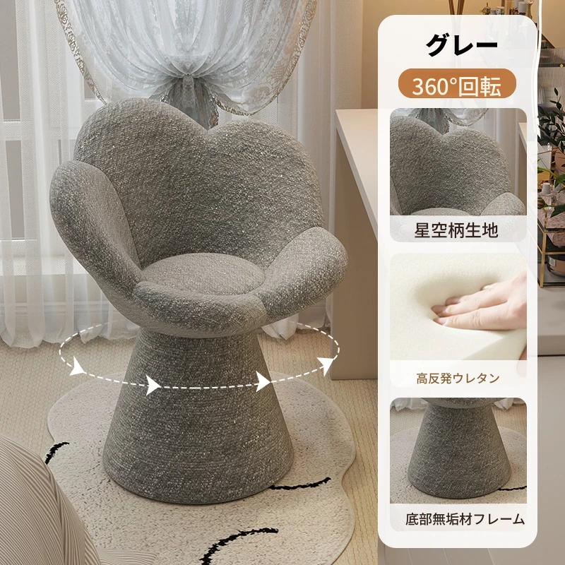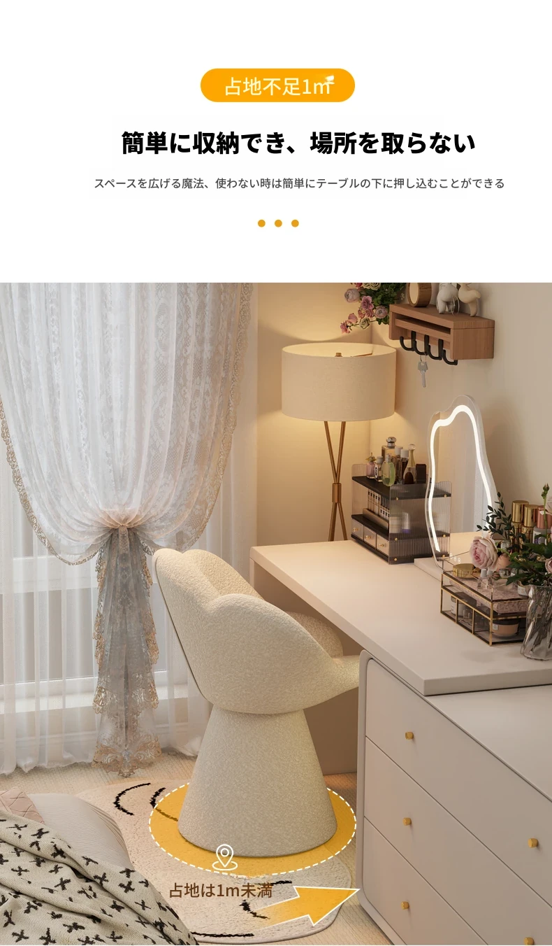 花びら型の椅子|現代的でシンプルなデザインのドレッシングチェア|コンパクトな小部屋に最適|クリーミーな風合いで高級感漂うネイル用スツール|おしゃれなインテリアを演出!