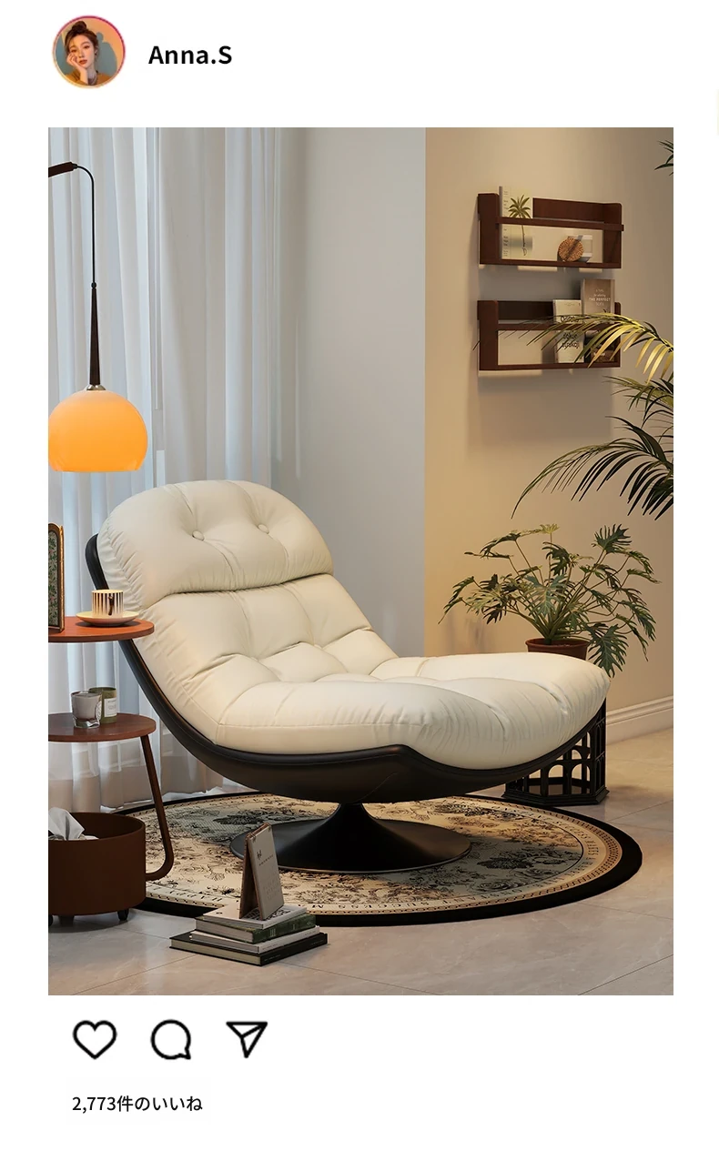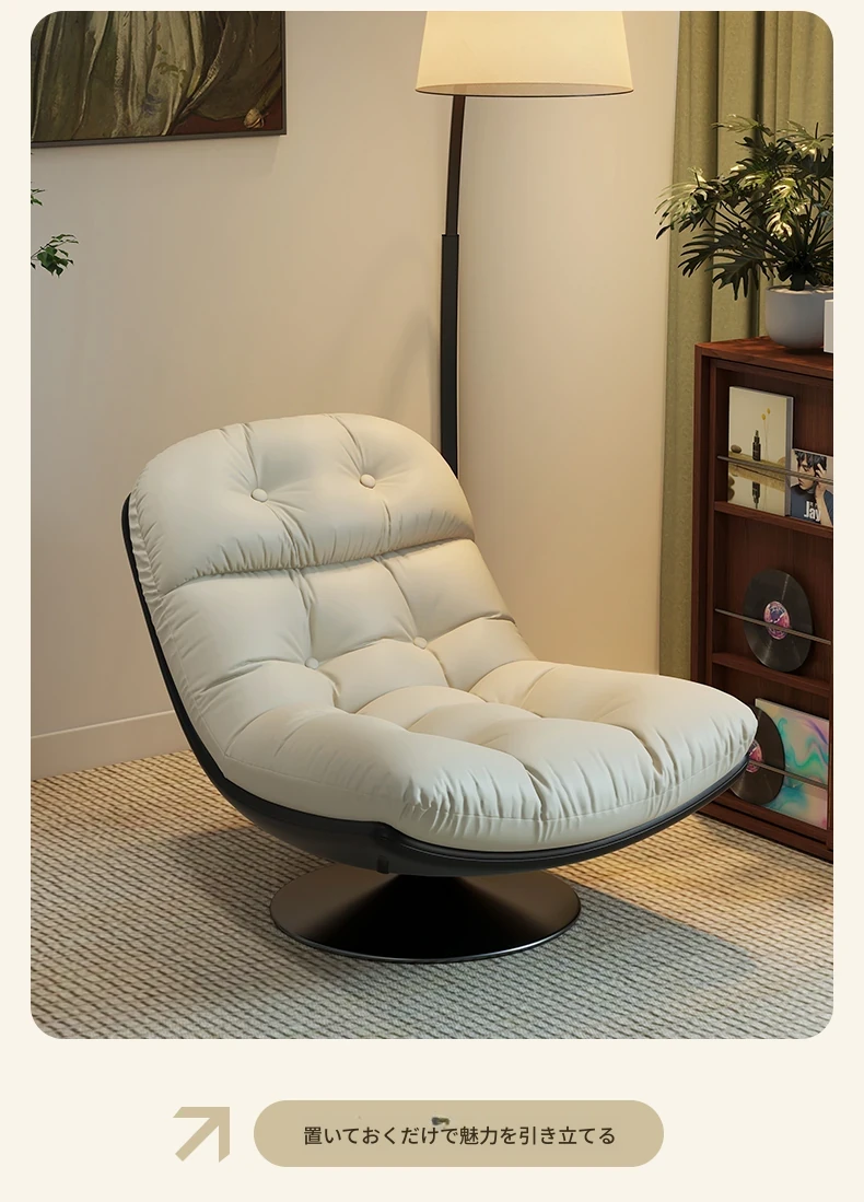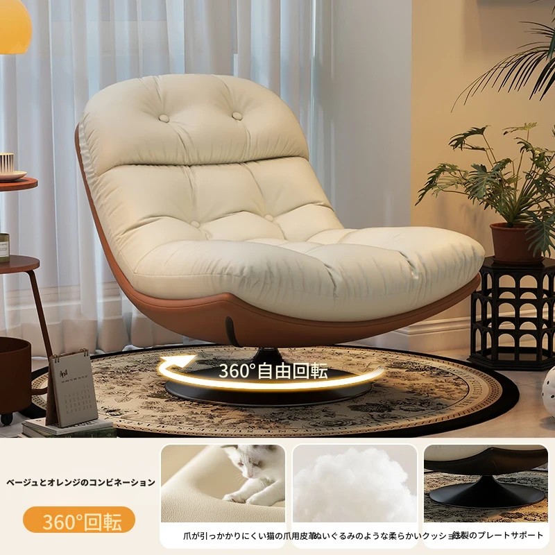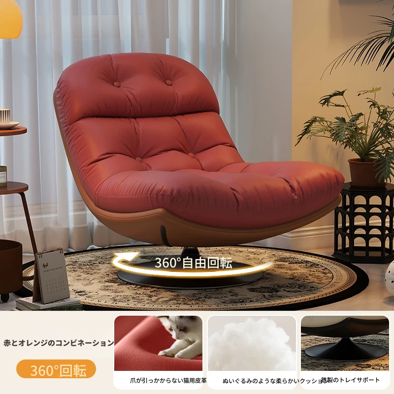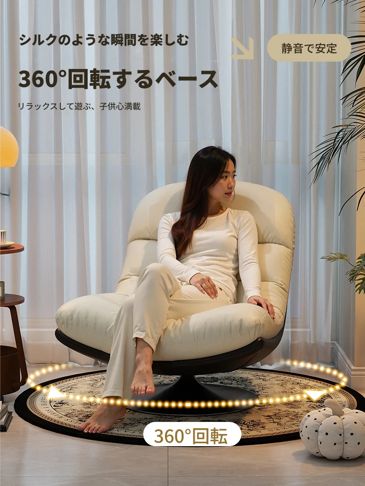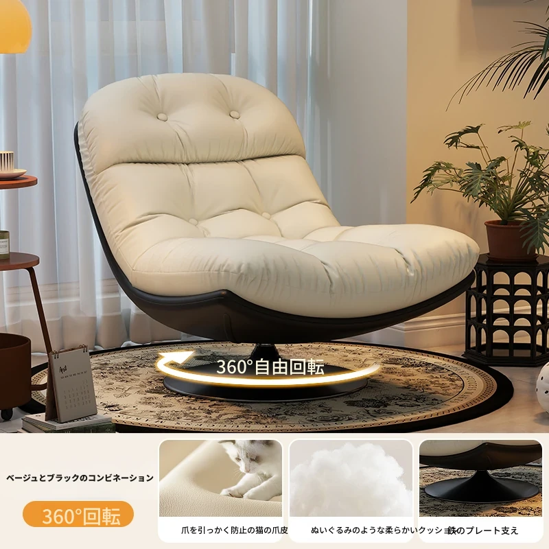 回転式シングルソファチェア - リビングやバルコニーにぴったり!デザイナーのラウンジチェアで、リラックスしながらくつろげる。背もたれ付きで、楽な姿勢で横になることも可能。快適なひとときをお楽しみください!