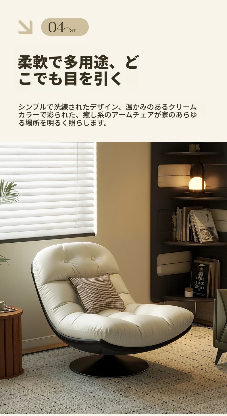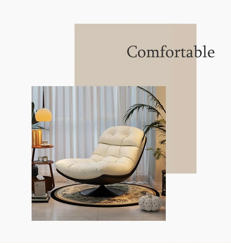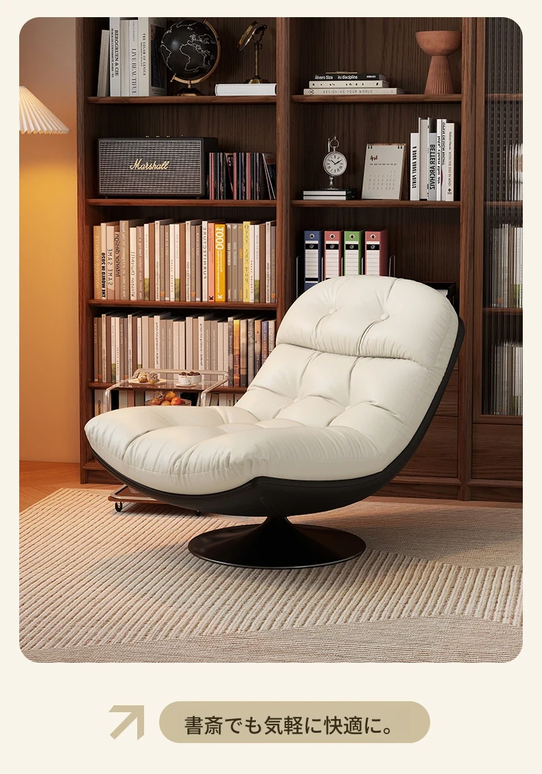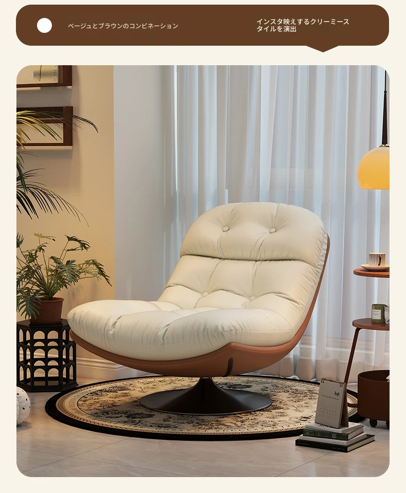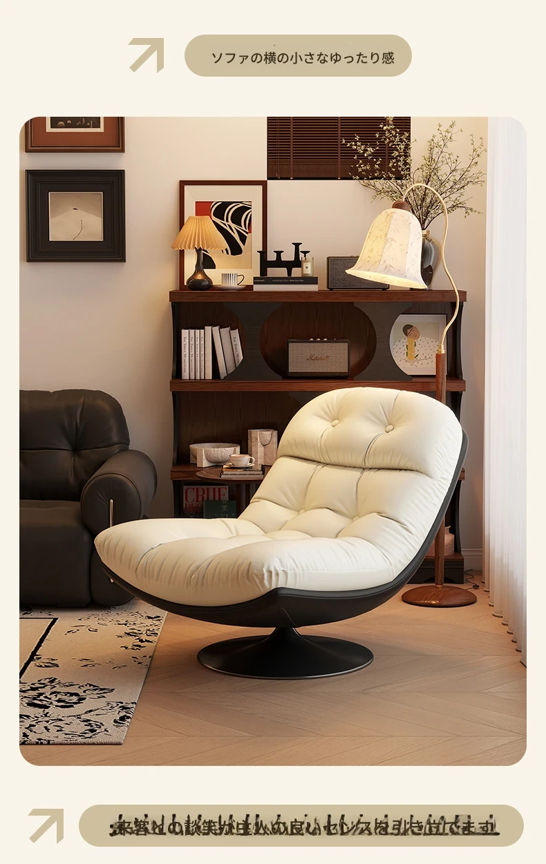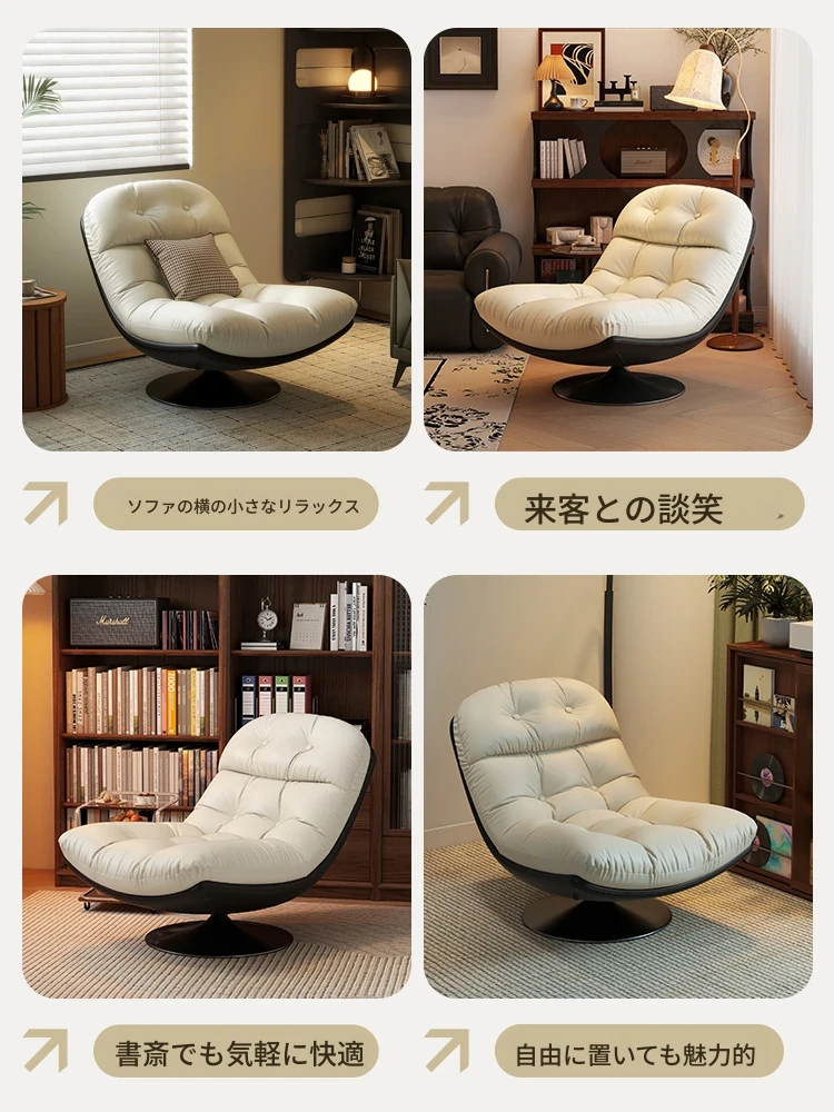 回転式シングルソファチェア - リビングやバルコニーにぴったり!デザイナーのラウンジチェアで、リラックスしながらくつろげる。背もたれ付きで、楽な姿勢で横になることも可能。快適なひとときをお楽しみください!