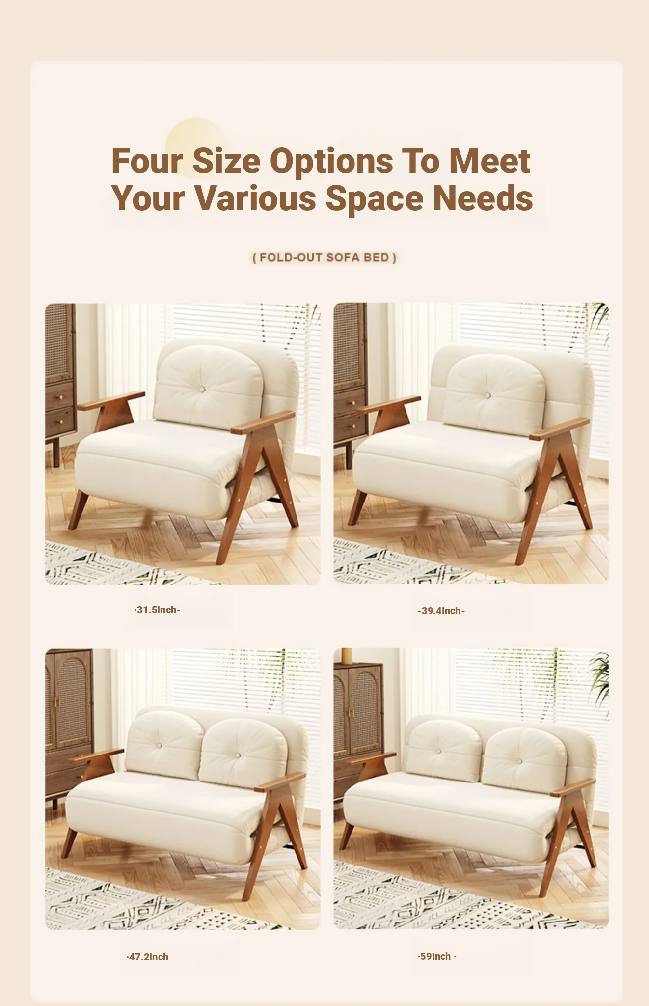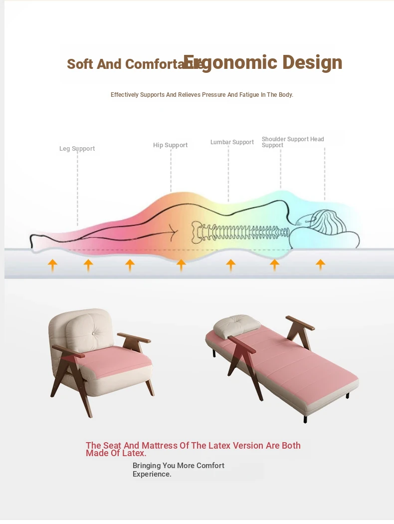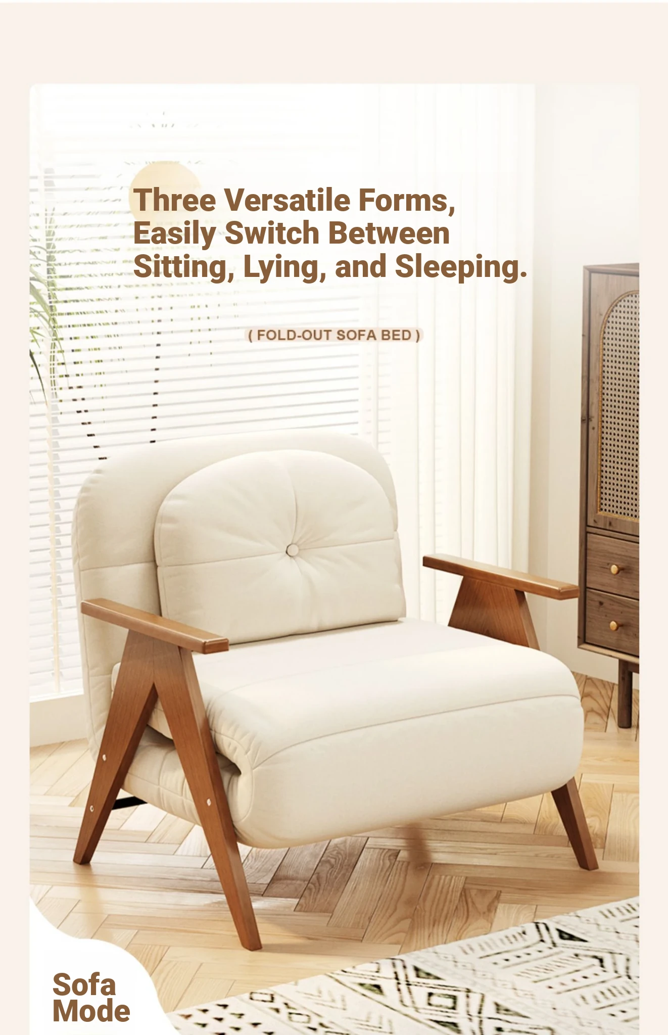 Shenya Foldable Lazy Sofa Bed - Multi-Functional Solid Wood Single Sofa for Small Spaces, Perfect for Home Use, New Model 2024