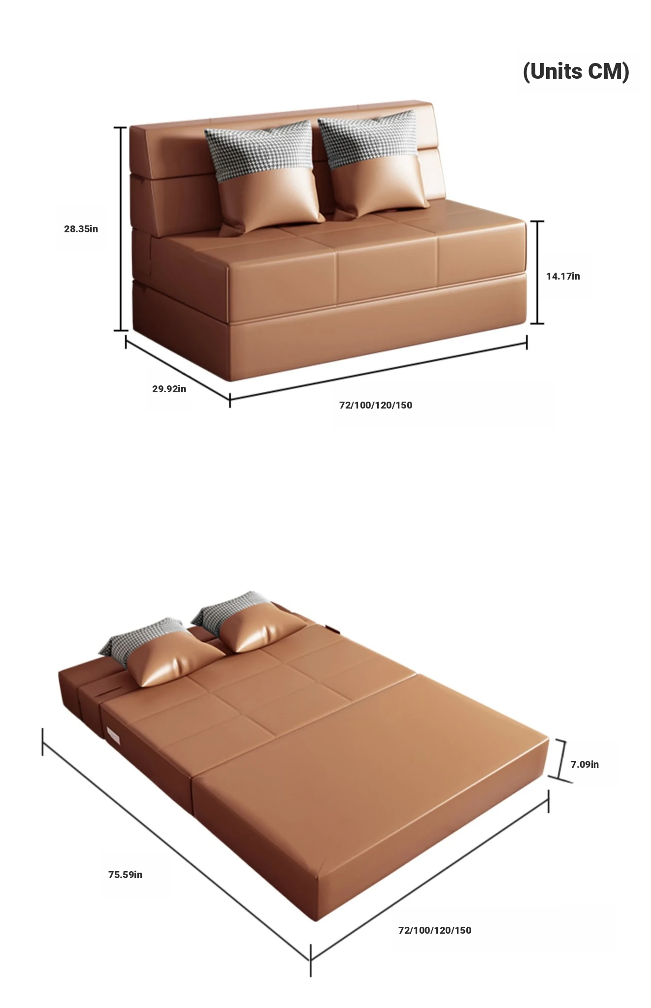 ShenYa Multifunctional Foldable Sofa Bed - Space-Saving Lazy Tatami Design with High-Tech Fabric - Perfect for Small Apartments, Suitable for Single and Double Use (1.5m)