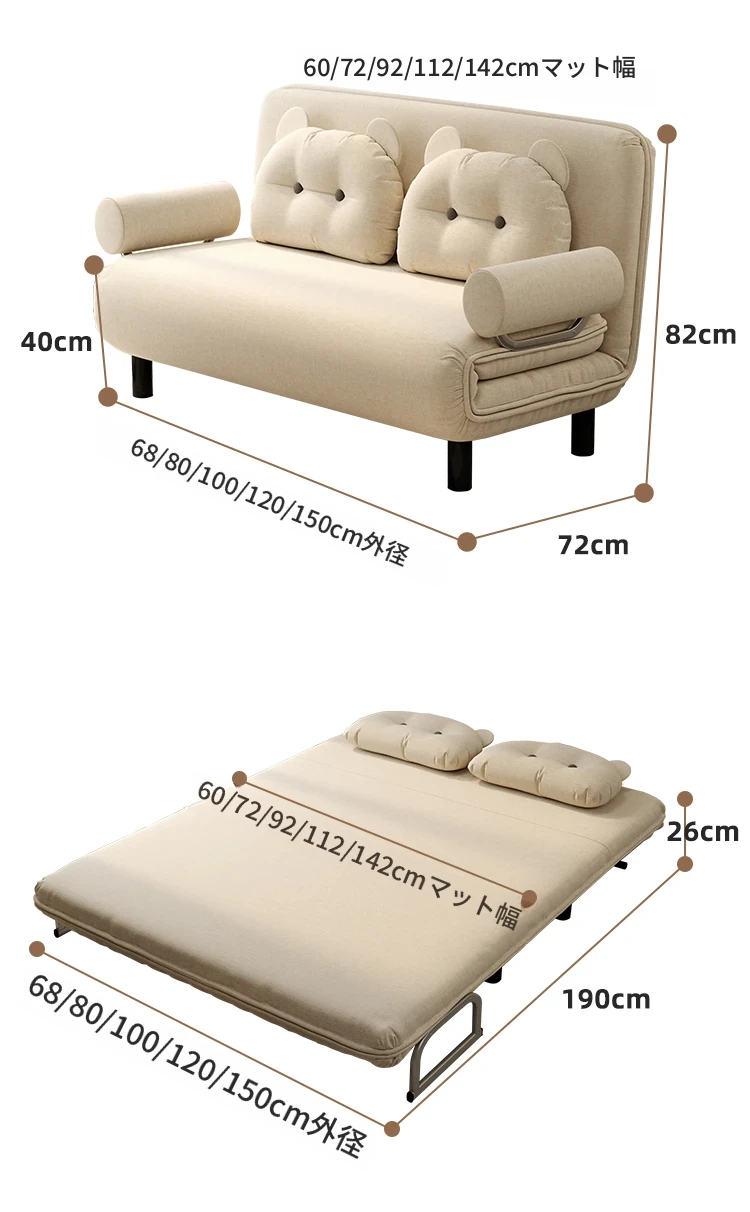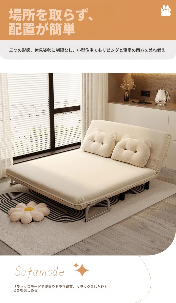シンヤ折りたたみソファベッド - 一人用・二人用の多機能!小型住宅に最適なクマデザインのソファ。リビングや寝室にぴったりのスタイリッシュでコンパクトなアイテム!