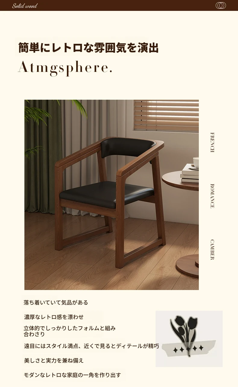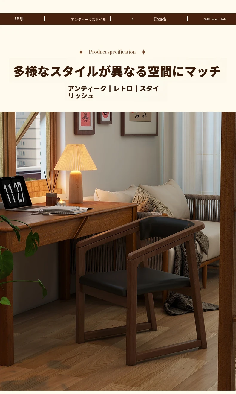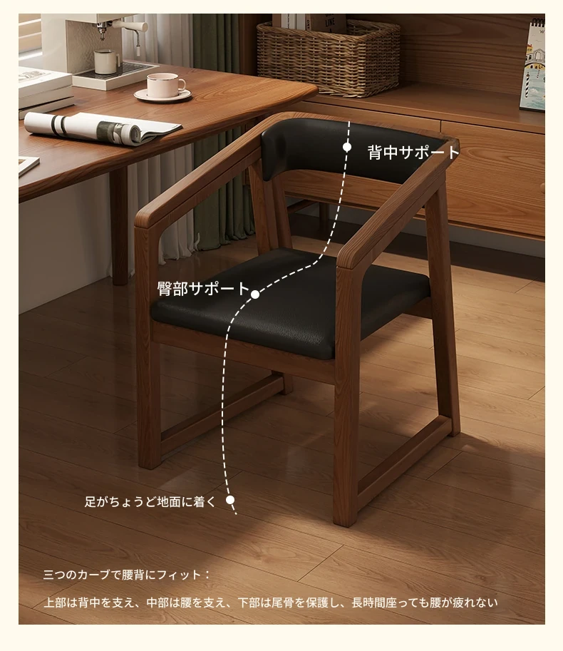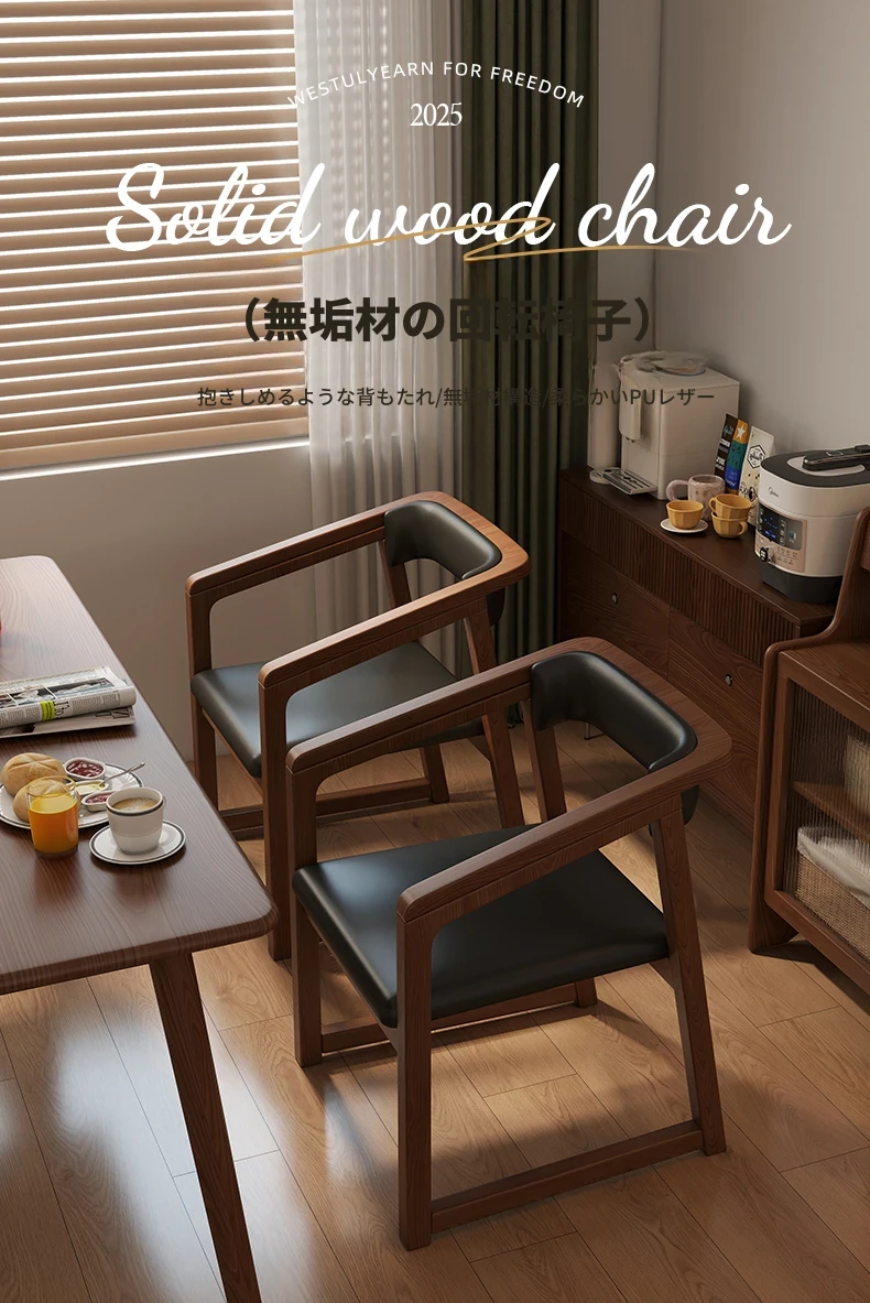 無垢材のダイニングチェア、背もたれ付きで快適な食事体験を提供します。シンプルでありながら洗練されたデザインのレトロなアームチェア、ミニマリストにもぴったりな一品。書斎やカフェでも活躍する、機能性と美しさを兼ね備えたアイテムです。