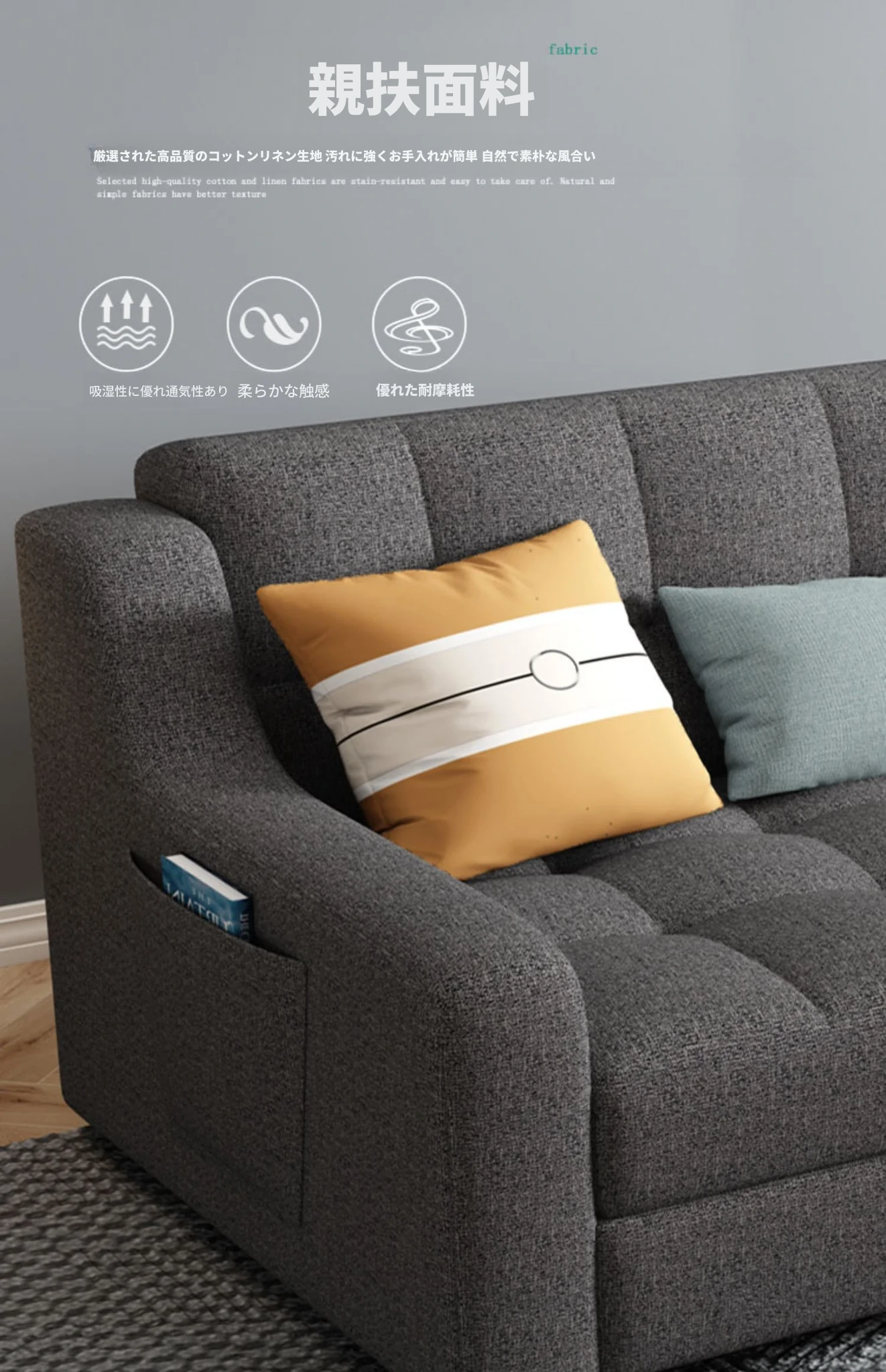 2024年新款!爆売れソファベッド - 多機能で折りたたみ可能!シンプルでモダンなデザイン、リビングにぴったりな小型住宅向け。綿麻素材のダブル&シングルサイズで、快適な睡眠を提供します!