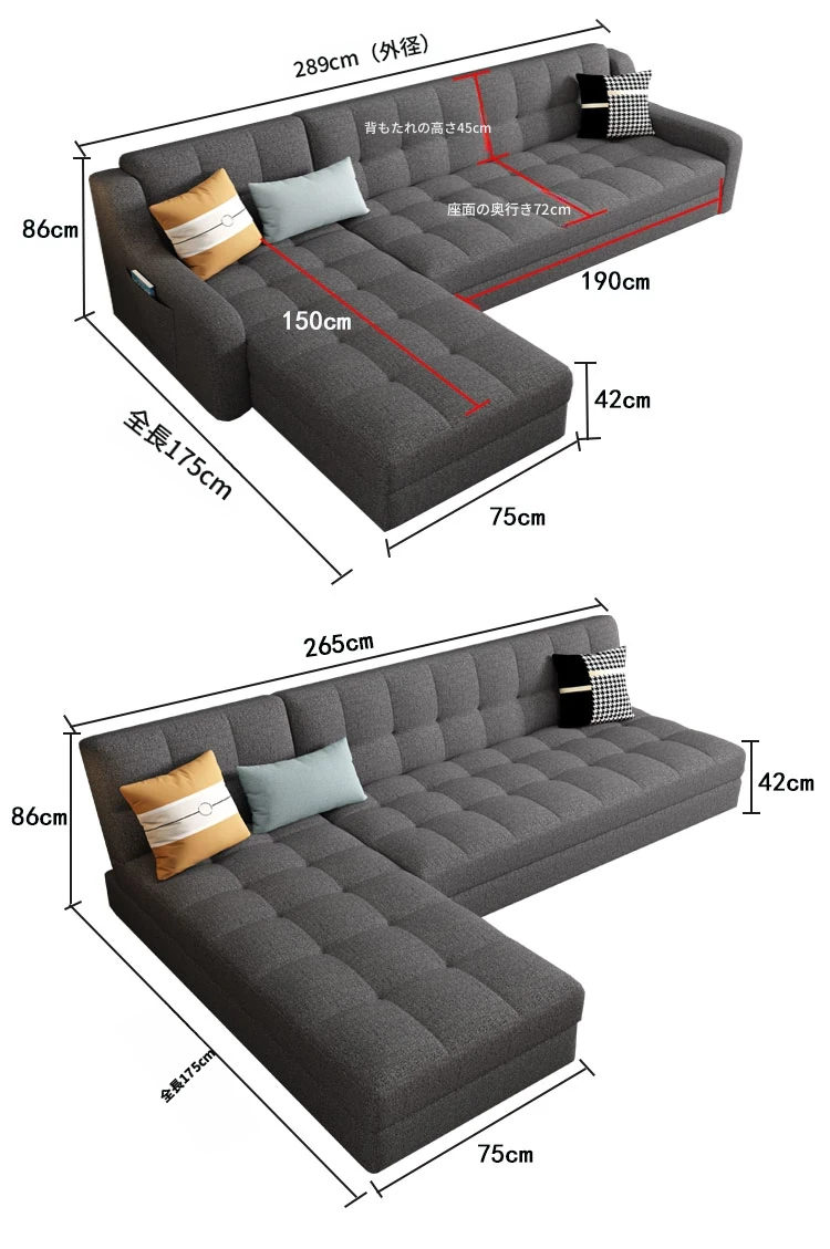 【289CM/ラテックスタイプ】3人掛け+右カウチ