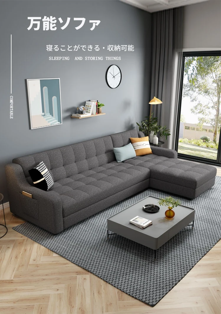 収納力抜群のソファベッド!小さなリビングに最適なダブルサイズ・カウチスタイル、多機能で省スペースな人気モデル。あなたの空間をおしゃれに演出します!