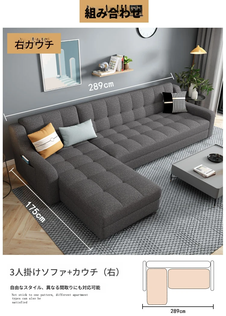 【289CM/スポンジタイプ】3人掛け+右カウチ