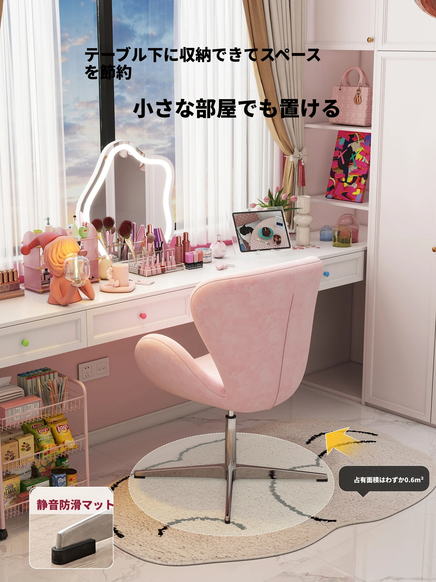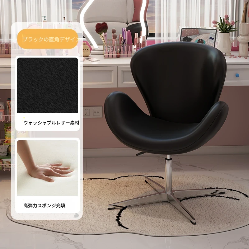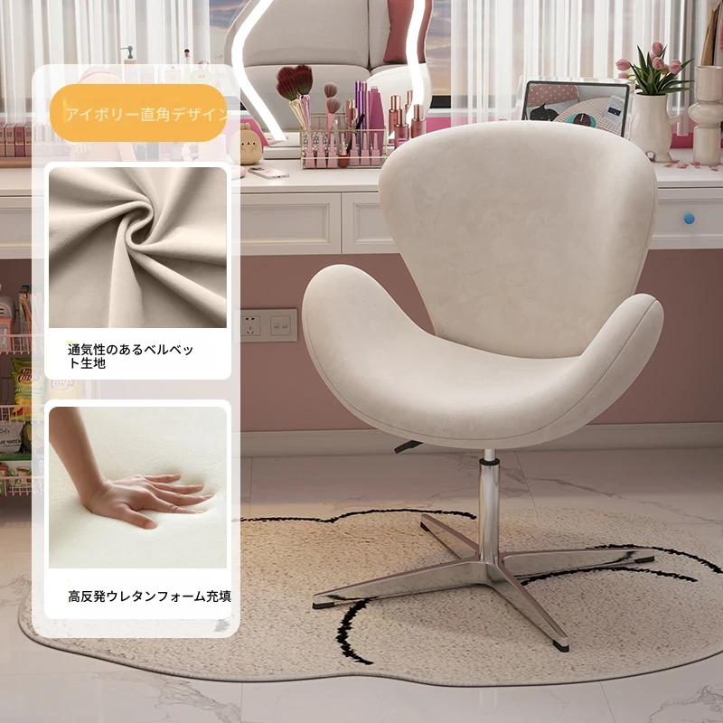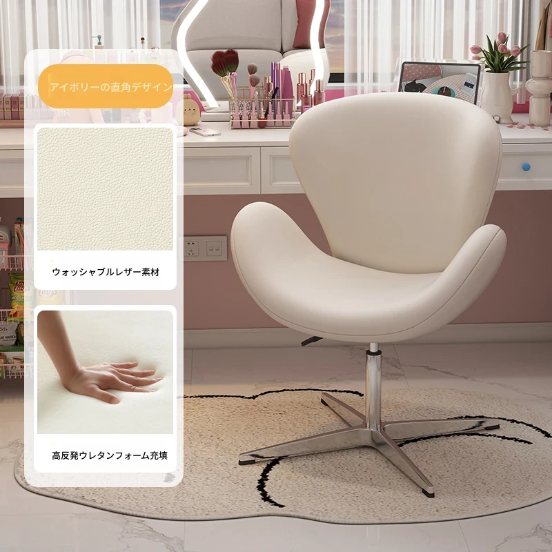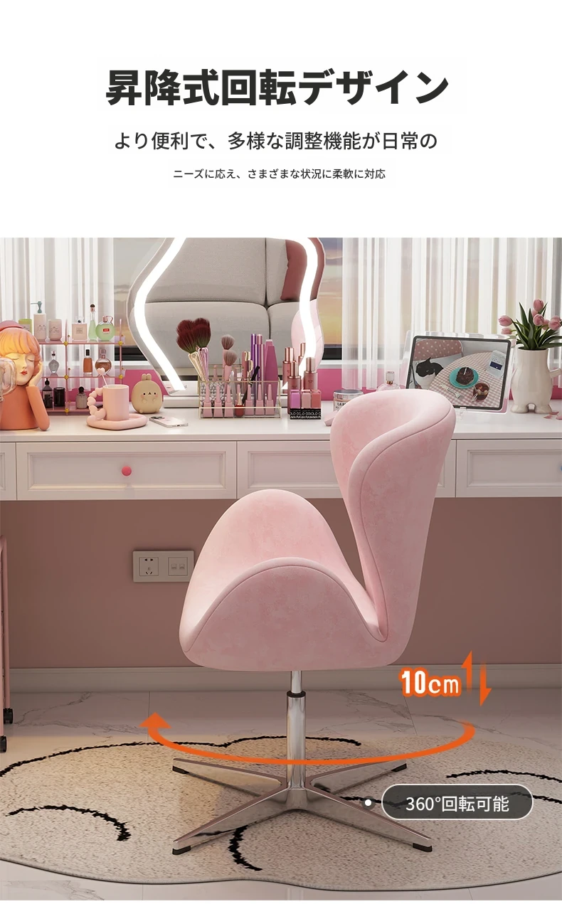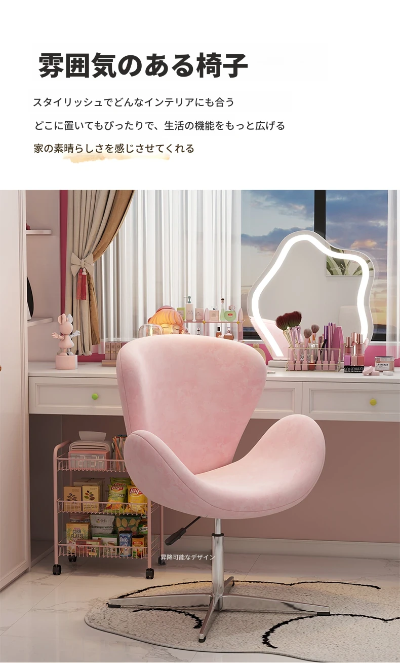家庭用メイク椅子|昇降&回転機能付き|背もたれ付きスワンチェア|おしゃれなドレッシングテーブル用|快適な書斎チェア|あなたのメイクタイムを特別に演出します!