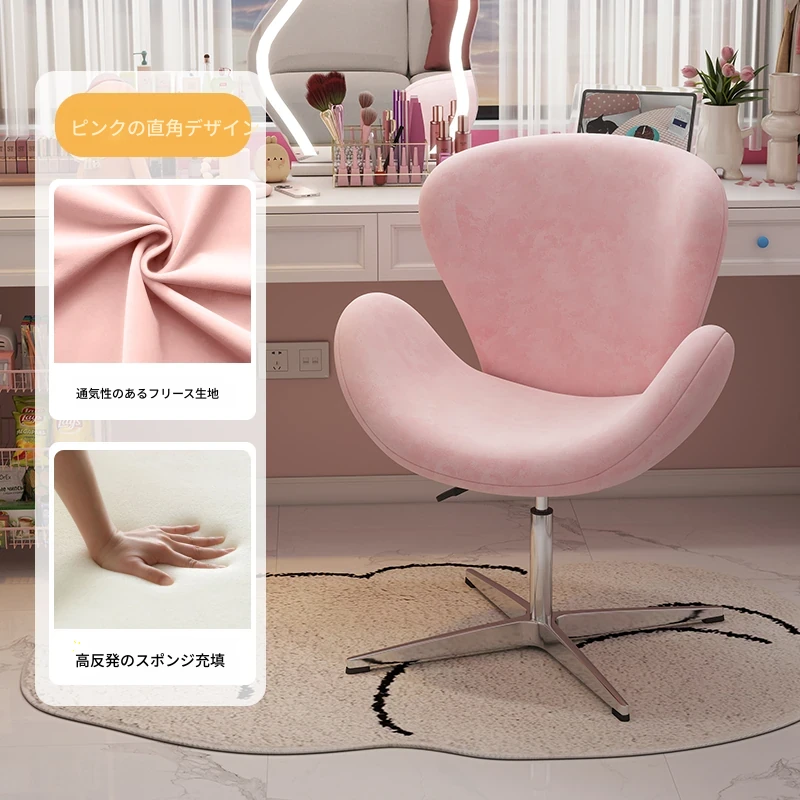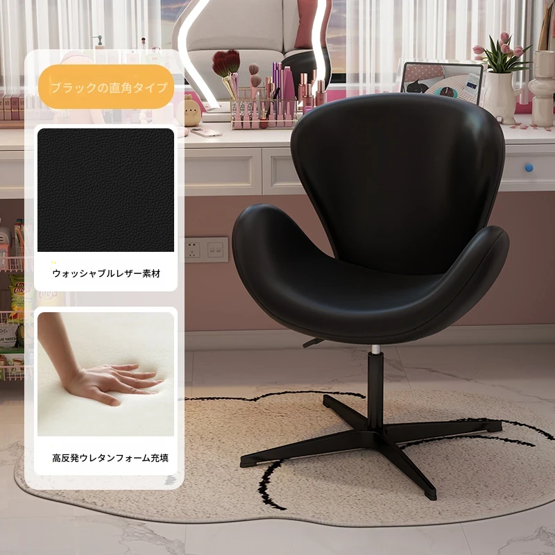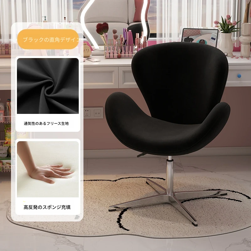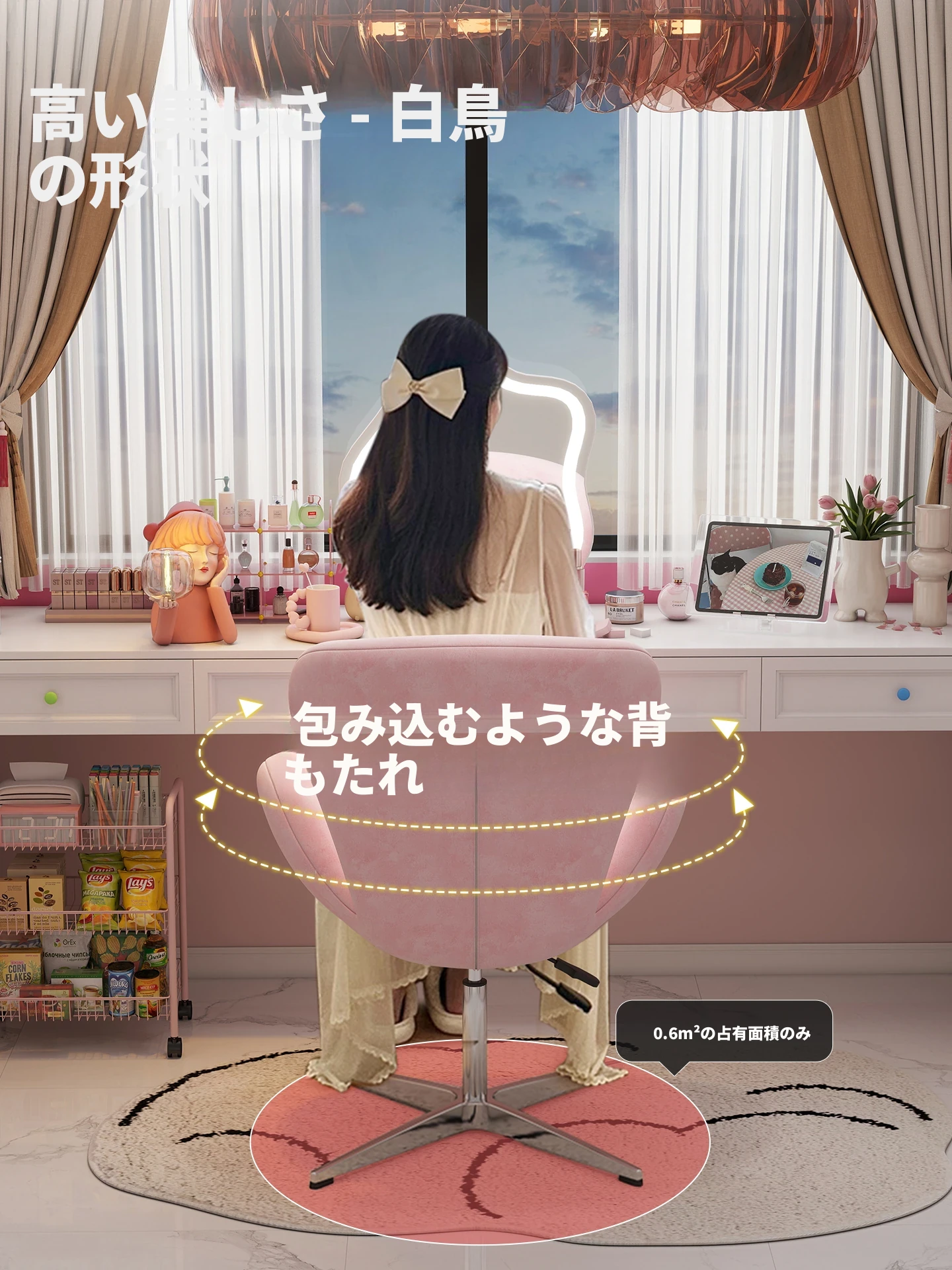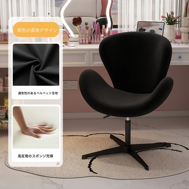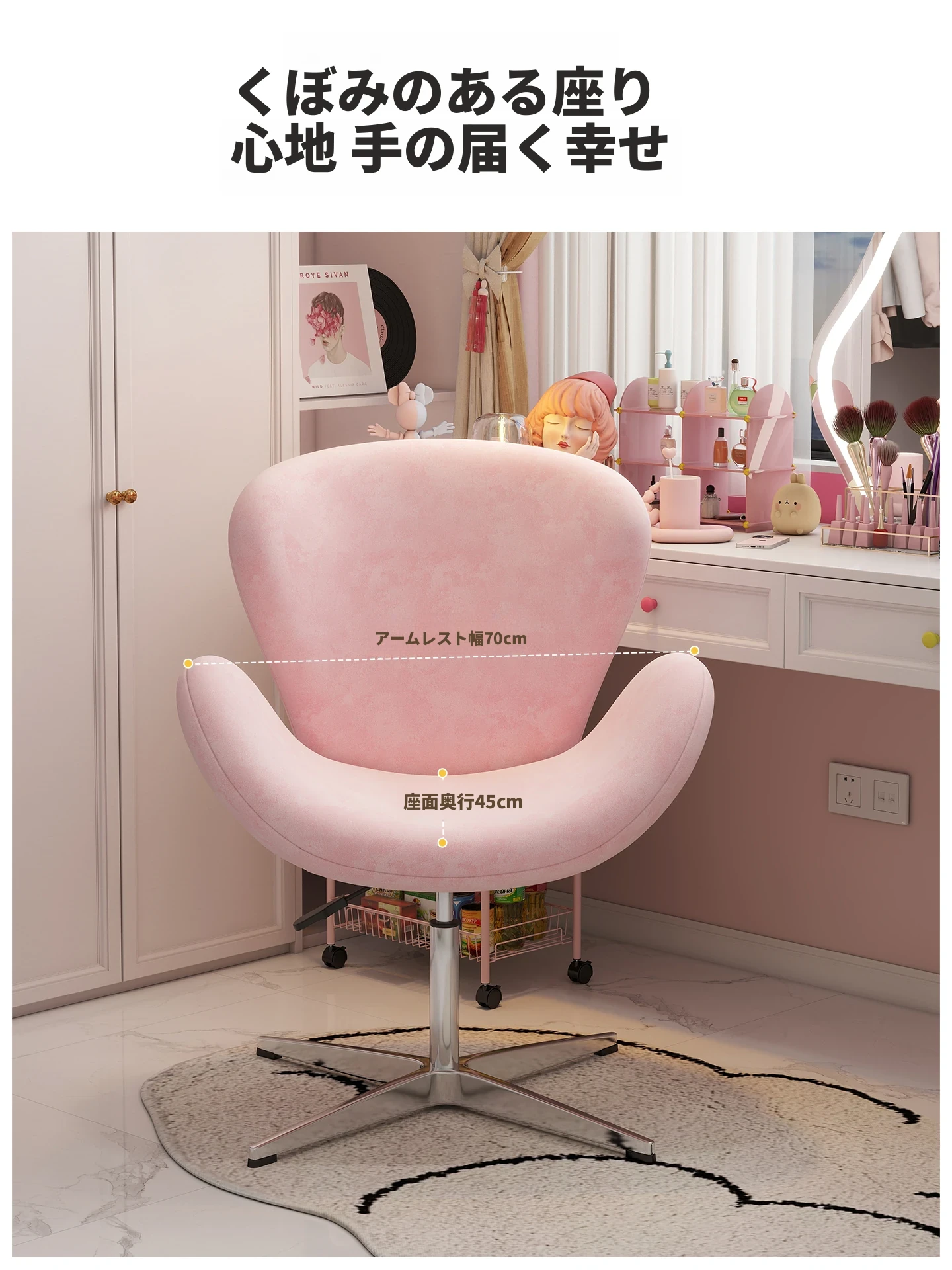 家庭用メイク椅子|昇降&回転機能付き|背もたれ付きスワンチェア|おしゃれなドレッシングテーブル用|快適な書斎チェア|あなたのメイクタイムを特別に演出します!