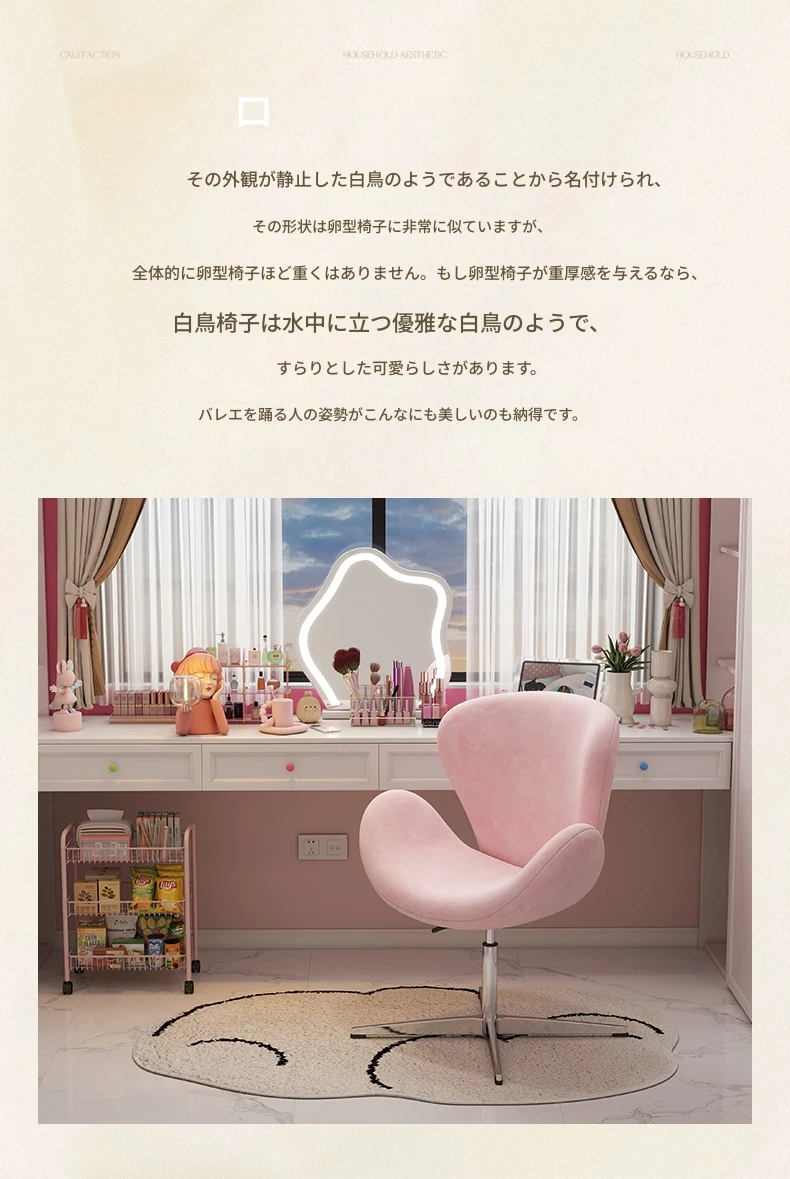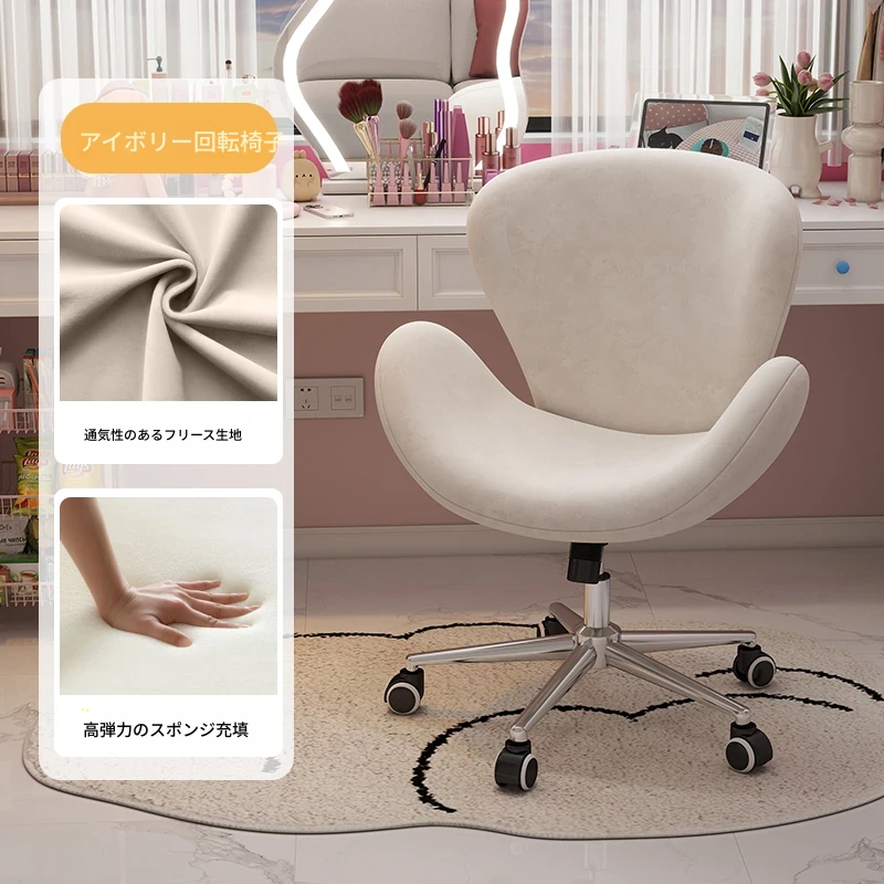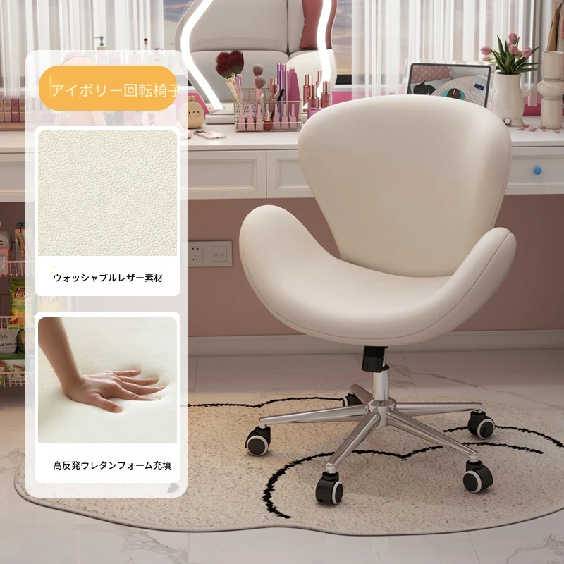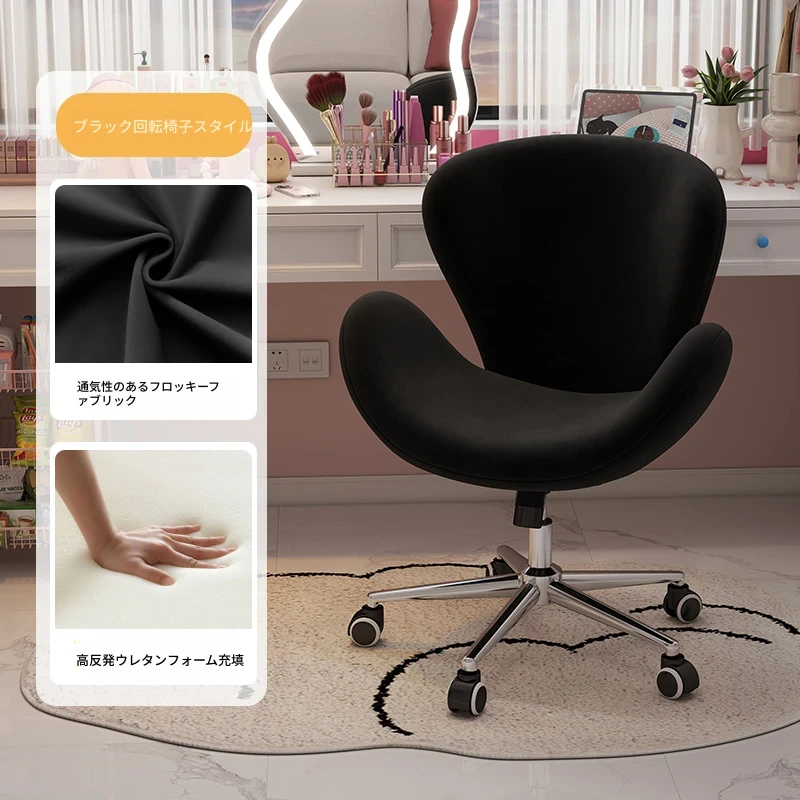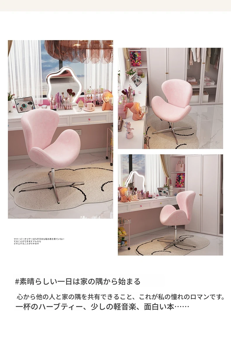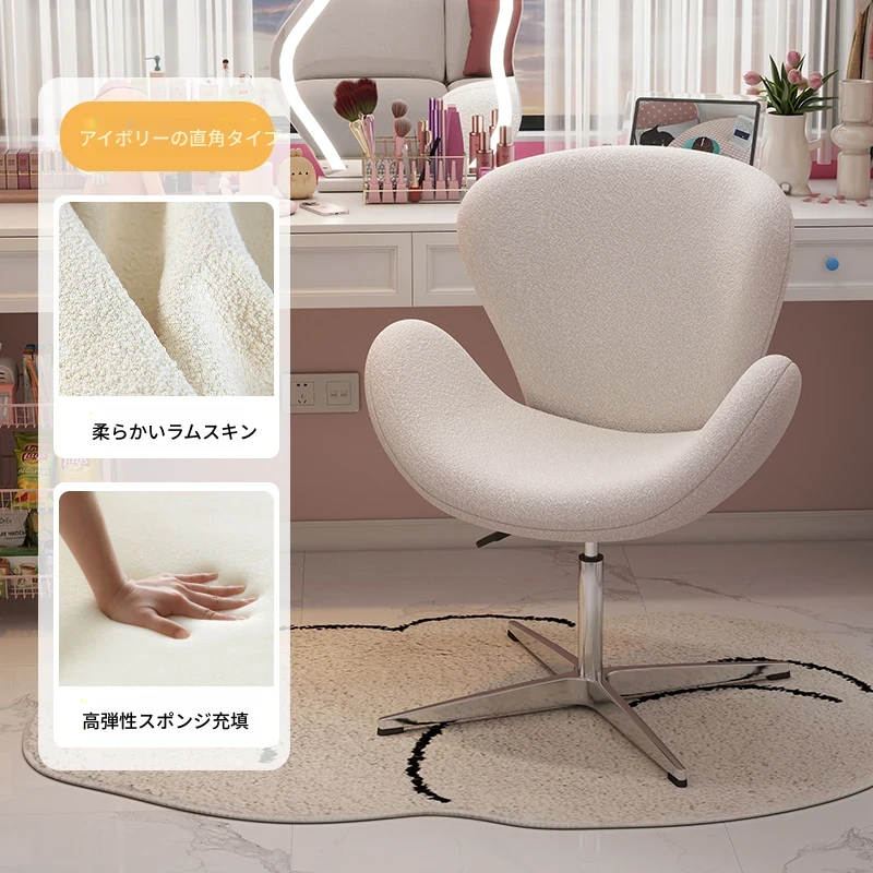 家庭用メイク椅子|昇降&回転機能付き|背もたれ付きスワンチェア|おしゃれなドレッシングテーブル用|快適な書斎チェア|あなたのメイクタイムを特別に演出します!