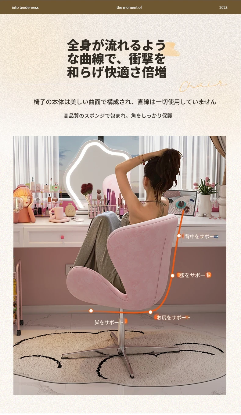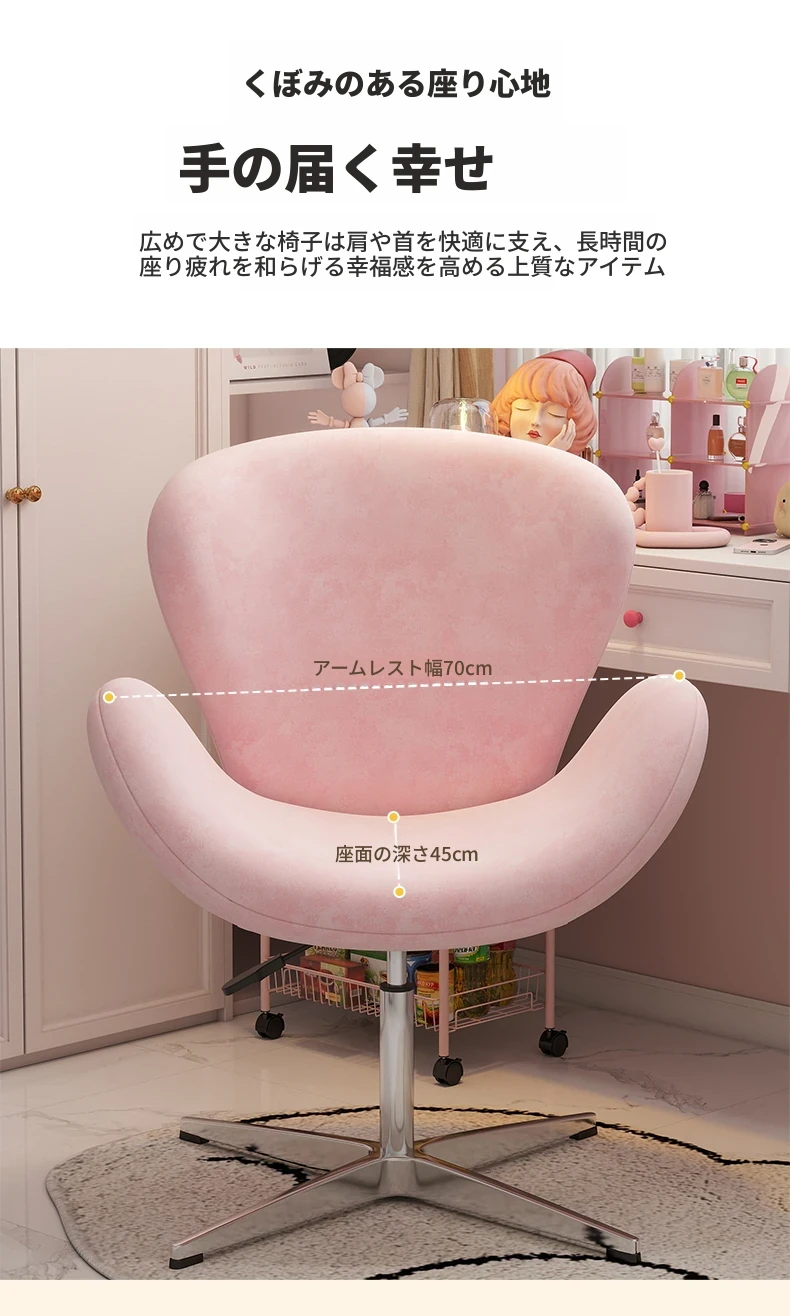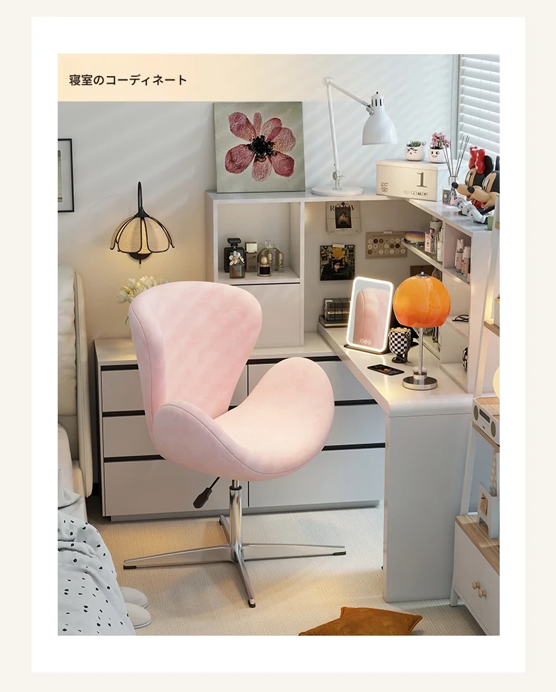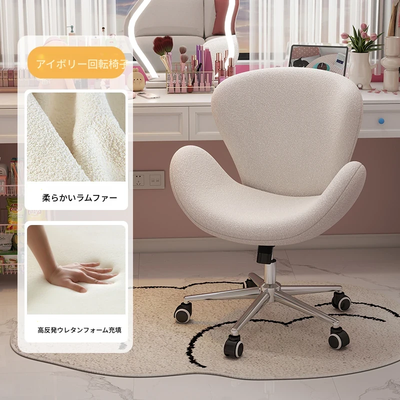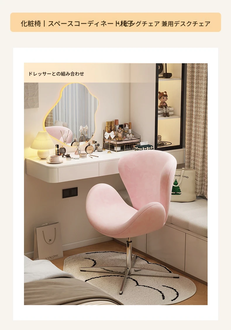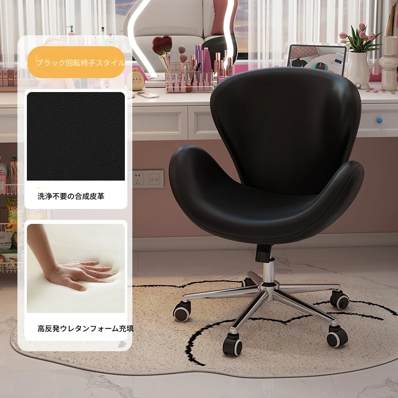 家庭用メイク椅子|昇降&回転機能付き|背もたれ付きスワンチェア|おしゃれなドレッシングテーブル用|快適な書斎チェア|あなたのメイクタイムを特別に演出します!