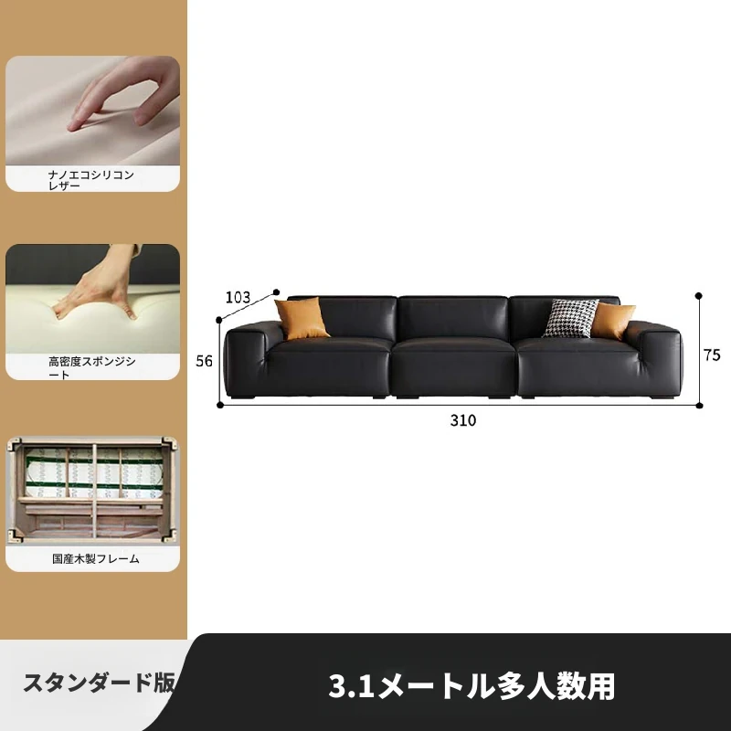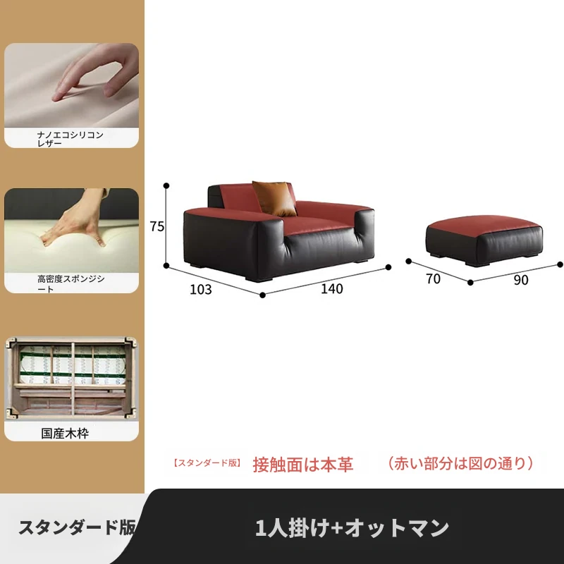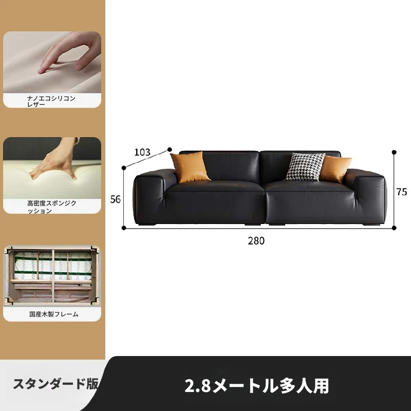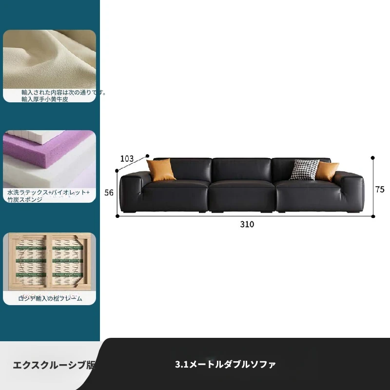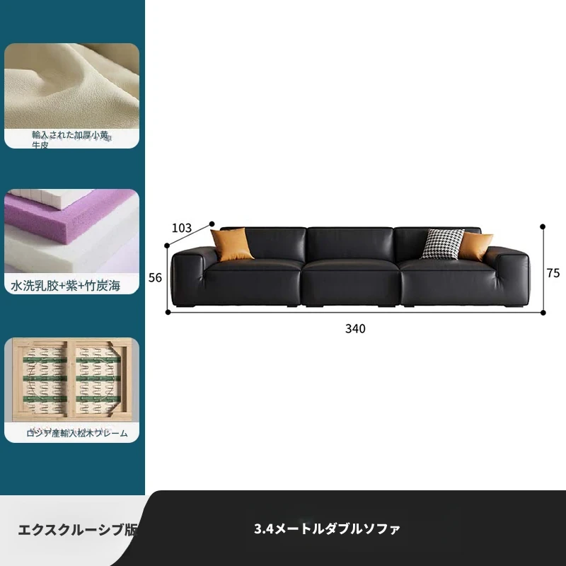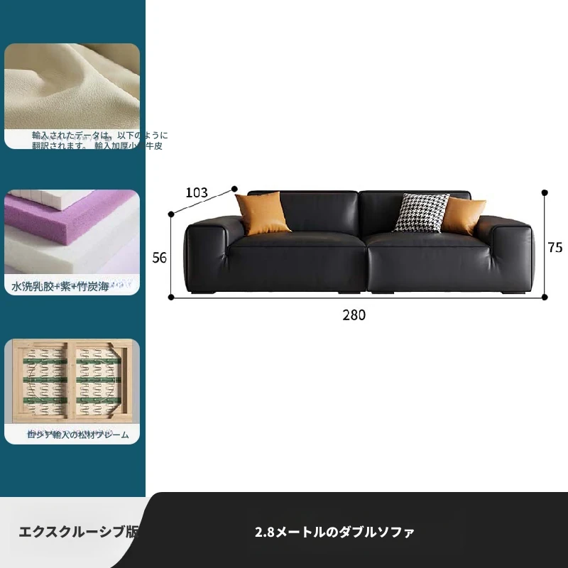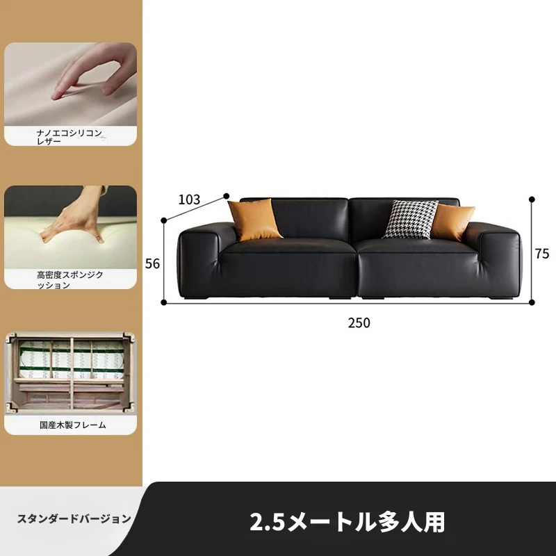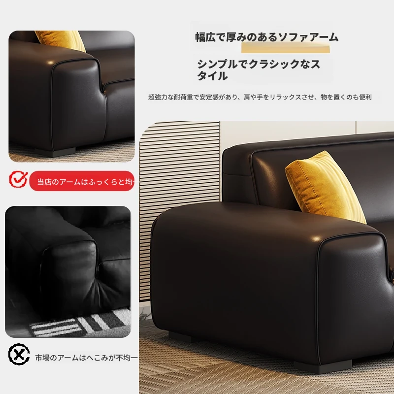 大黒牛本革ソファー|高級一層牛革使用|シンプルなイタリアンデザイン|豆腐ブロック形状|2025年モデル|小型住宅に最適!おしゃれで快適なリビング空間を演出します。