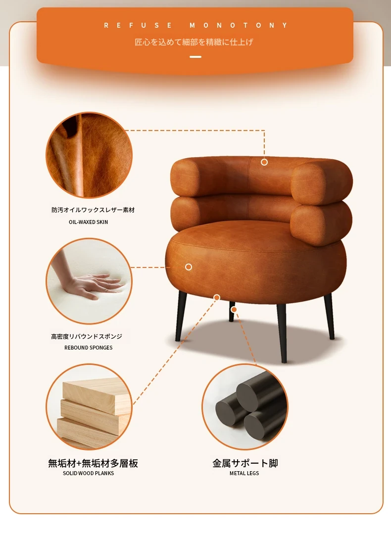 一人用ソファチェア|高級感漂うデザイン|リビングやバルコニーに最適|クリエイティブなリラックスチェア|シンプルモダンなホテルの受付や会談用にもぴったり!