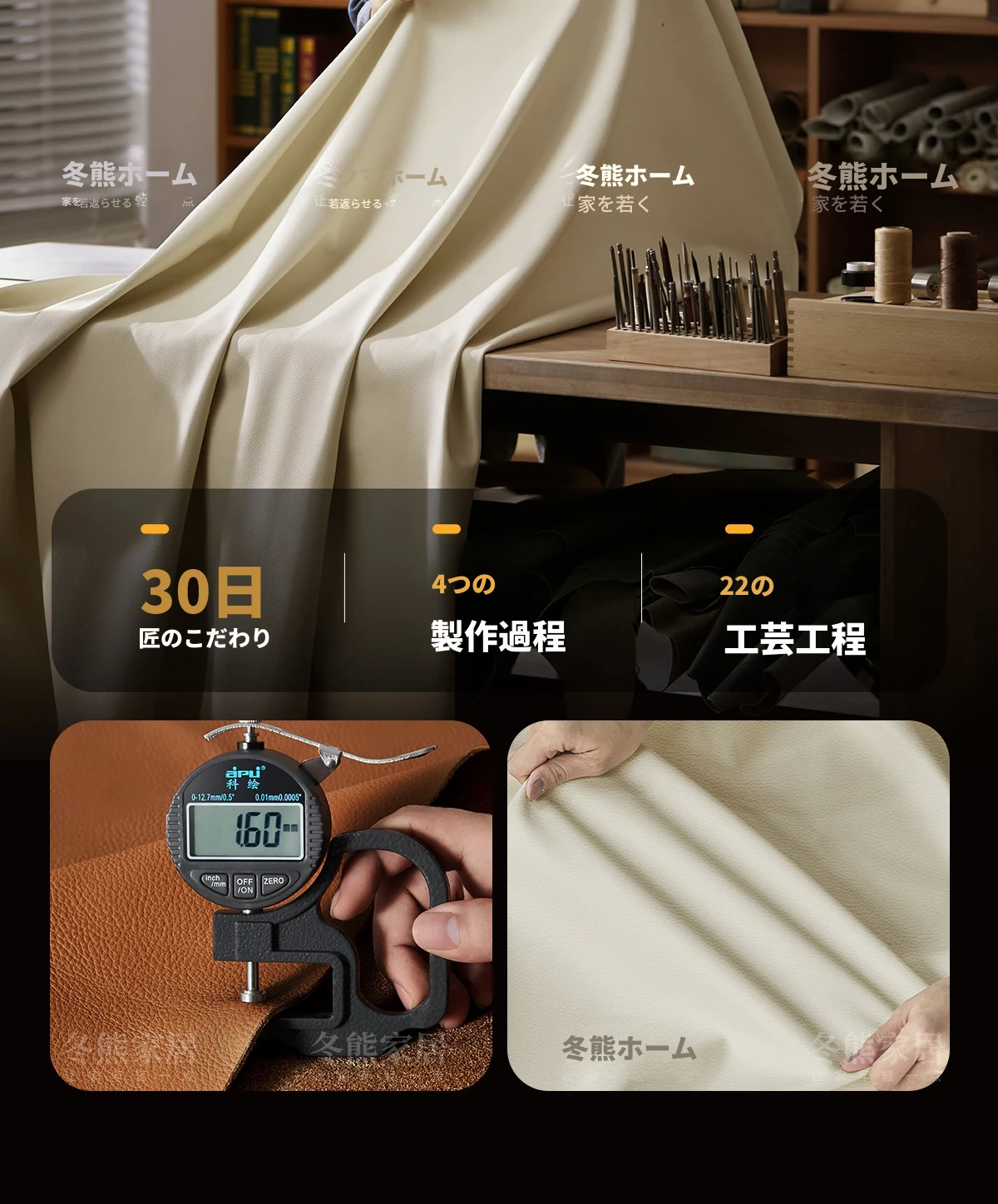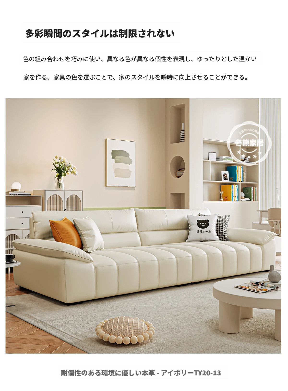 本革【ラテックス+4CMバイオレット+高密度スポンジ】【環境に優しい本革アイボリーホワイト】