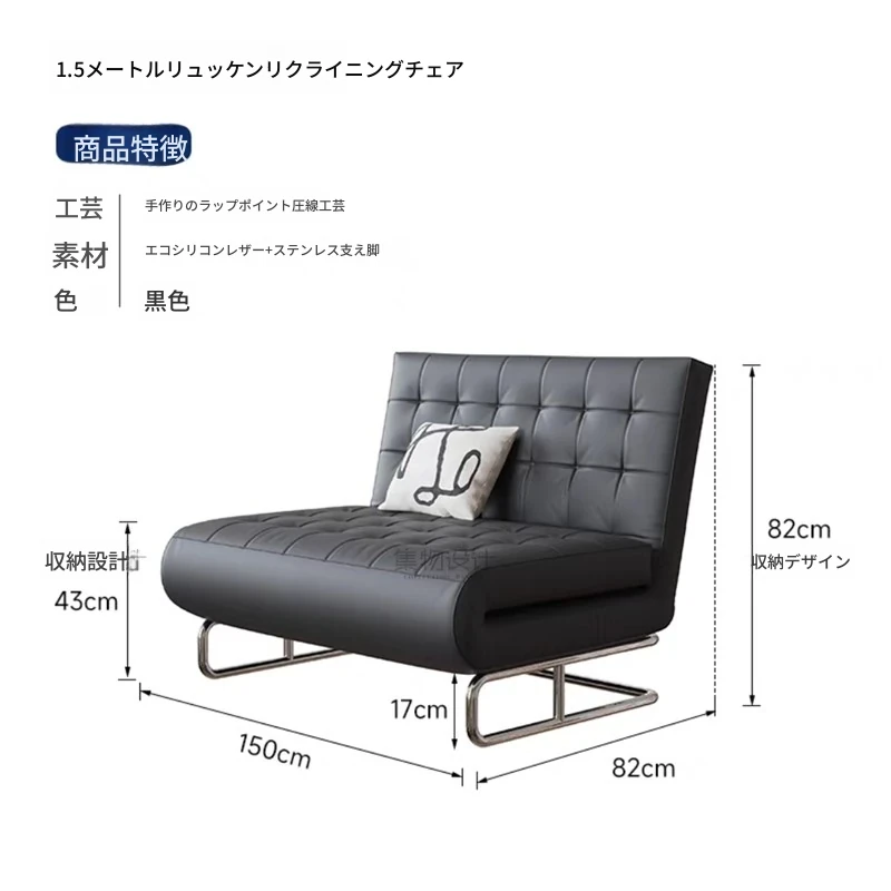 人気の折りたたみ式リクライニングチェア!座っても寝ても快適な一人用ソファベッド。スタイリッシュなブラック、バルコニーにもぴったりなリラックスチェア。どんなシーンにもフィットするデザインです!