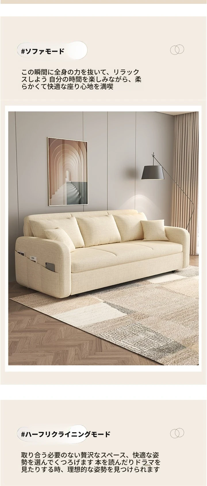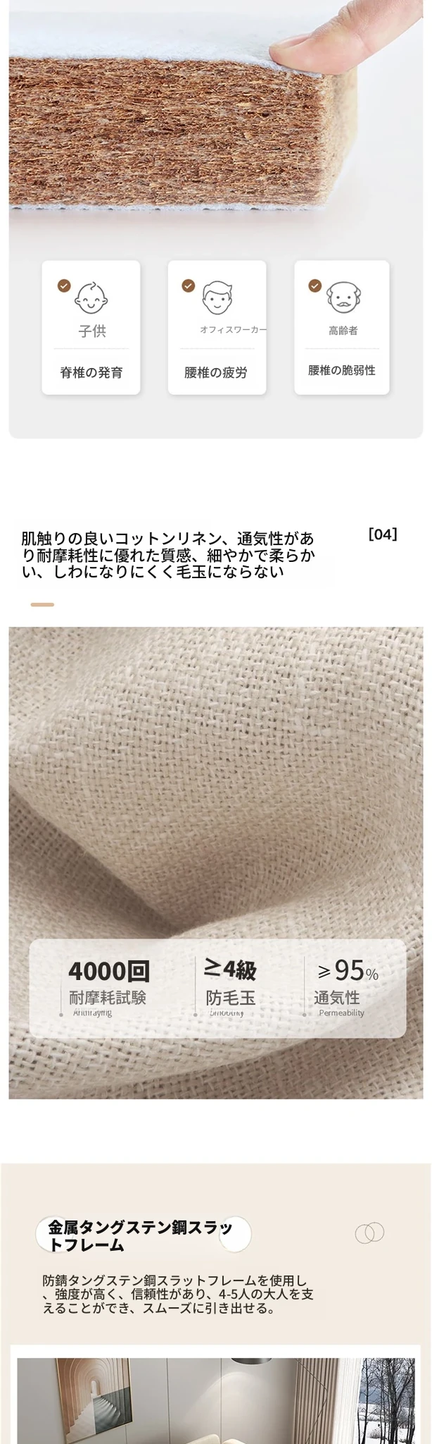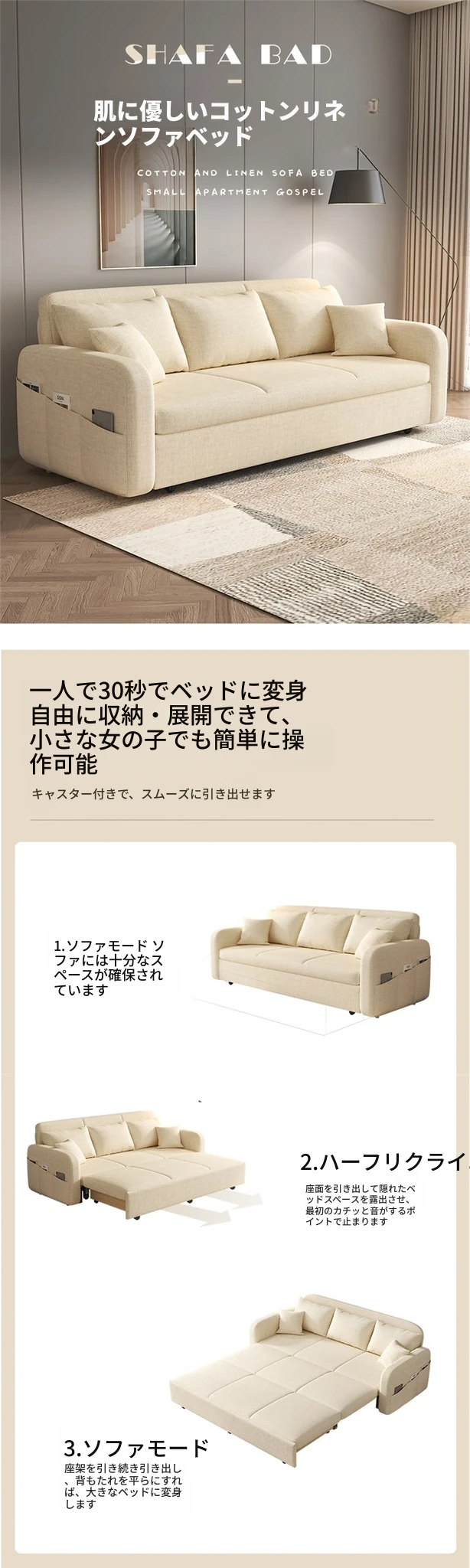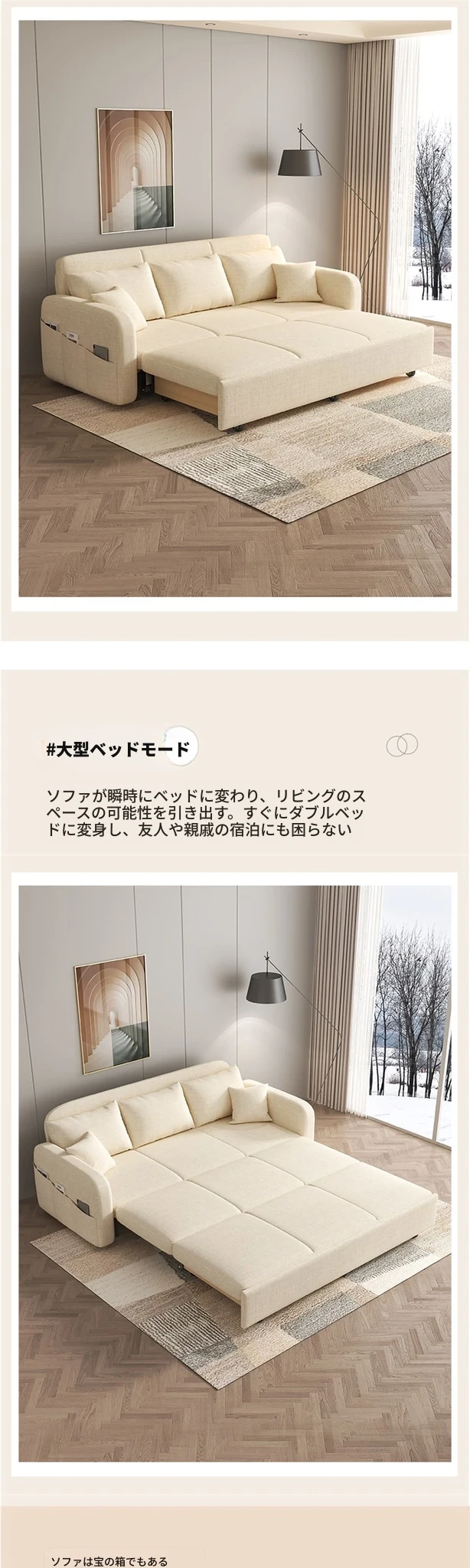 2024年新款!爆売れソファベッド - 多機能で折りたたみ可能!シンプルでモダンなデザイン、リビングにぴったりな小型住宅向け。綿麻素材のダブル&シングルサイズで、快適な睡眠を提供します!