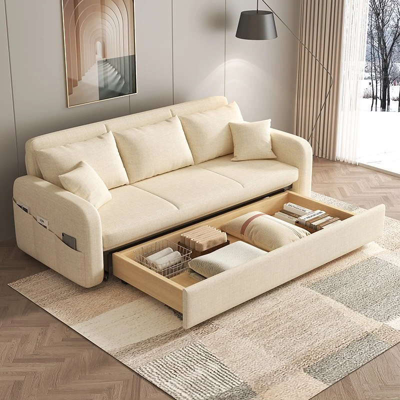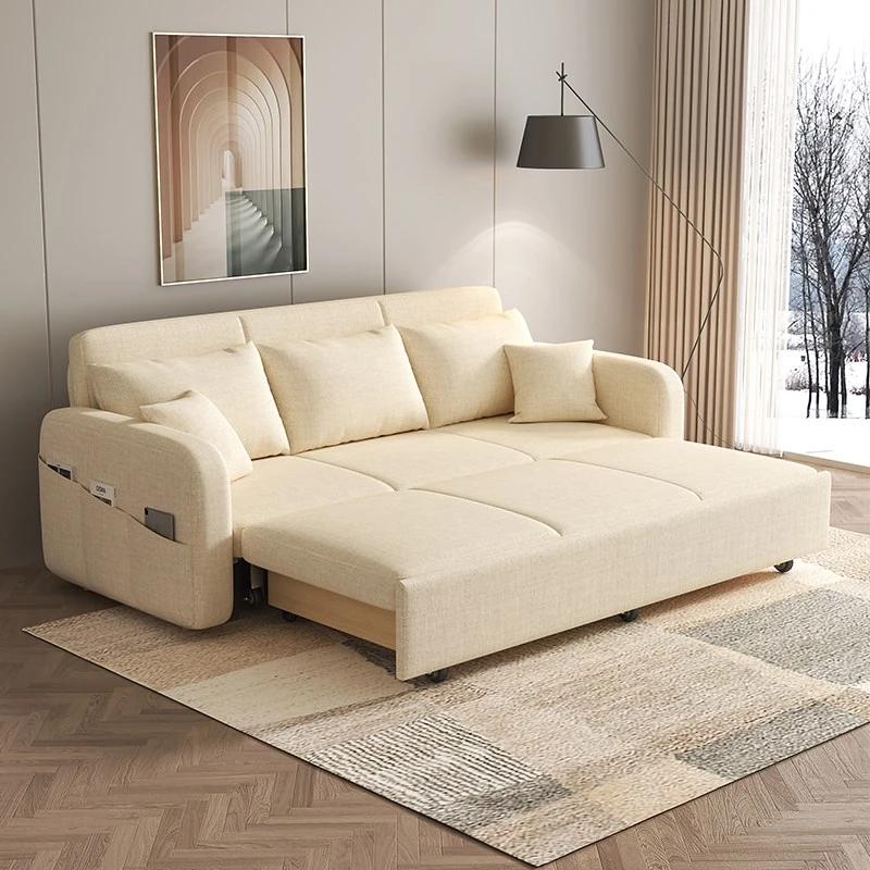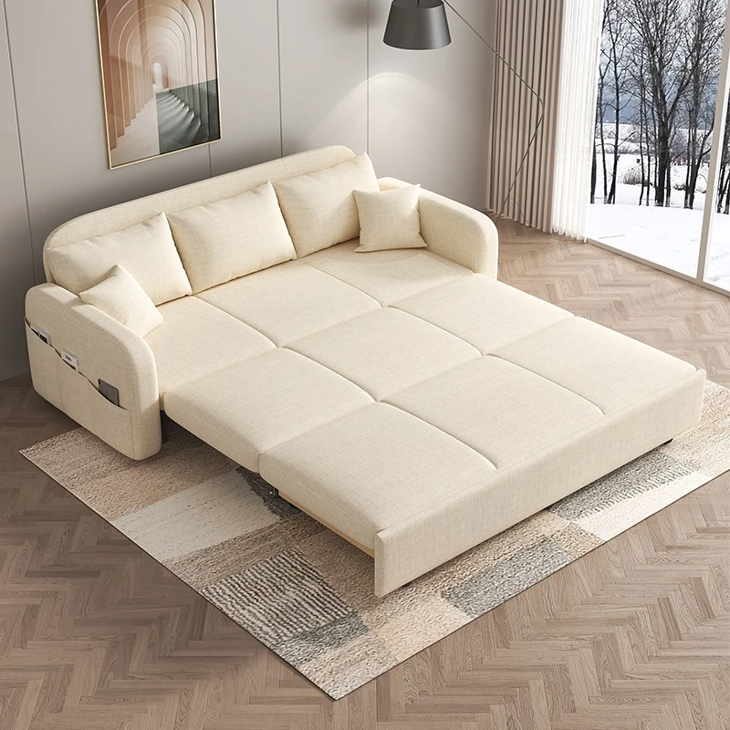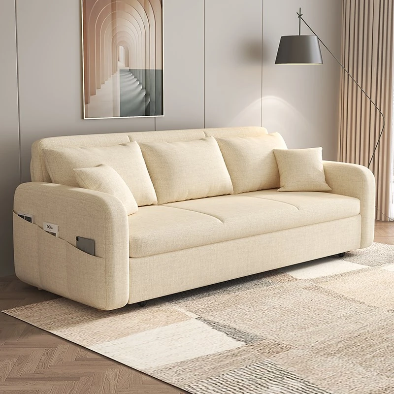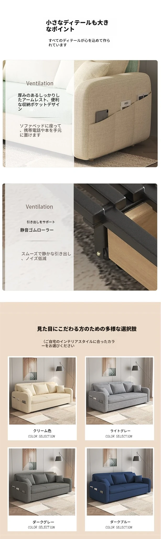 2024年新款!爆売れソファベッド - 多機能で折りたたみ可能!シンプルでモダンなデザイン、リビングにぴったりな小型住宅向け。綿麻素材のダブル&シングルサイズで、快適な睡眠を提供します!