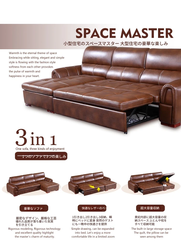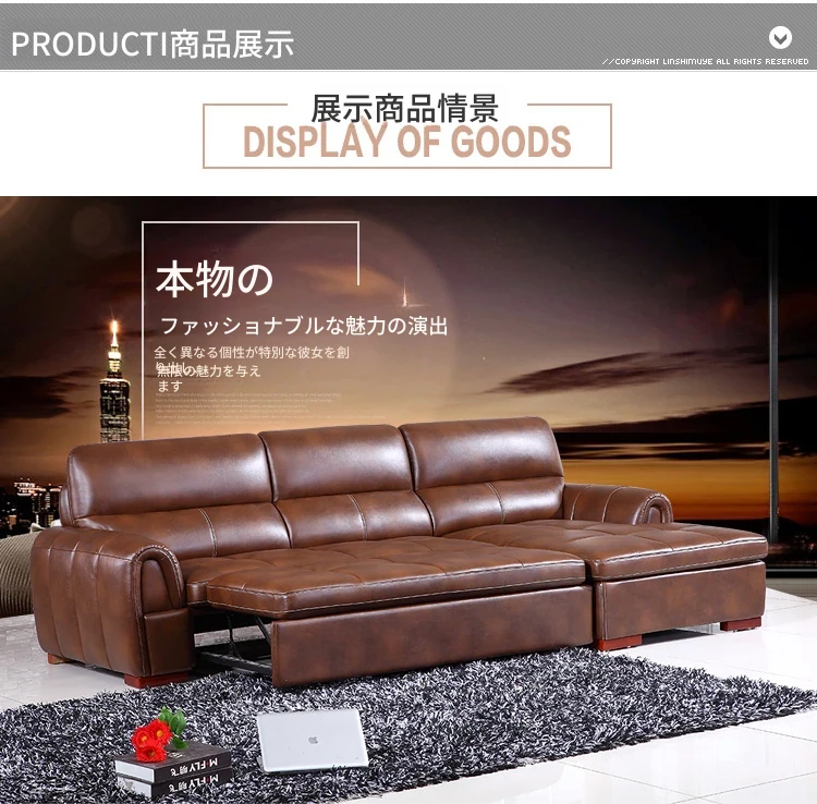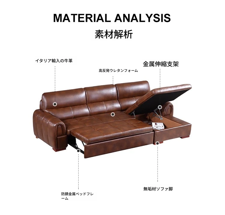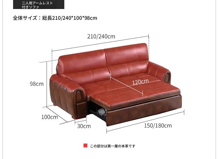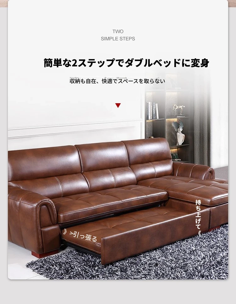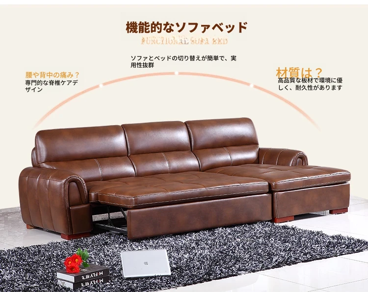 多機能小型リビング用直置きソファベッド|オフィスにも最適!高級本革使用の3人掛けソファで快適な空間を実現!