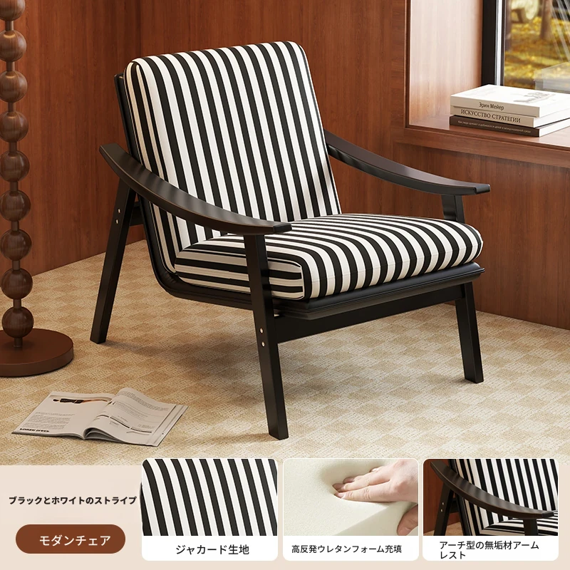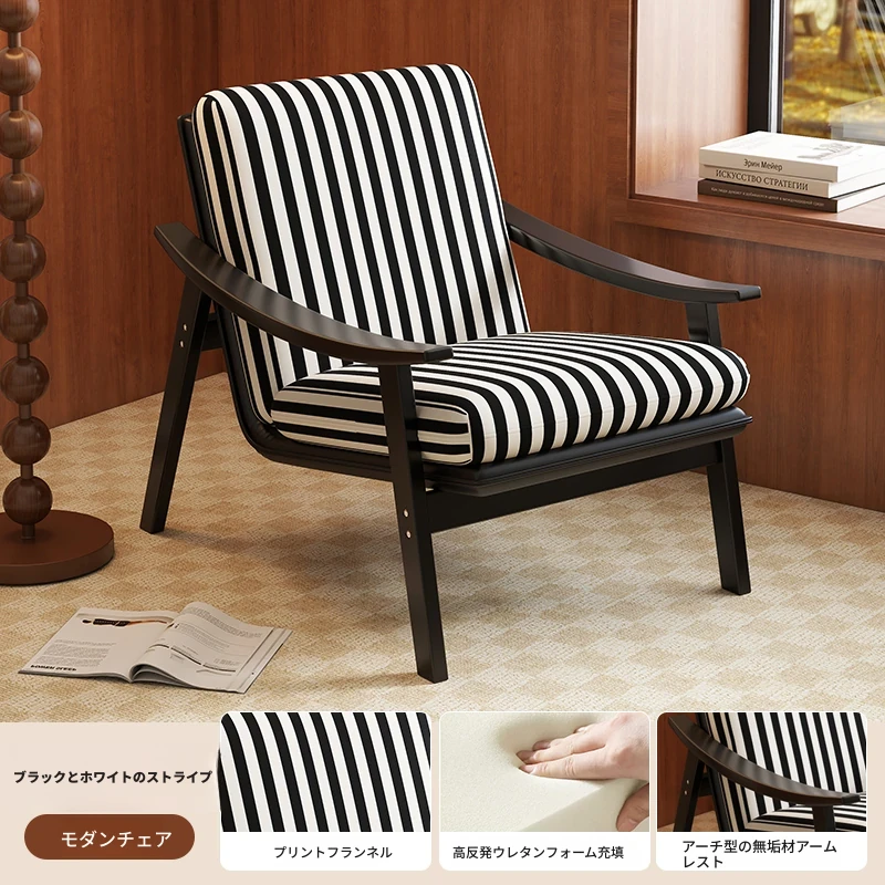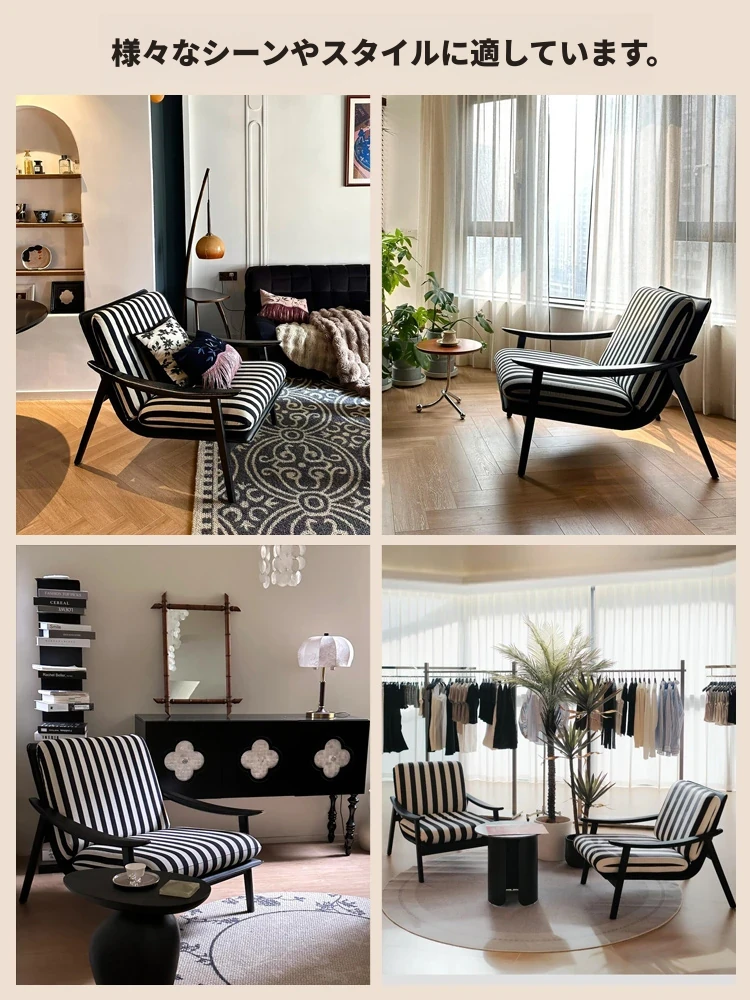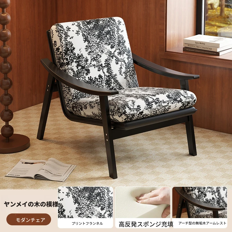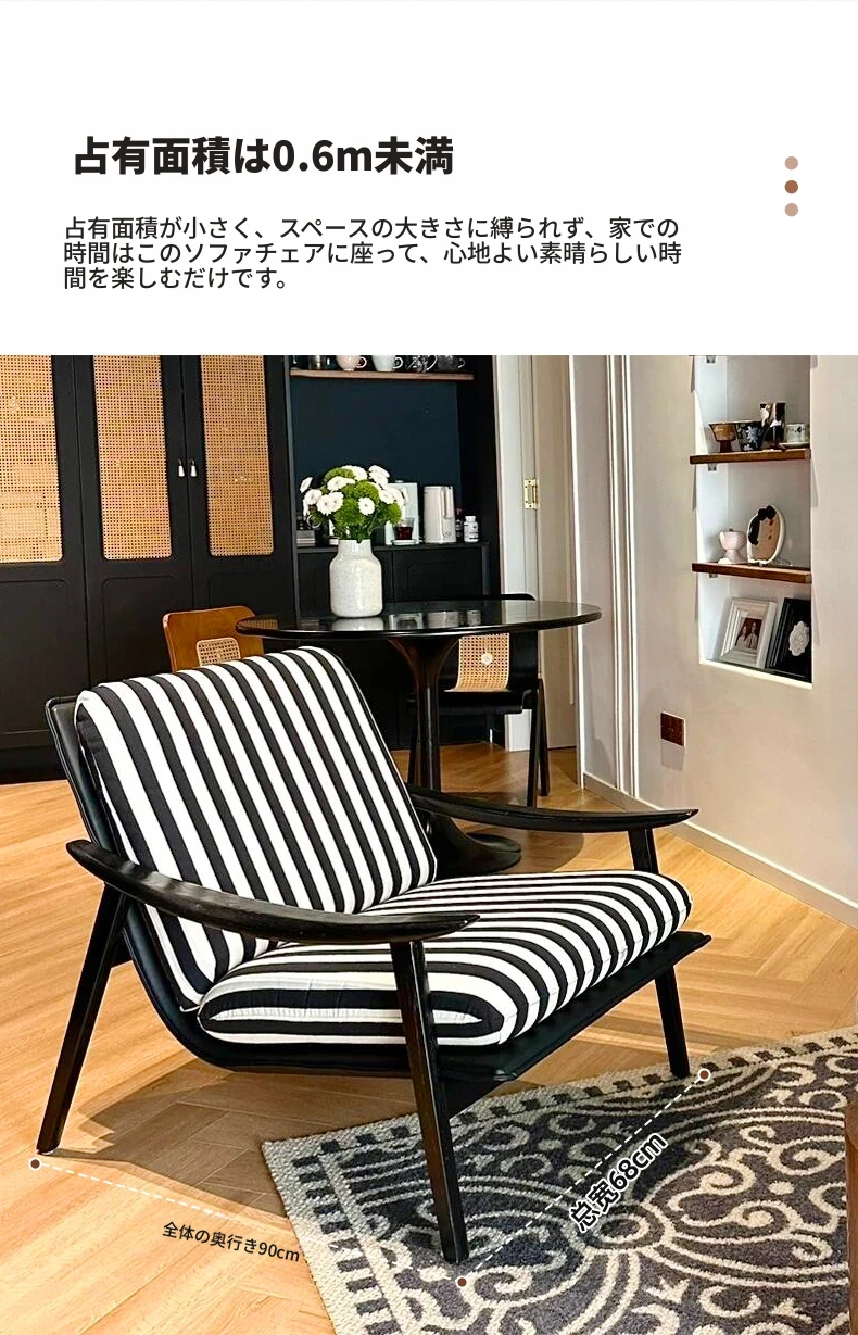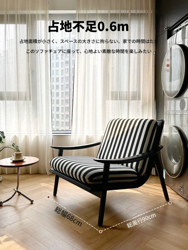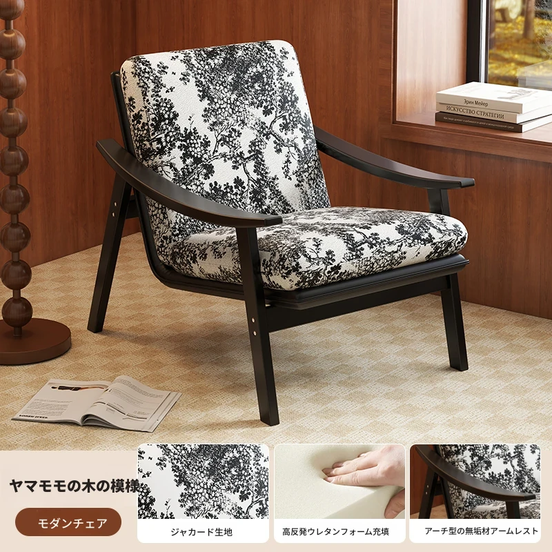 ヴィンテージ風デザインの一人掛けソファチェア - 木製フレームで作られたフレンチモダンスタイル、リビングやバルコニーにぴったり!レトロでおしゃれなくつろぎスペースを演出します。