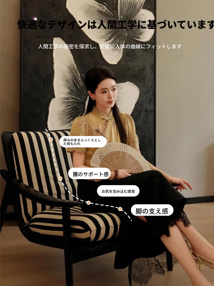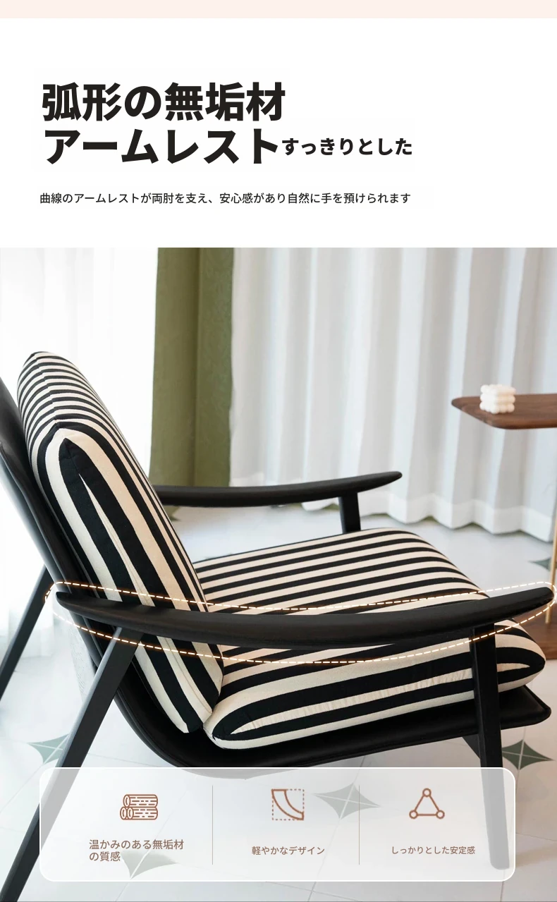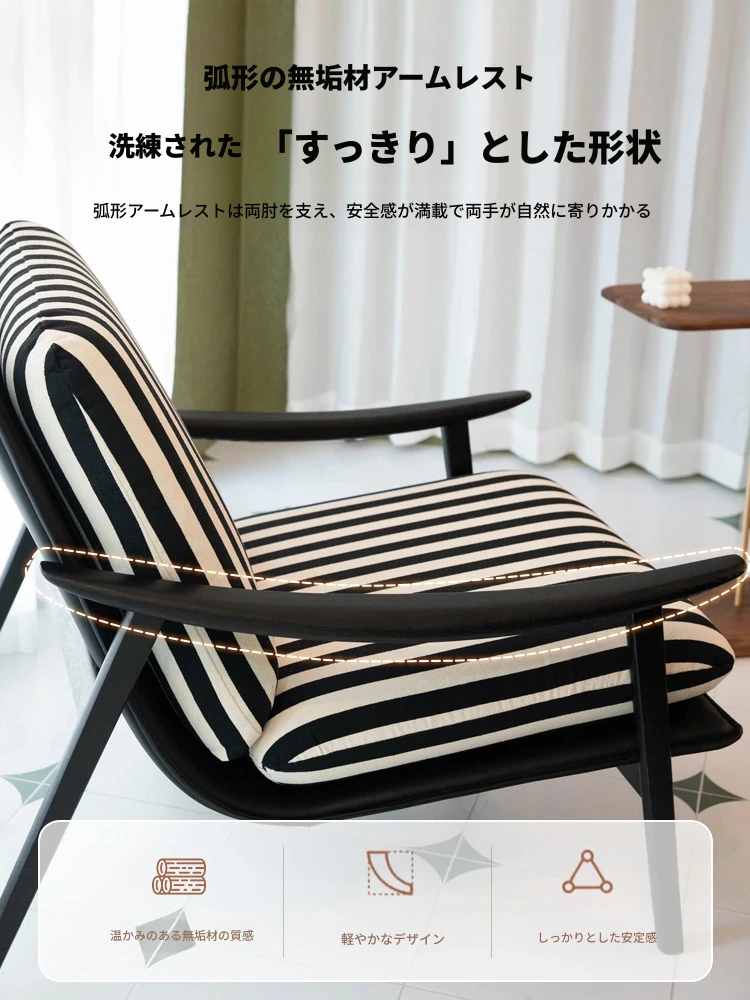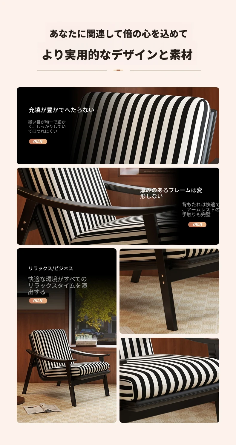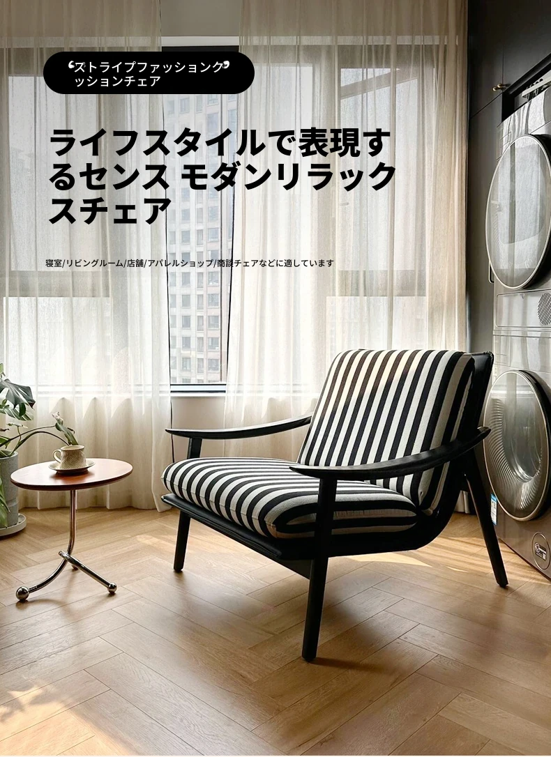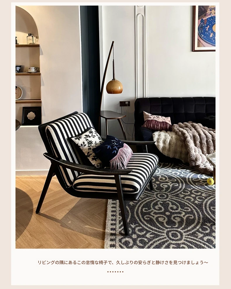 ヴィンテージ風デザインの一人掛けソファチェア - 木製フレームで作られたフレンチモダンスタイル、リビングやバルコニーにぴったり!レトロでおしゃれなくつろぎスペースを演出します。