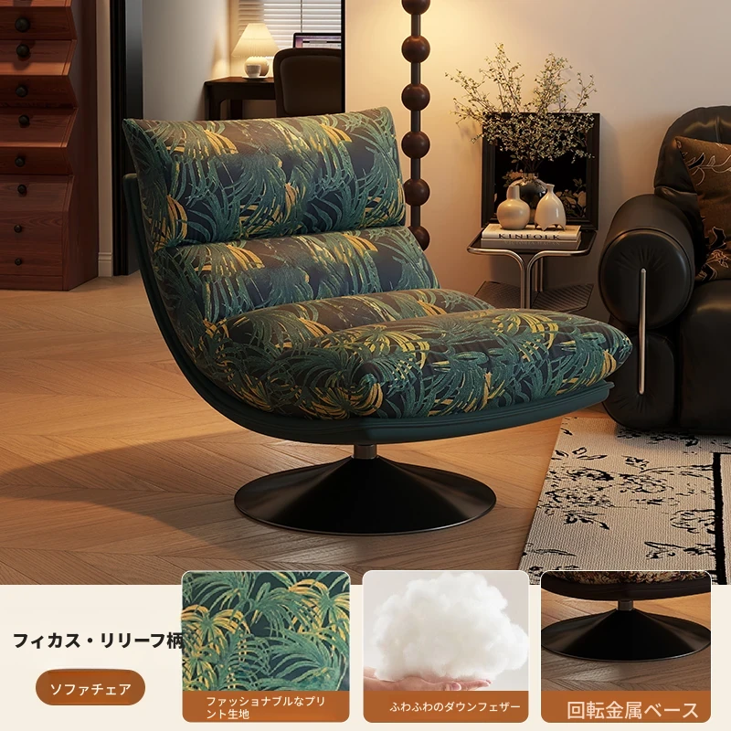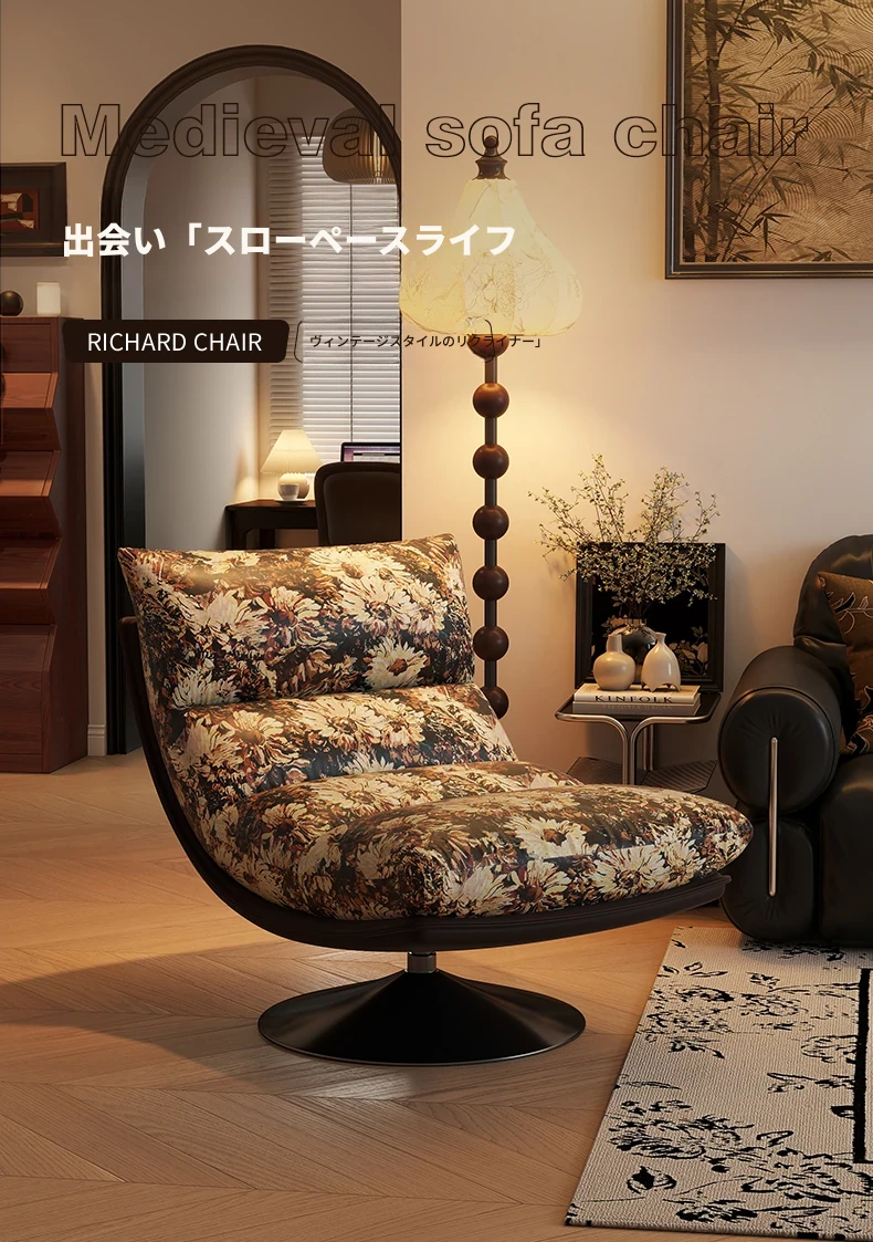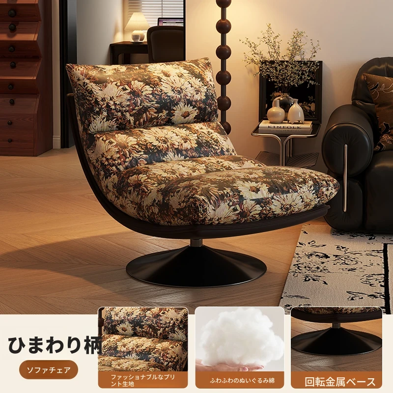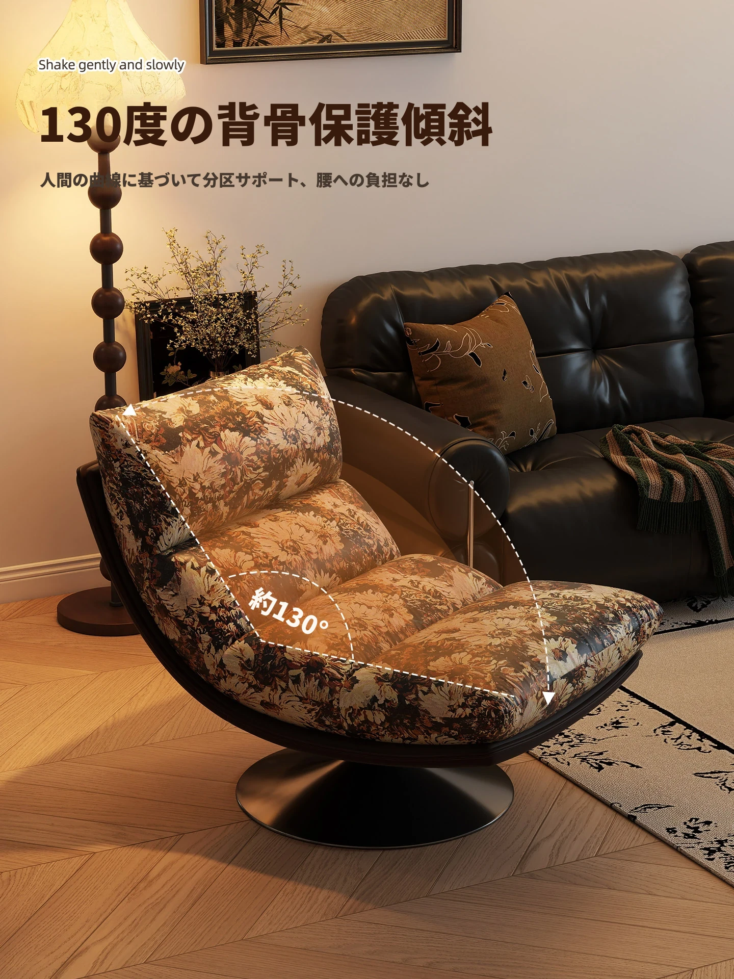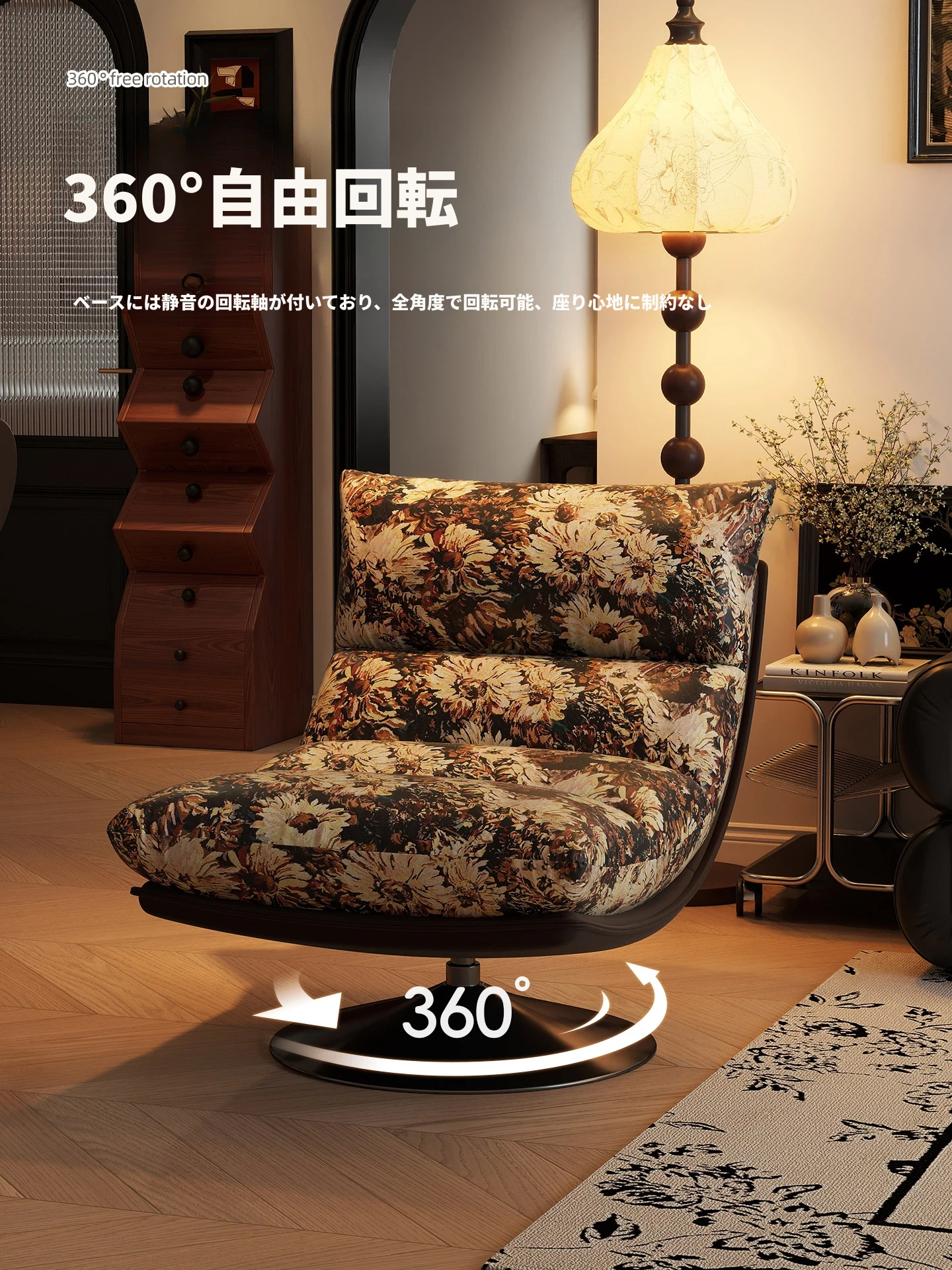 レトロな一人用ソファチェア - 中古風デザイン、回転機能付き!快適なリビングやバルコニーにぴったりのリラックスした背もたれ椅子。おしゃれで機能的、あなたの空間に個性をプラス!