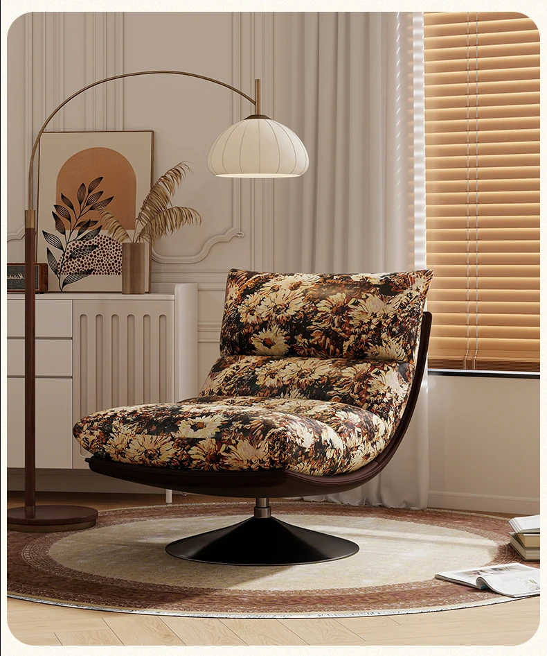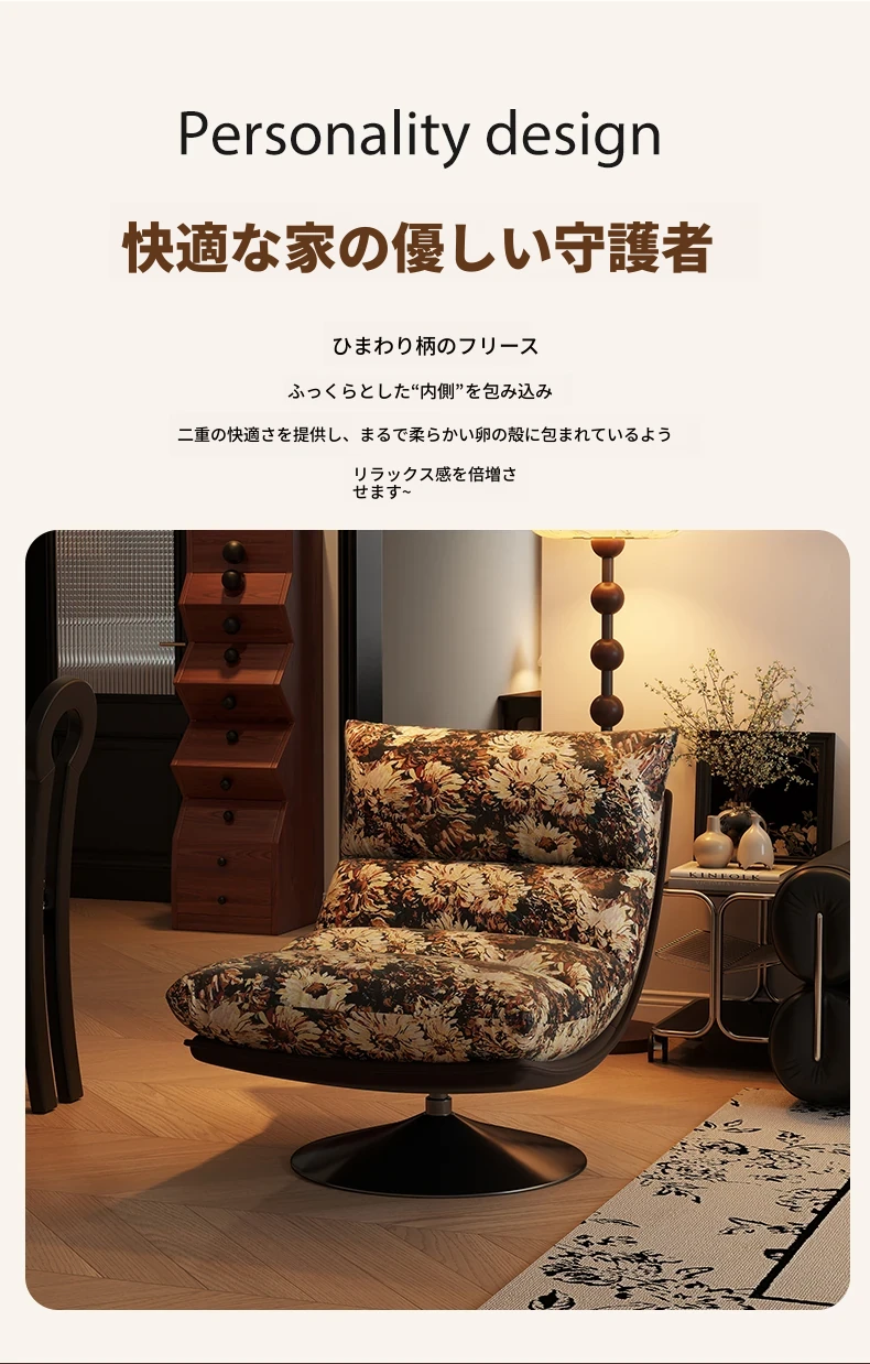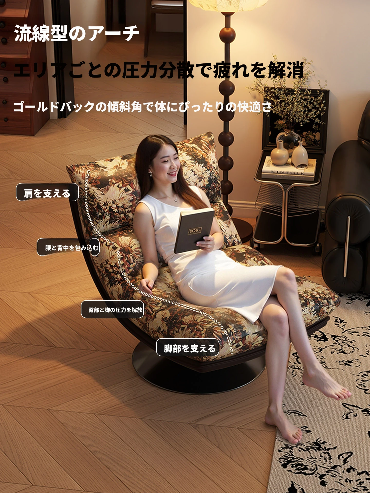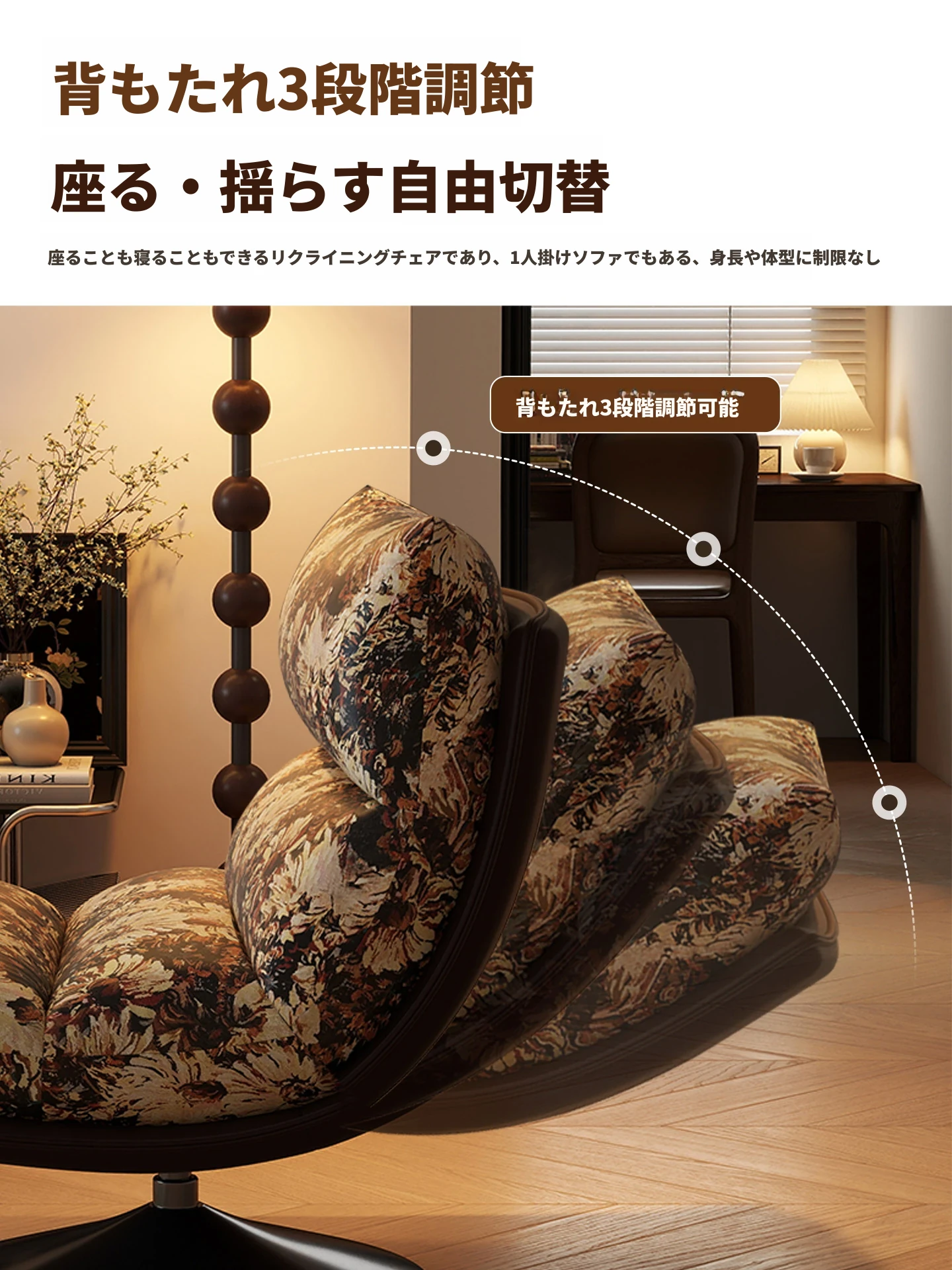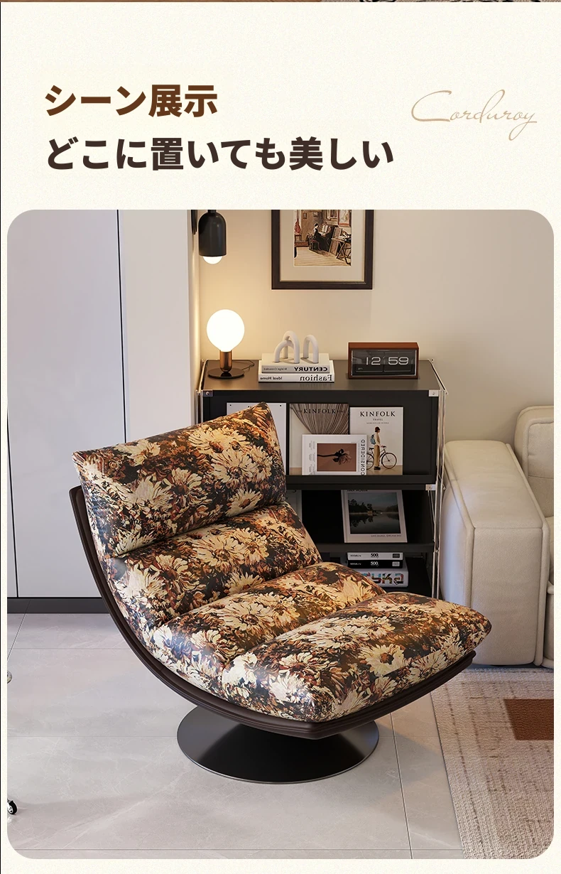 レトロな一人用ソファチェア - 中古風デザイン、回転機能付き!快適なリビングやバルコニーにぴったりのリラックスした背もたれ椅子。おしゃれで機能的、あなたの空間に個性をプラス!