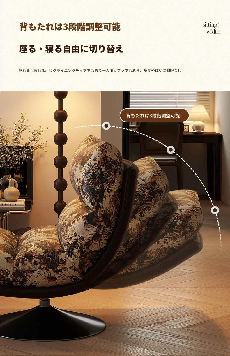 360°回転|散尾葵模様【通気性プリント+背もたれ三段階調節】 円盤脚