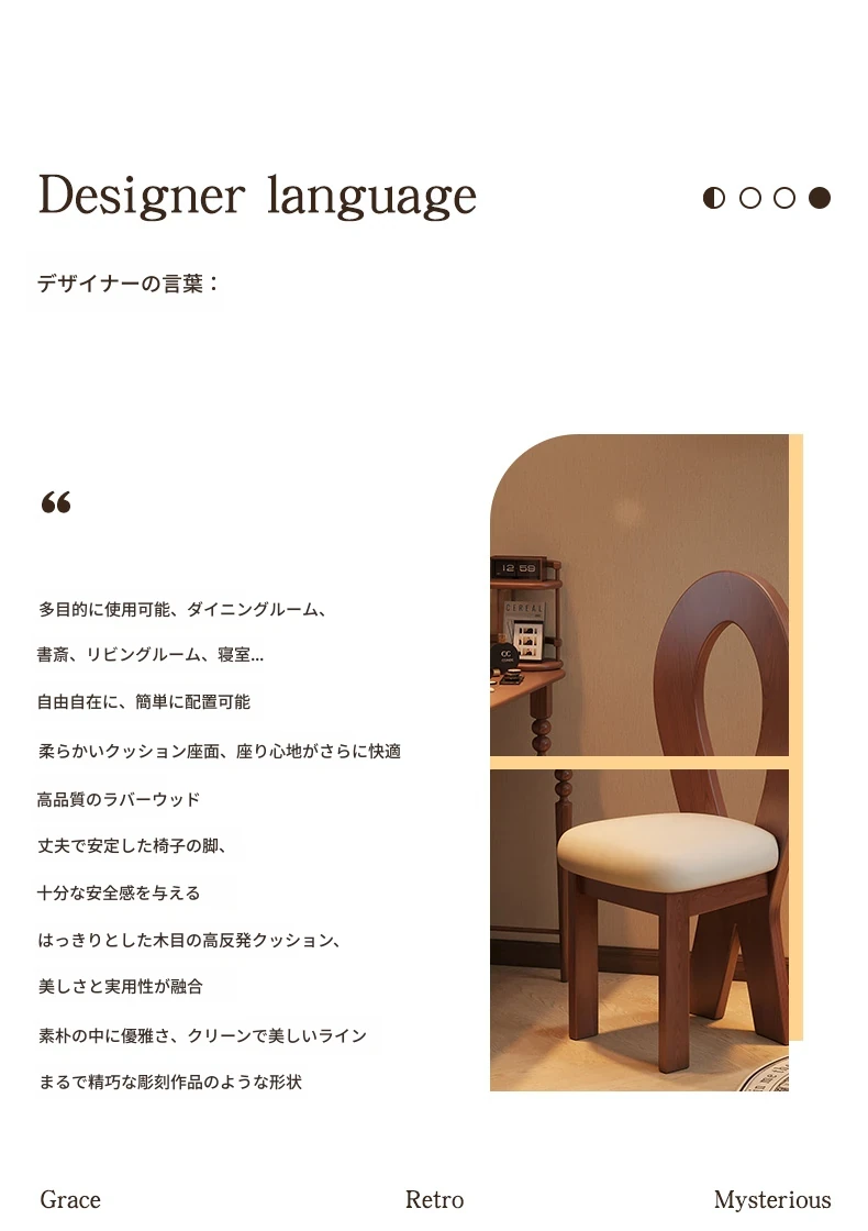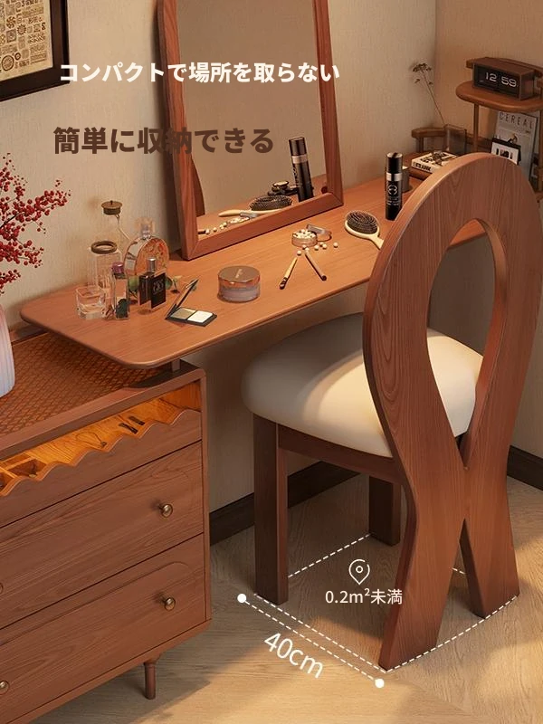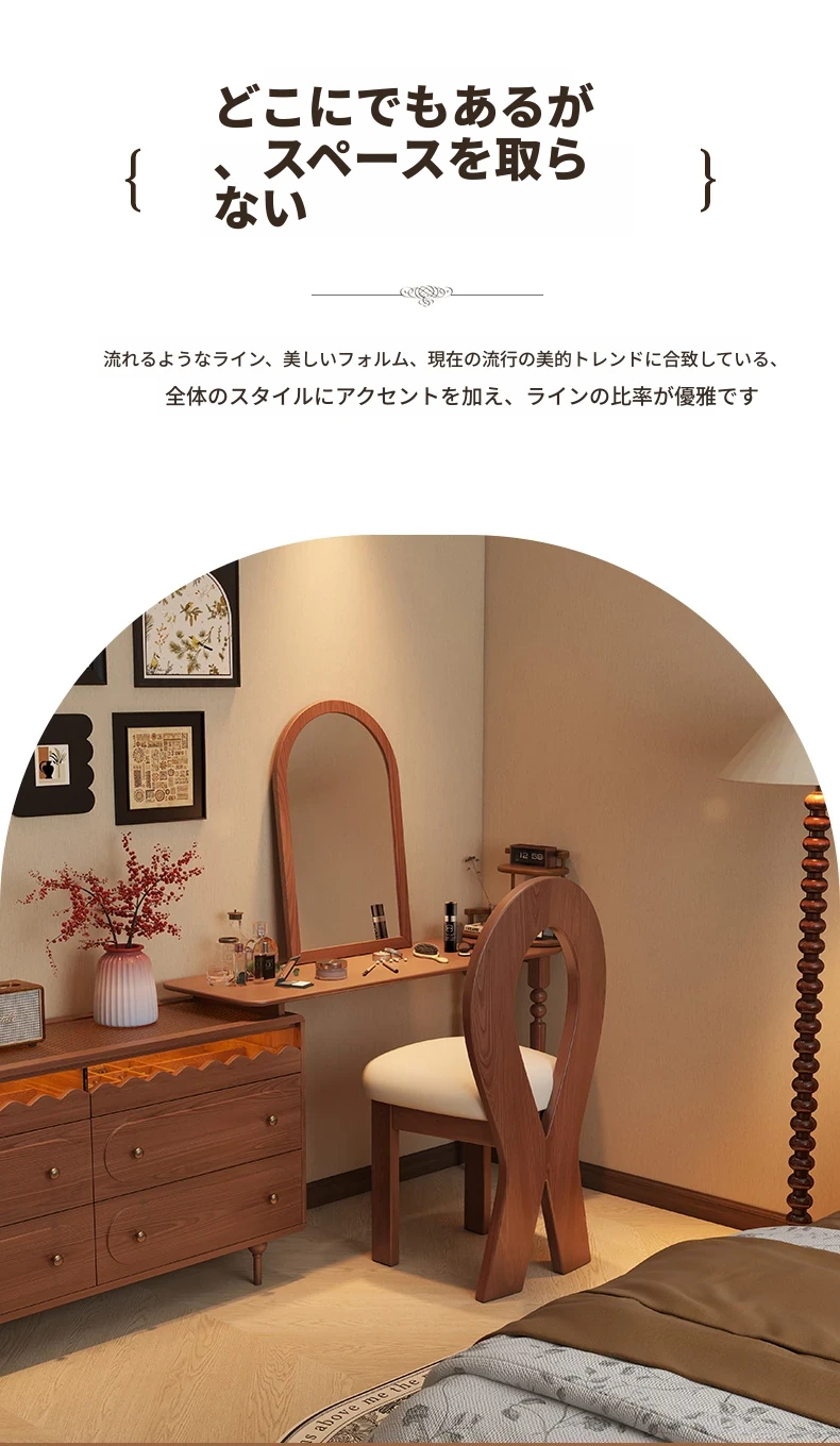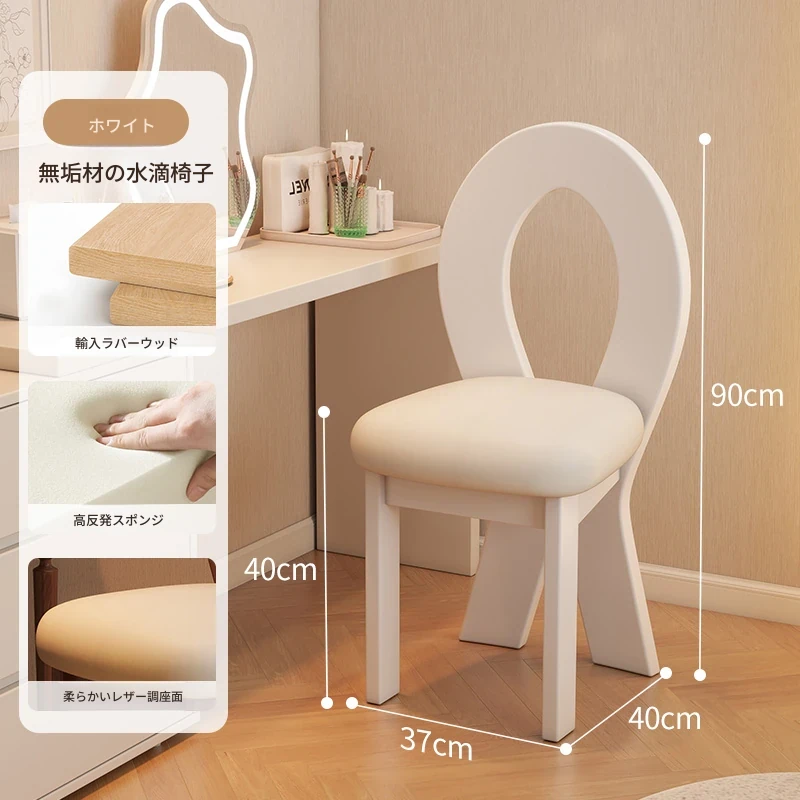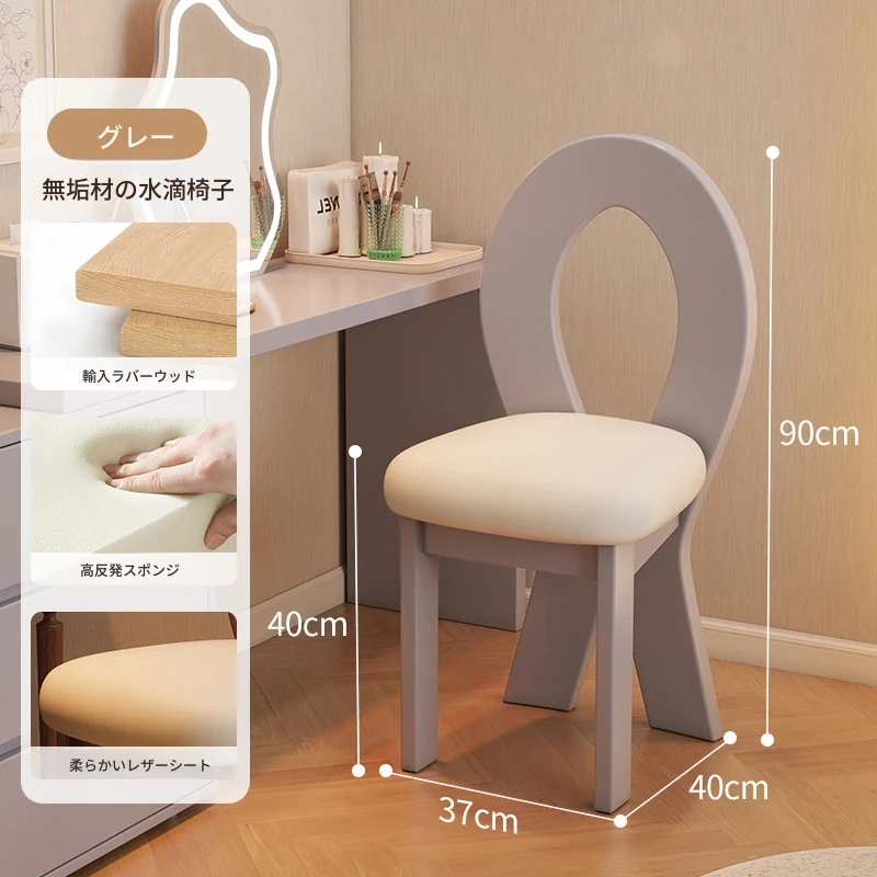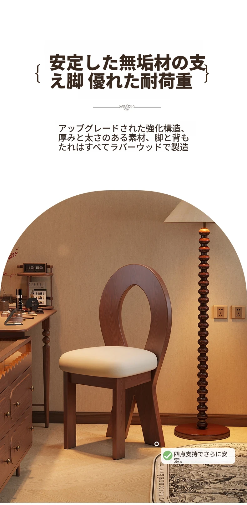 ヴィンテージ風無垢材ドレッシングチェア - 和の侘び寂びを感じる背もたれ付き、寝室にぴったりのラグジュアリーなフレンチスタイルメイクスツール。洗練されたデザインで、あなたの美容タイムを特別に演出します!