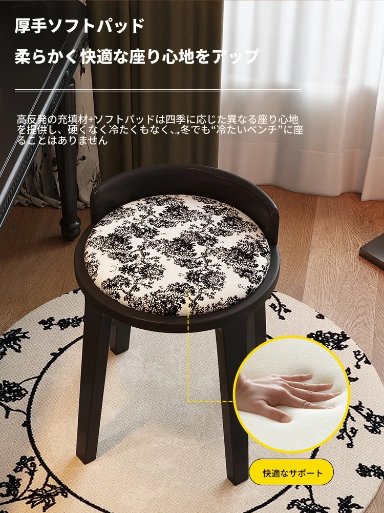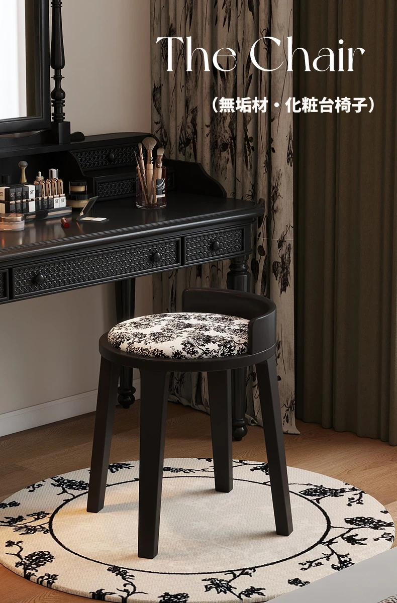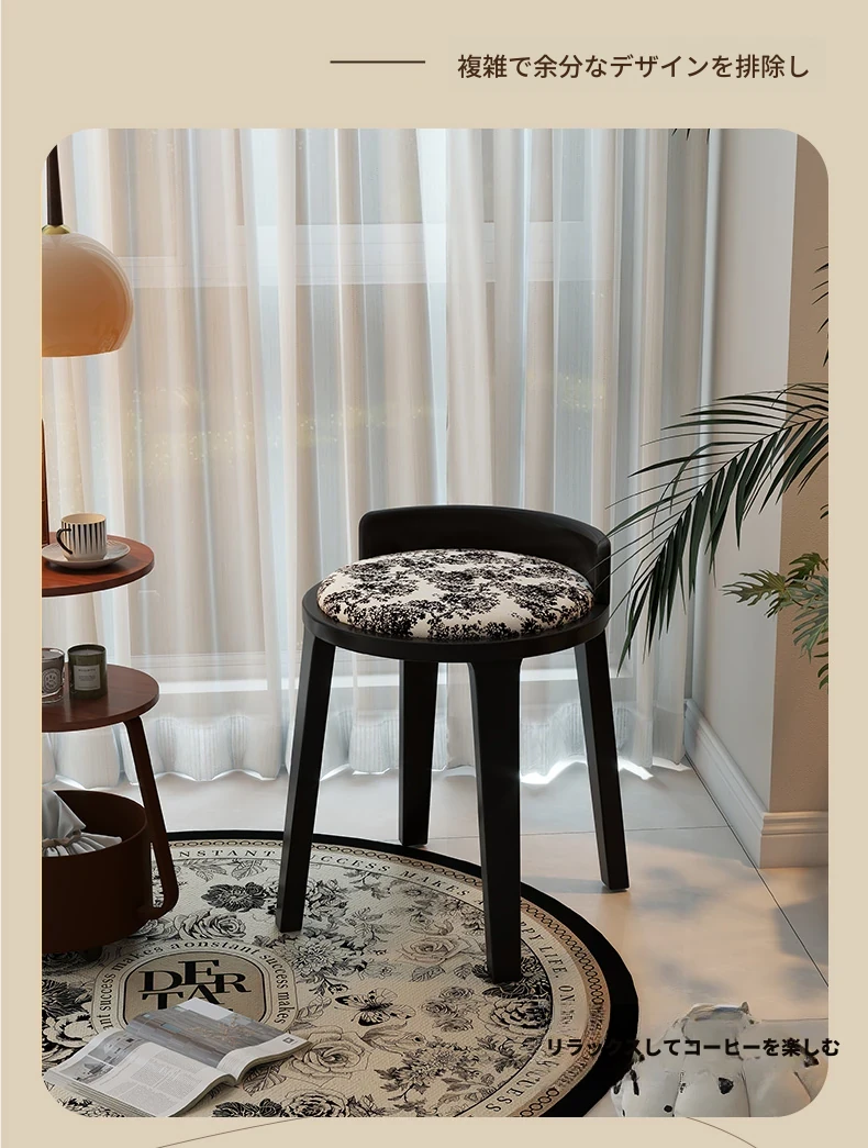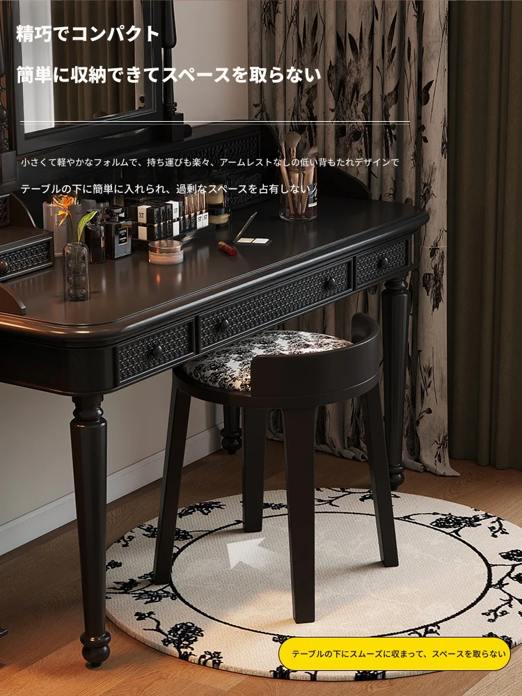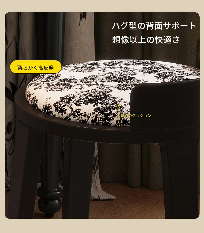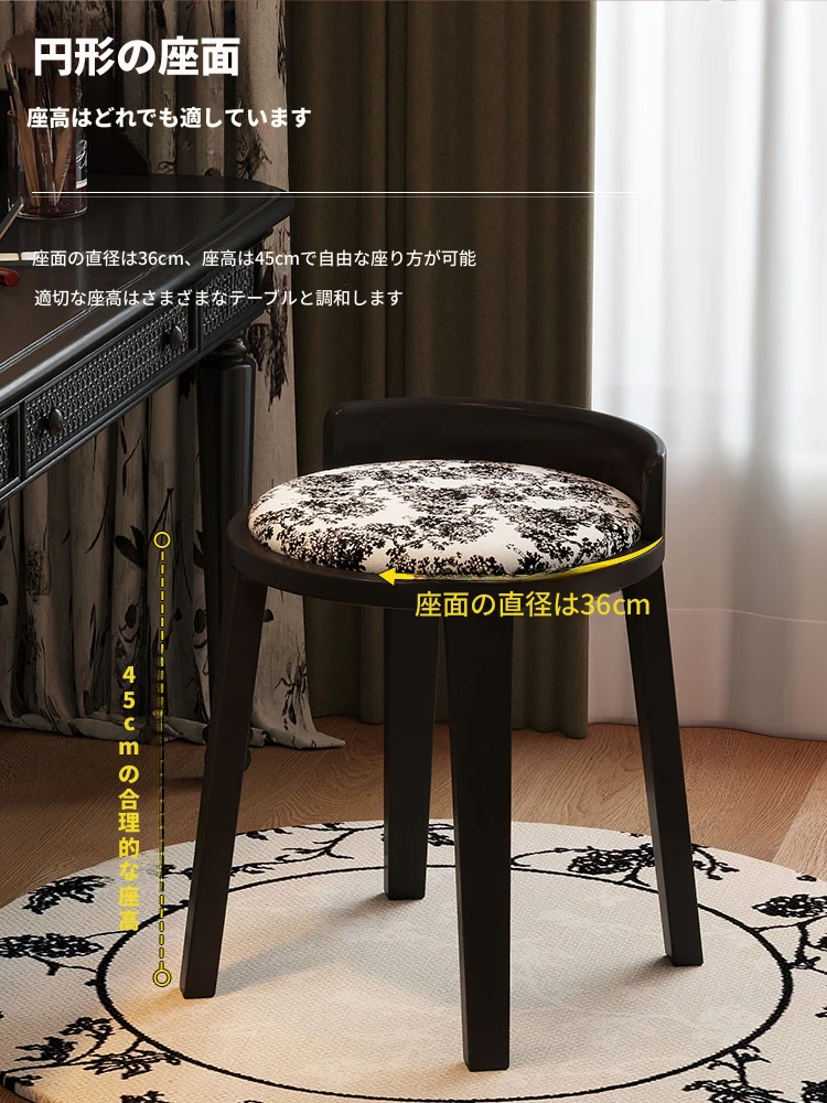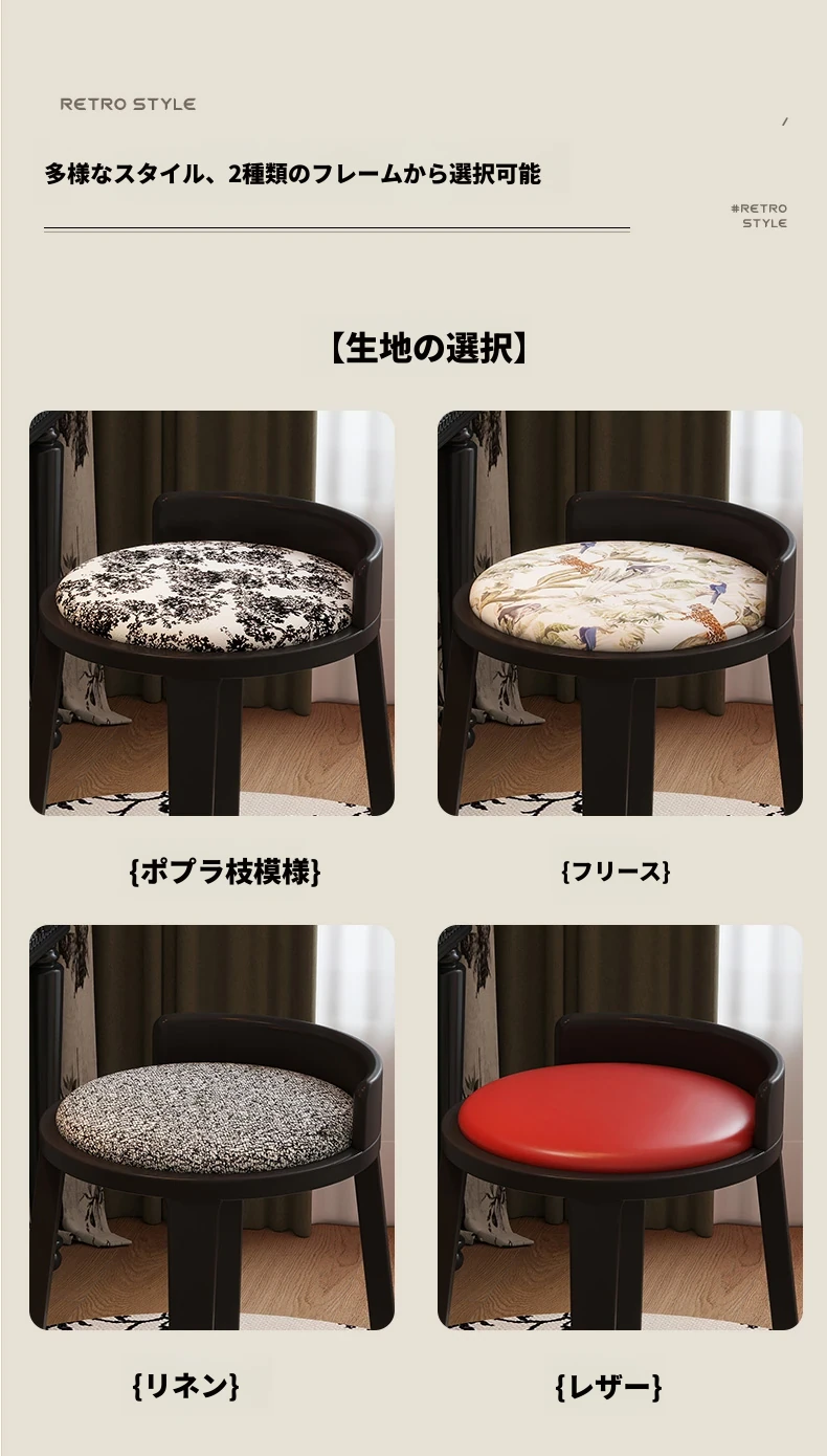 ヴィンテージ風の木製化粧椅子 - 女性の寝室にぴったりのスタイリッシュなドレッシングテーブル用背もたれ椅子。軽やかなラグジュアリー感を演出する、おしゃれなリビングにも合うレトロなデザインの椅子です。