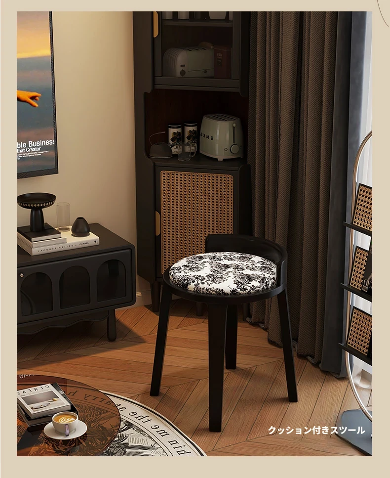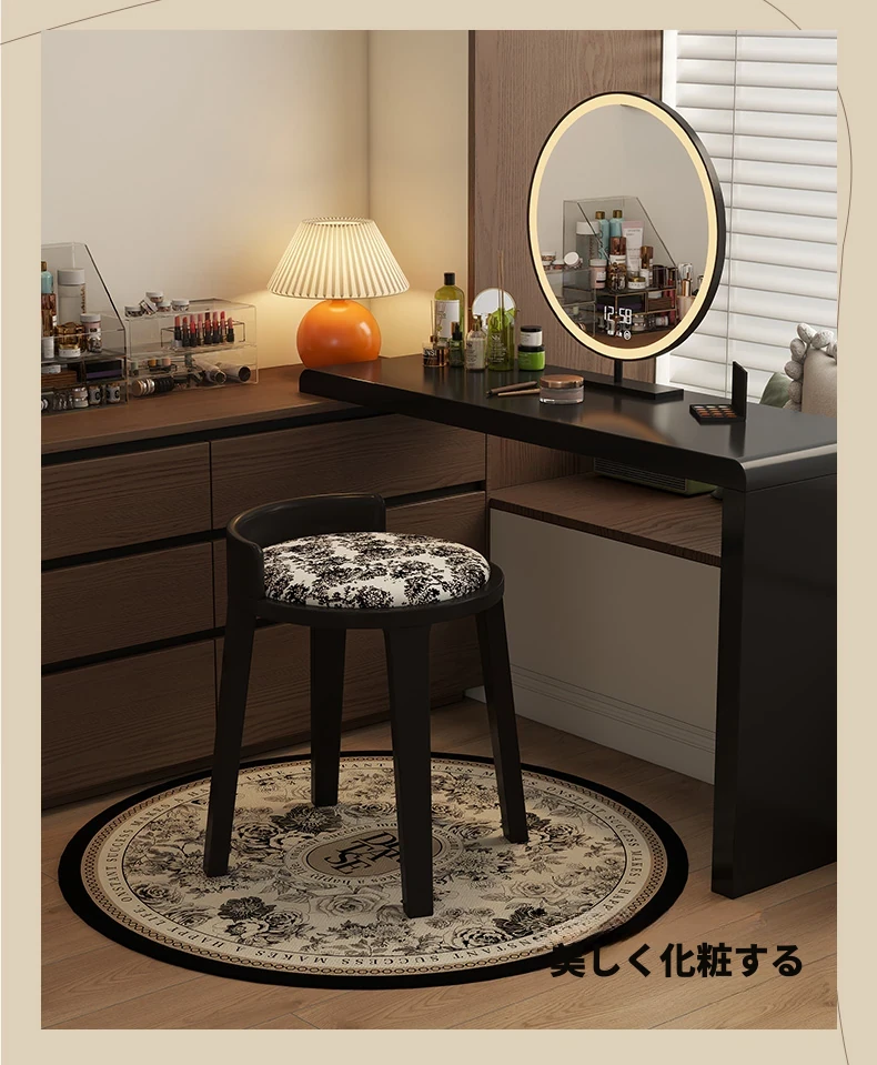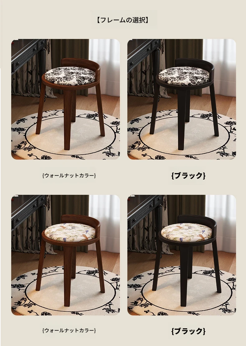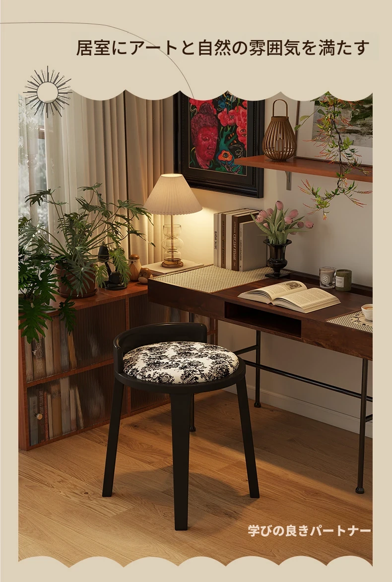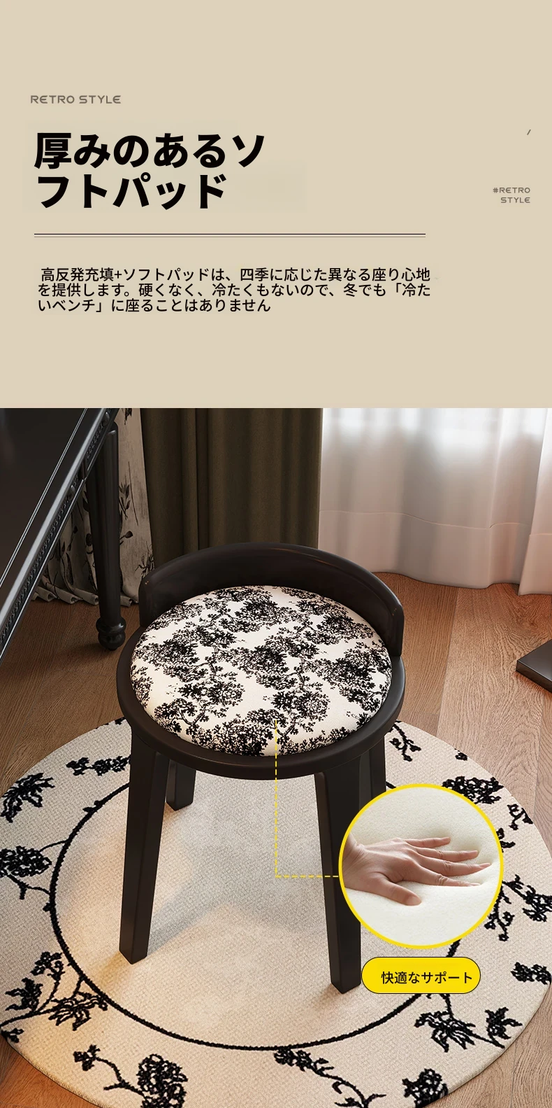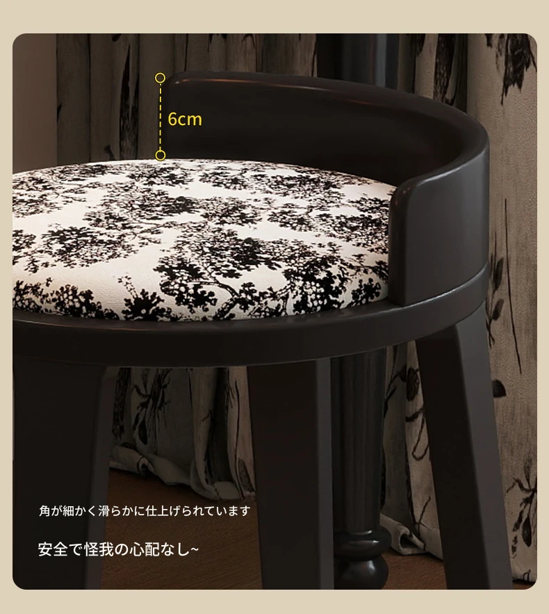 ヴィンテージ風の木製化粧椅子 - 女性の寝室にぴったりのスタイリッシュなドレッシングテーブル用背もたれ椅子。軽やかなラグジュアリー感を演出する、おしゃれなリビングにも合うレトロなデザインの椅子です。
