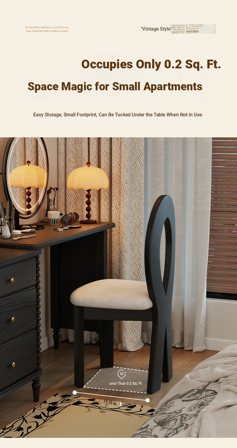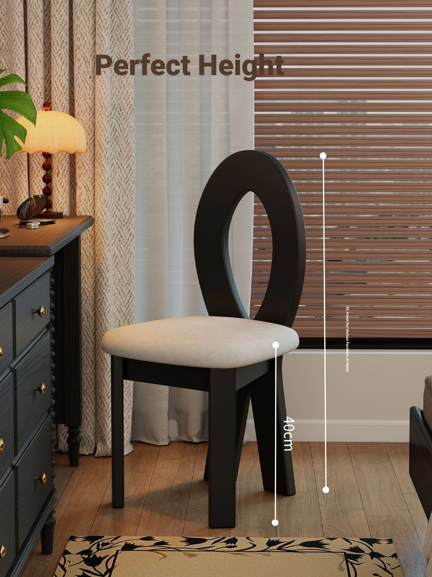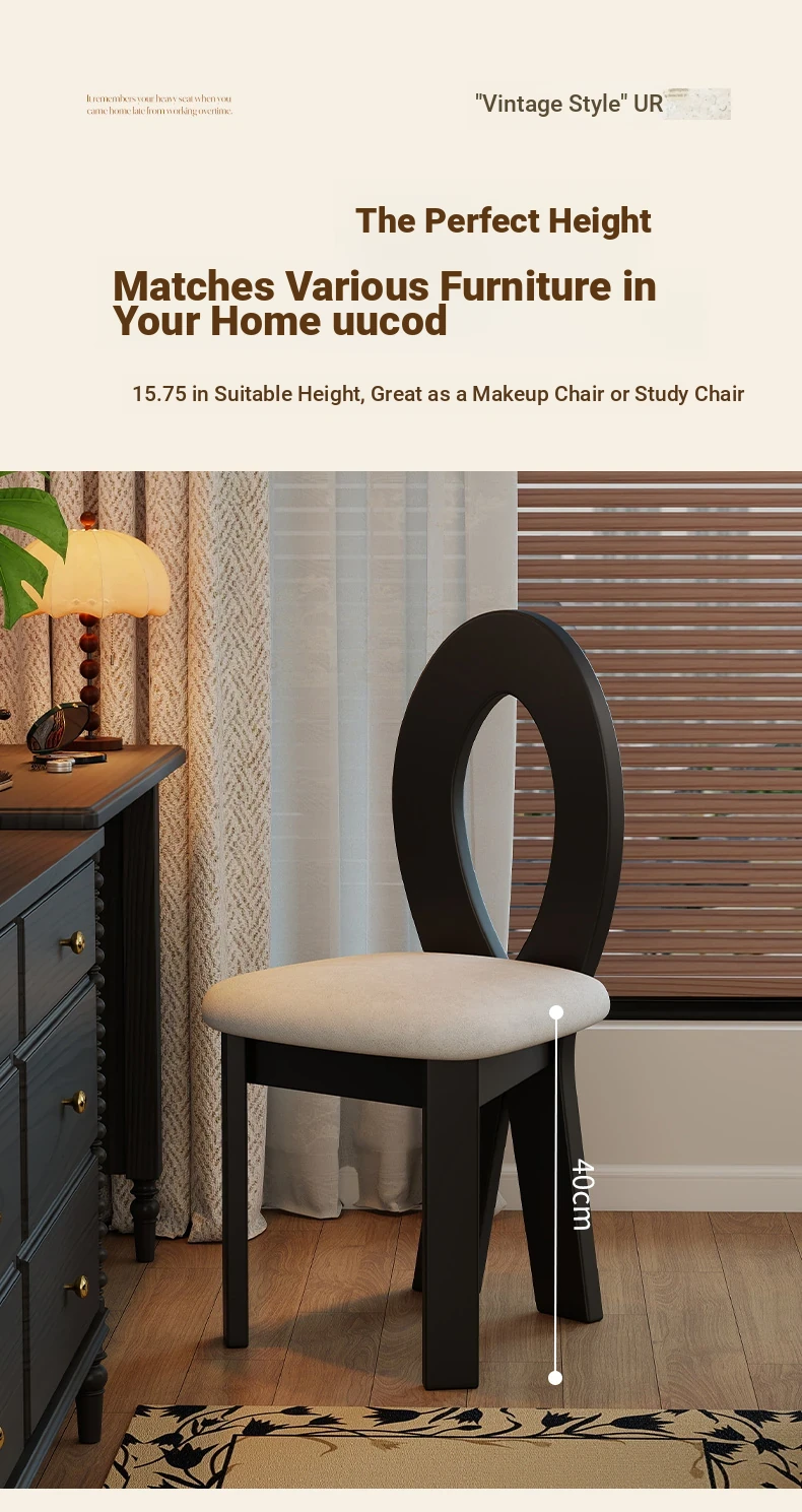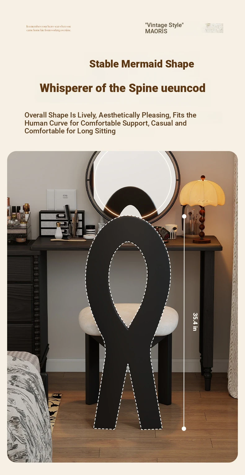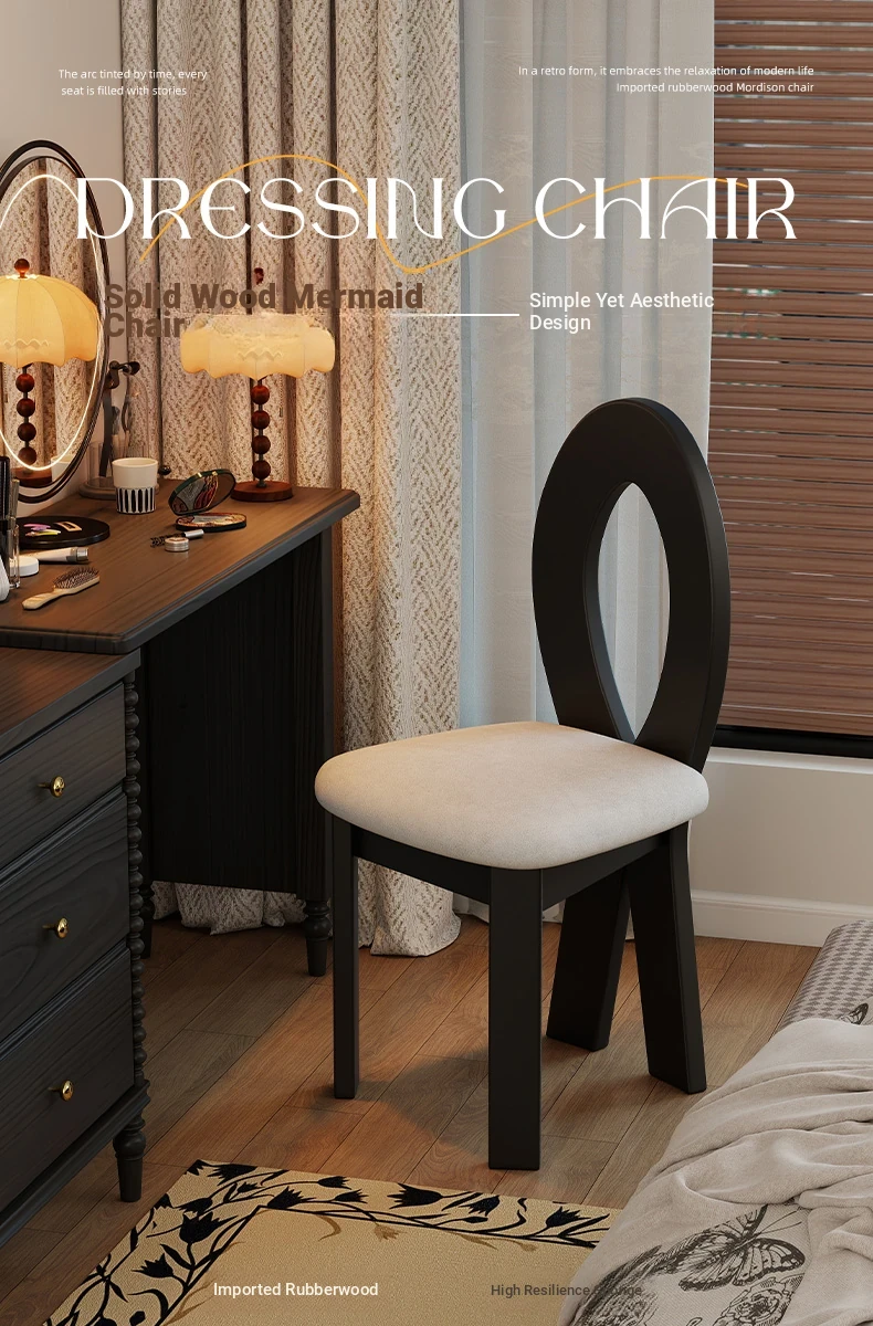 Vintage Solid Wood Makeup Stool - Elegant Bedroom Vanity Chair in French Style, Ideal for Small Spaces - Mermaid-Inspired Design for a Chic Touch
