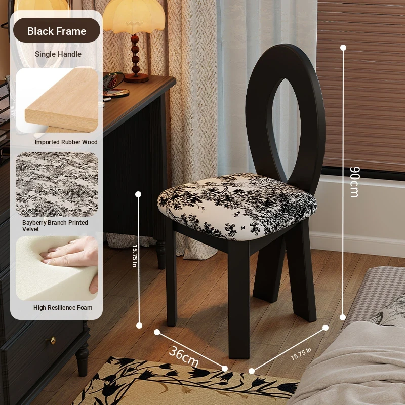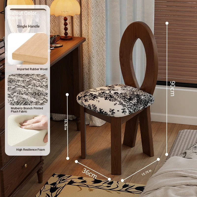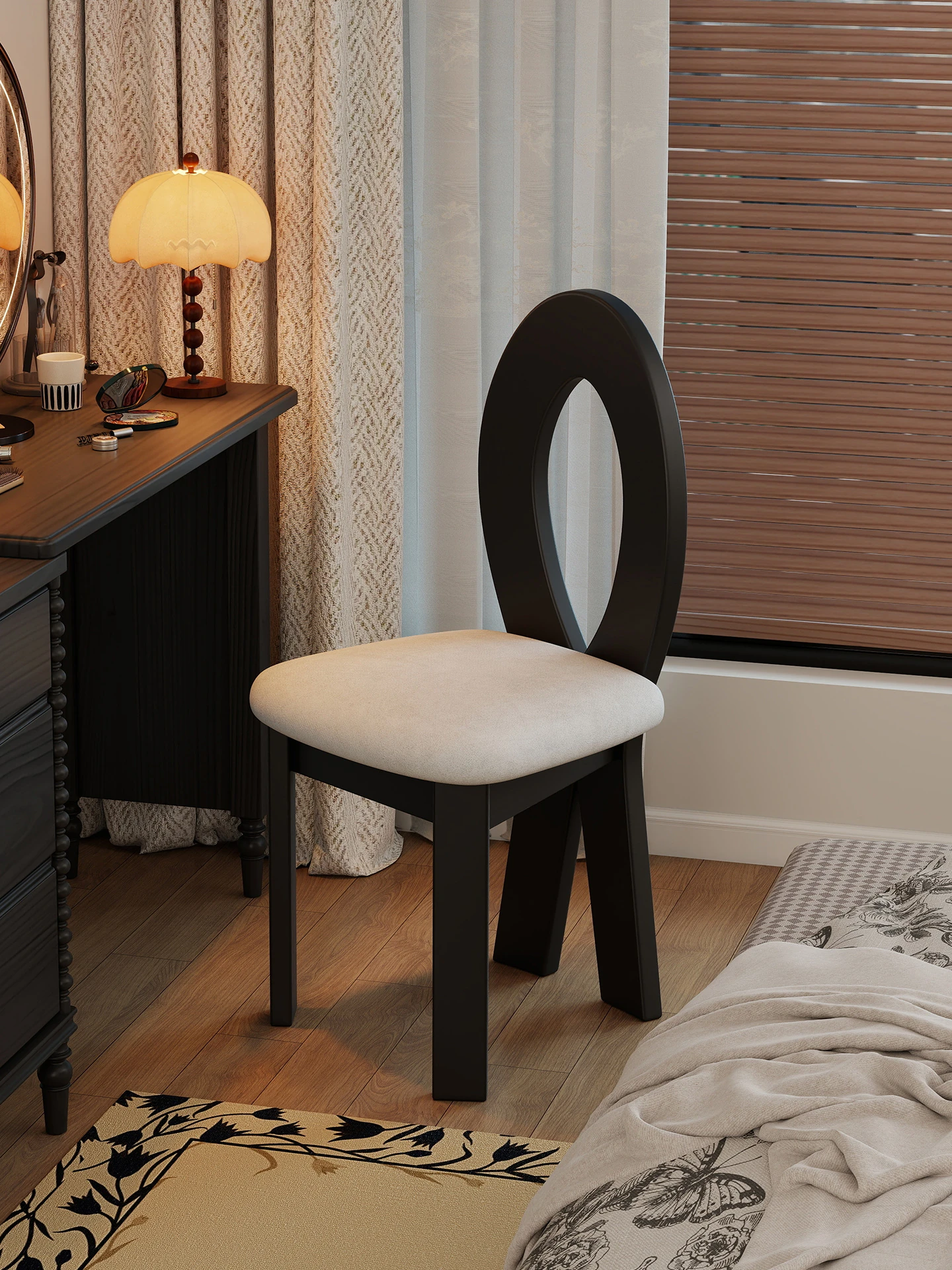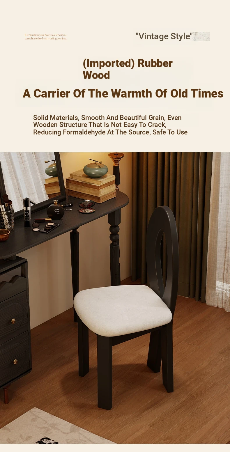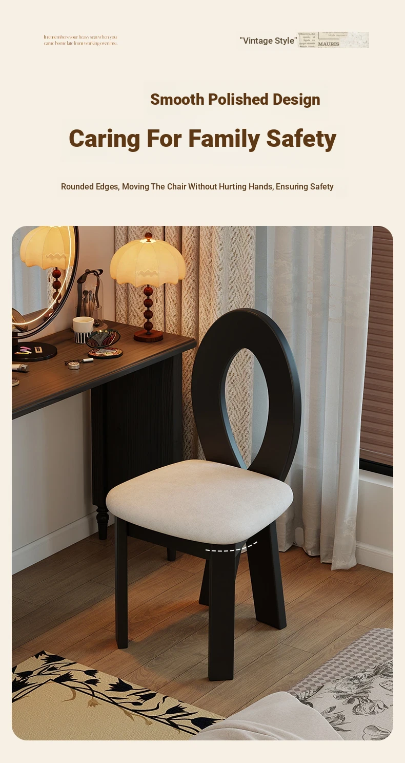 Vintage Solid Wood Makeup Stool - Elegant Bedroom Vanity Chair in French Style, Ideal for Small Spaces - Mermaid-Inspired Design for a Chic Touch